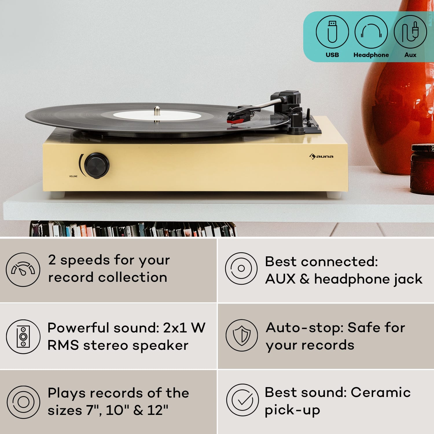 Auna The Player, gramofón, DIY, vrátane reproduktora, 33/45 otáčok za minútu –Kúpiť