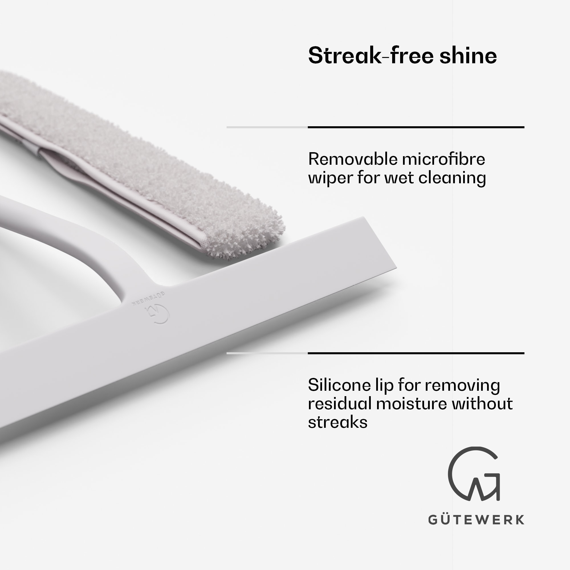 Náhradné diely: 10045358 (23 cm čistiace kryty)Štýlový pomocník s veľkým dopadom: Stierka na okná Gutewerk Blaze 2 v 1 je ideálnym pomocníkom na čistenie okien, obkladov a všemožných iných hladkých povrchov. Vďaka odnímateľnému čistiacemu krytu z mikrovlákna potrebujete iba jeden nástroj: kryt je ideálny na uvoľňovanie a zachytávanie hrubých nečistôt, zatiaľ čo mäkká silikónová čepeľ zaisťuje lesk bez šmúh. Obzvlášť praktické je, že poťah z mikrovlákna môžete prať v práčke, čo znamená, že má obzvlášť dlhú životnosť. Ale skutočný sťahovák je tiež mimoriadne odolný. Jeho nerezové jadro je pokryté silikónom, vďaka čomu je veľmi stabilné a príjemné na uchopenie. Moderný a premyslený dizajn výborne dotvára obraz. Optimálne čistenie, bezpečná manipulácia a elegantný dizajn: Blaze stierka na sklo od Gütewerkstanovuje nové štandardy.