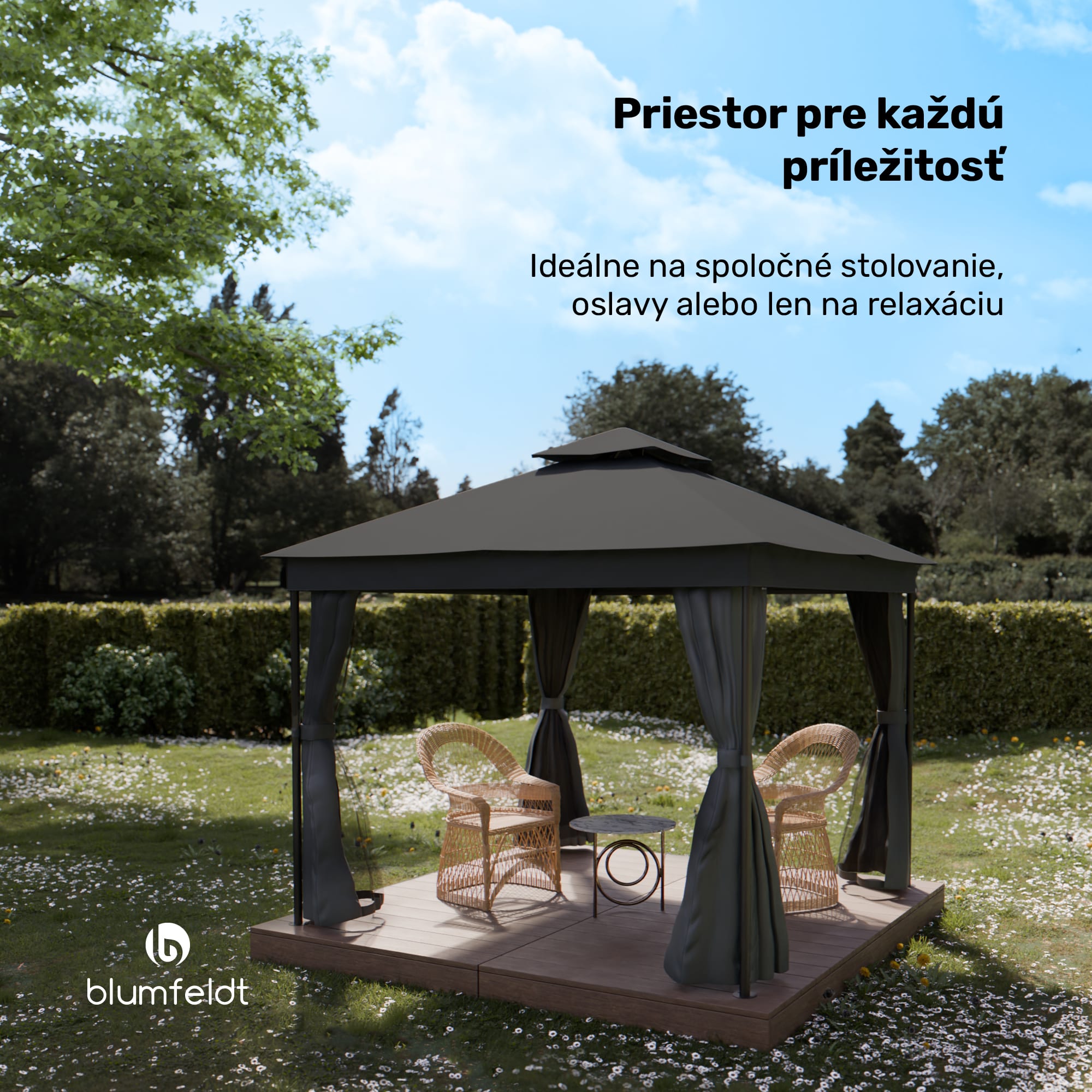 Blumfeldt Altánok Mondo Dual 3×3 s dvojitou strechou a sieťou proti hmyzu –Kúpiť