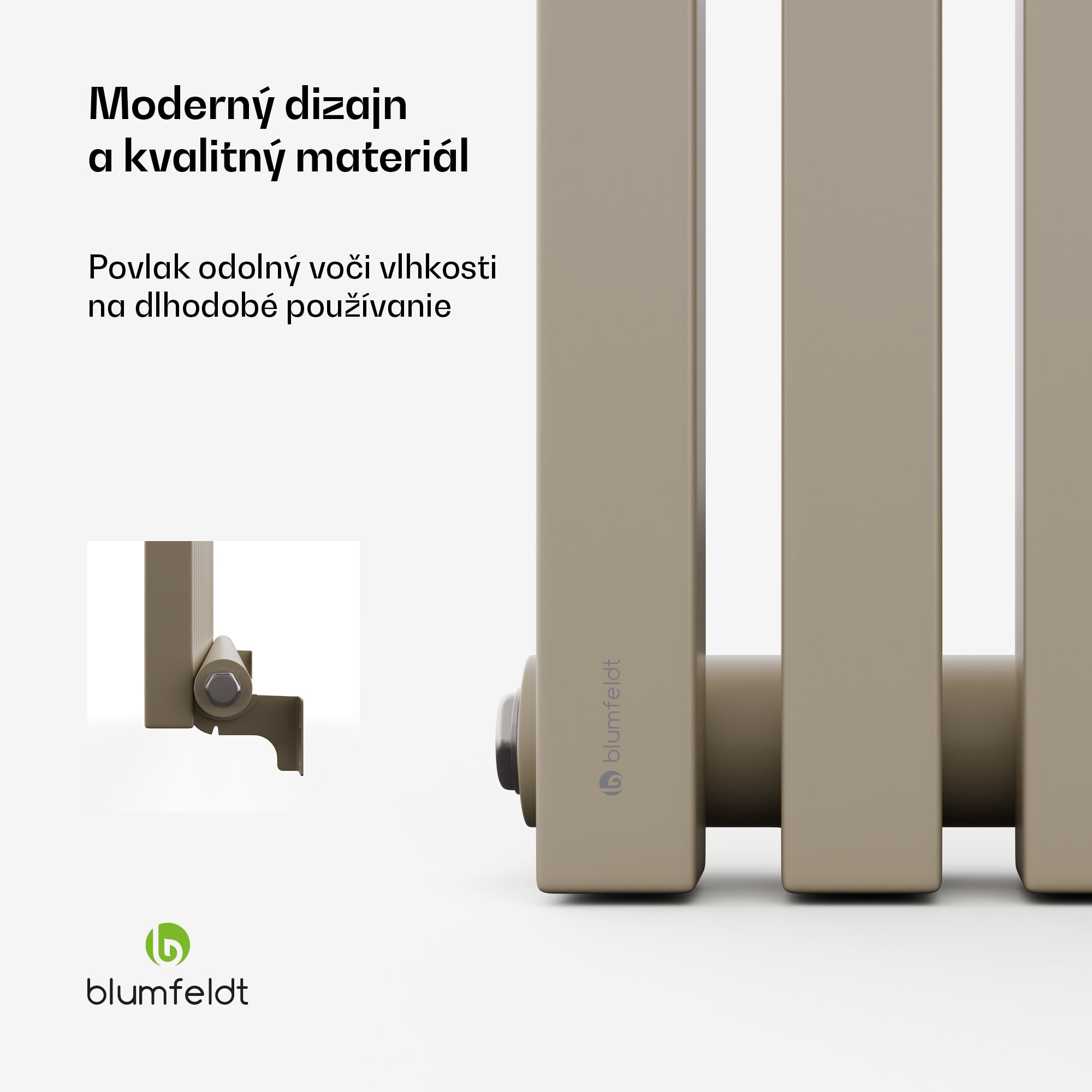 Blumfeldt Delgado radiátor kombinuje moderný dizajn s efektívnou vykurovacou technológiou. S jeho 891 wattmi zabezpečuje príjemné teplo a perfektne sa hodí do kúpeľní, obytných priestorov alebo kancelárií. Vďaka svojim vertikálnym vykurovacím trubkám ponúka Blumfeldt Delgado trubkový radiátor optimálne rozloženie tepla, ktoré rýchlo a rovnomerne vyhreje každú miestnosť. Stredové pripojenie umožňuje jednoduchú integráciu do systému teplej vody. Vyrobený z kvalitnej ocele s tepelnou odolnou práškovou farbou presviedča svojou dlhovekosťou a ľahko udržiavateľnými povrchmi. Vďaka štíhlemu, priestorovo úspornému dizajnu je radiátor ideálny pre rôzne koncepcie priestorov. Nezáleží na tom, či v obývačke, kancelárii alebo kúpeľni – Delgado spája funkčnosť s nadčasovým štýlom. Objednajte si teraz Blumfeldt Delgado radiátor a čoskoro zažite efektívne teplo v modernom dizajne!