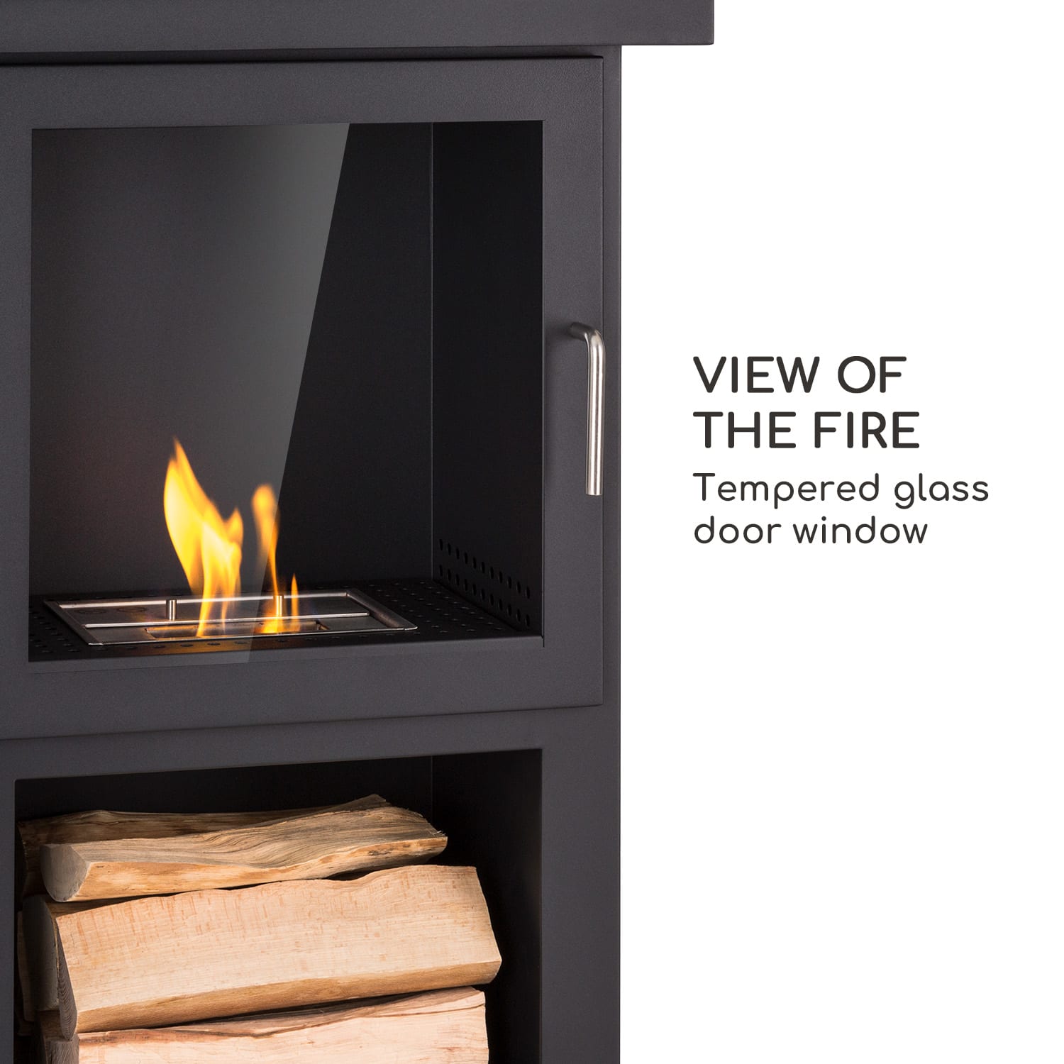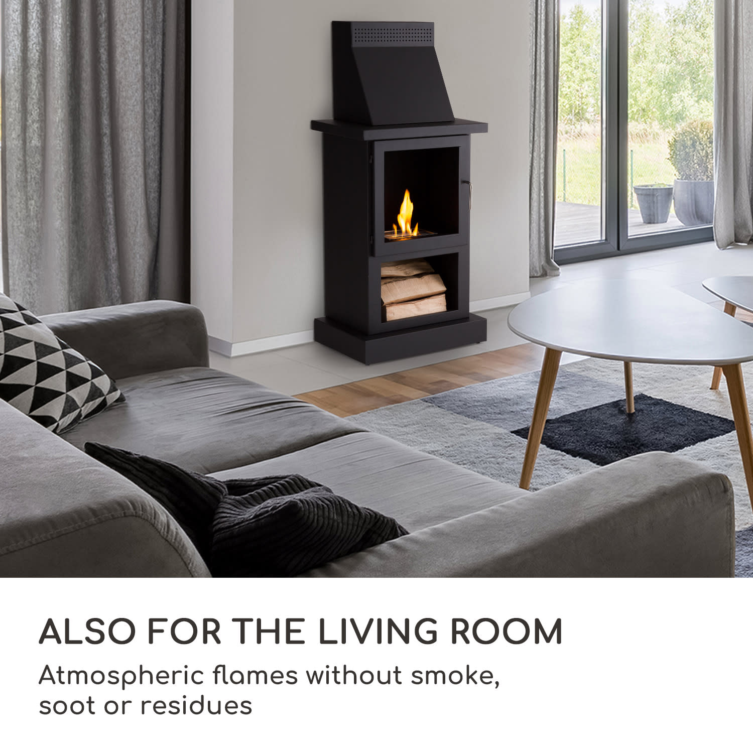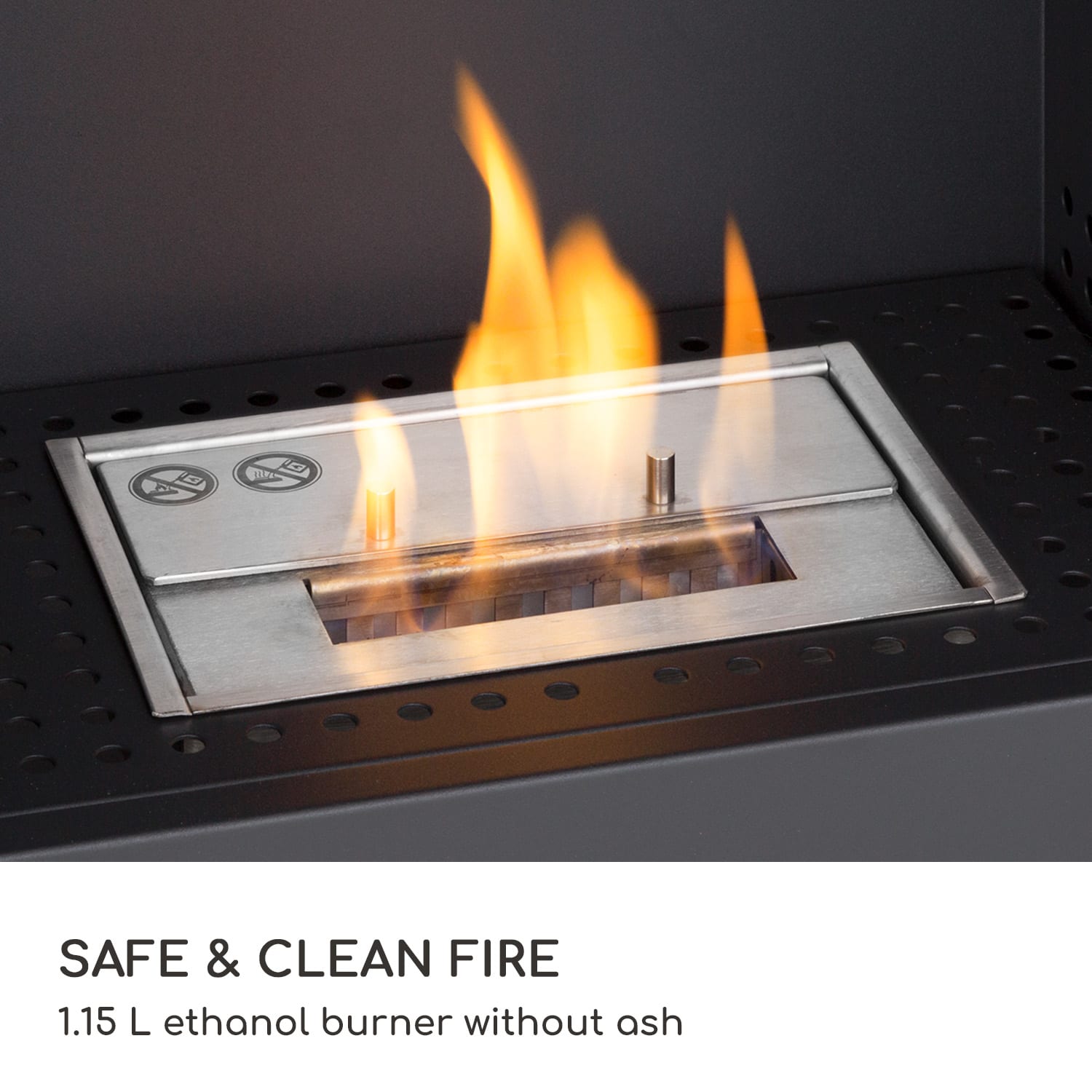 Oheň a plamene – bez zápachu, popola a sadzí: etanolový krb Fiamme Camino od blumfeldt vyčarí vo vašej obývačke útulnú atmosféru bez šírenia nepríjemných pachov. Moderný krb je poháňaný výlučne bioetanolom a cez sklenené dvierka môžete sledovať ohromnú hru plameňov. Žiarivo svieti až 4 hodiny, pretože horák z nehrdzavejúcej ocele má objem 1,15 litra. Na bezpečné uhasenie plameňa je súčasťou aj praktická hasiaca pomôcka. Dizajn etanolového krbu vychádza z klasického krbu a nádherne ho dopĺňajú dekoratívne polená vložené do spodného priestoru. Vďaka robustnej konštrukcii s krytom z oceľového plechu môžete Fiamme Camino nainštalovať aj na balkón, terasu alebo do záhrady. Priložený kryt proti dažďu ho chráni pred vetrom a ostatnými poveternostnými vplyvmi, keď sa nepoužíva. Hodiny relaxu doma pred krbom: S ozdobným etanolovým krbom Fiamme Camino od blumfeldt mihotavé plamene vytvoria atmosféru čistej pohody!