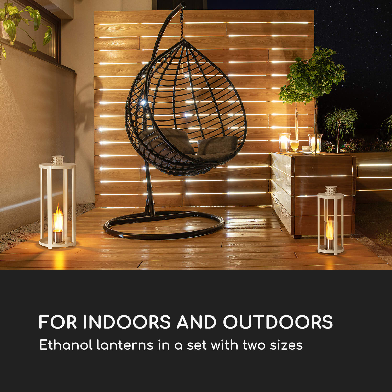 Súprava etanolových lampášov blumfeldt Fiamme Cilindro obohatí váš interiér alebo exteriér o dve prekrásne zdroje skutočného ohňa. Tieto dve veľkosti navzájom úžasne harmonizujú ako tím, no v domácnosti si nájdu svoje miestečko aj zvlášť. Horia pomocou bioetanolu, ktorý sa získava z obnoviteľných zdrojov a spaľuje sa bez zvyškov a zápachu. Plameň horí v strede rámu a je chránený pred vetrom valcom z tvrdeného skla. Horák z nehrdzavejúcej ocele má kapacitu 0,3 litra kvapaliny a postará sa o niekoľko hodín trvajúcu hru plameňov. Na bezpečné uhasenie ohňa sa lampáše Fiamme Cilindro dodávajú s praktickým hasiacim nástrojom.