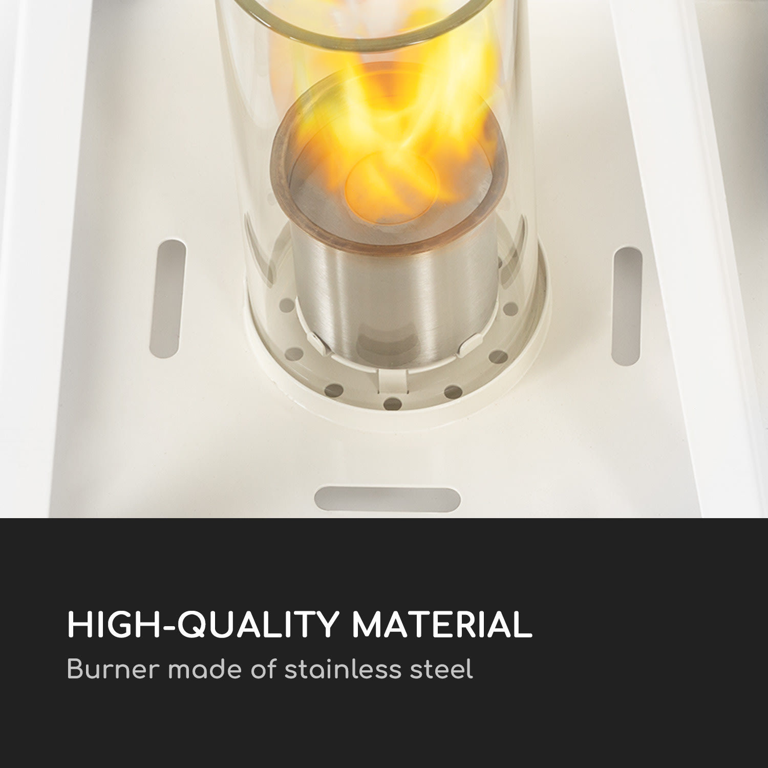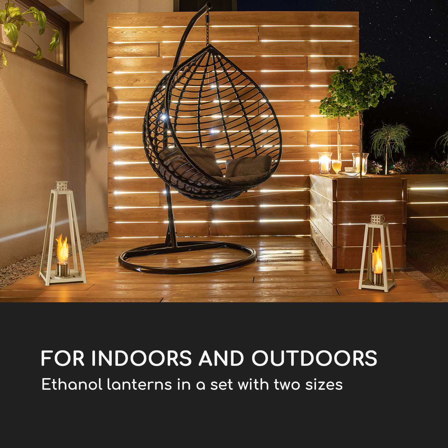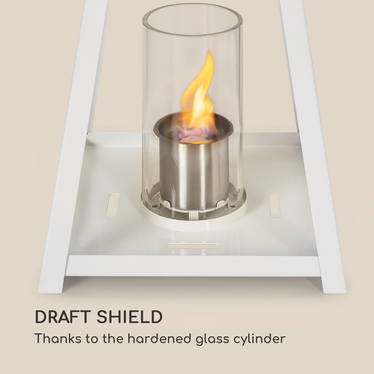Súprava etanolových lampášov blumfeldt Fiamme Triangolo obohatí váš interiér alebo exteriér o dve prekrásne zdroje skutočného ohňa. Tieto dve veľkosti navzájom úžasne harmonizujú ako tím, no v domácnosti si nájdu svoje miestečko aj zvlášť. Horia pomocou bioetanolu, ktorý sa získava z obnoviteľných zdrojov a spaľuje sa bez zvyškov a zápachu. Plameň horí v strede rámu a je chránený pred vetrom valcom z tvrdeného skla. Horák z nehrdzavejúcej ocele má kapacitu 0,3 litra kvapaliny a postará sa o niekoľko hodín trvajúcu hru plameňov. Na bezpečné uhasenie ohňa sa lampáše Fiamme Triangolo dodávajú s praktickým hasiacim nástrojom.