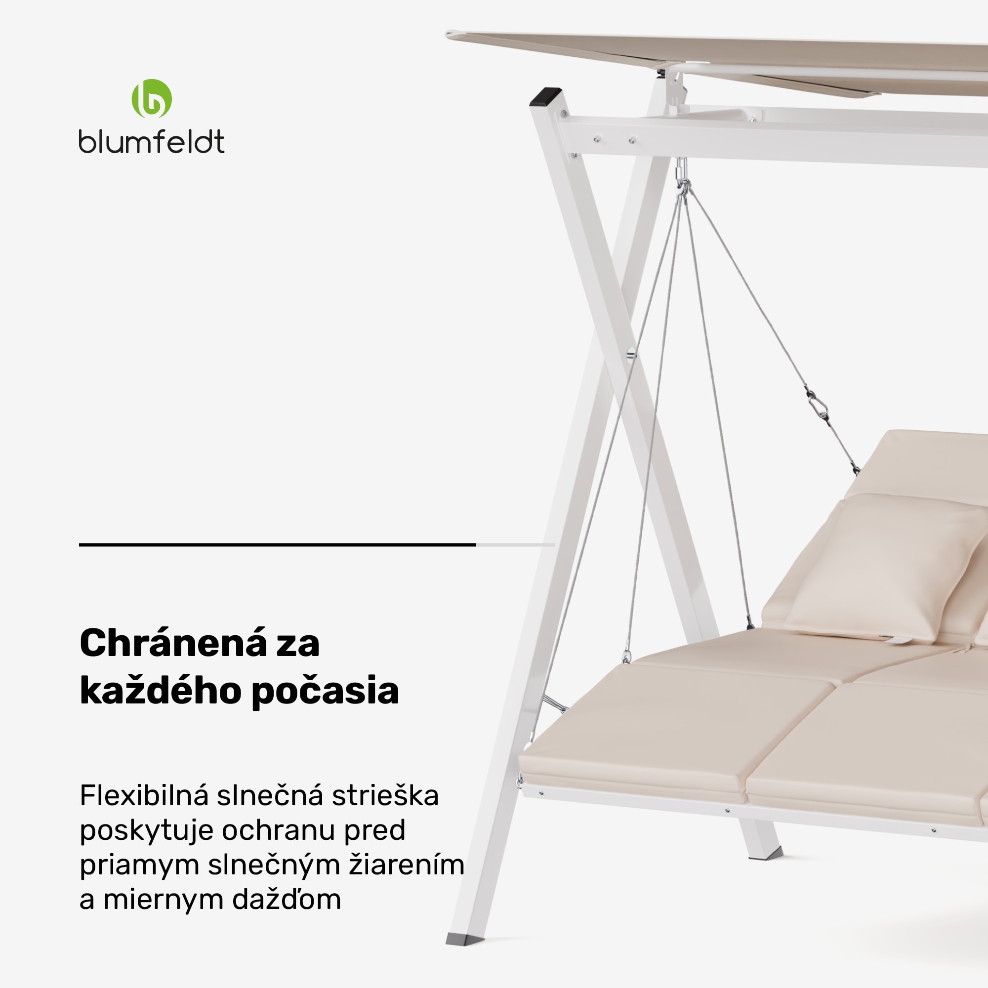 Hollywoodska hojdačka blumfeldt FlexiSwing vás pozýva na hodiny oddychu vonku, ponúka individuálny komfort a kvalitnú konštrukciu. Oceľový rám s práškovou povrchovou úpravou je pevný a stabilný, zatiaľ čo kvalitné vankúše zaisťujú príjemné pohodlie.Hollywoodska hojdačka blumfeldt FlexiSwing ponúka priestor pre štyri osoby – voliteľne je k dispozícii aj ako 2- alebo 3-miestna. Je vybavená vankúšmi s hrúbkou 6 cm, ktoré zaisťujú maximálne pohodlie a vydržia zaťaženie až 320 kg.Nastaviteľné operadlo s dvoma polohami si môžete prispôsobiť pre ešte väčšie pohodlie. Optimálnu ochranu pred slnkom poskytuje aj nastaviteľná slnečná strieška. Táto hollywoodska hojdačka je ideálna na príjemné chvíle osamote alebo vo dvojici, ako aj na spoločenské stretnutia s rodinou a priateľmi v záhrade, na terase alebo na balkóne.Celkovo hollywoodska hojdačka blumfeldt FlexiSwing ponúka luxusný a pohodlný vonkajší zážitok pre každého, kto chce relaxovať na čerstvom vzduchu.