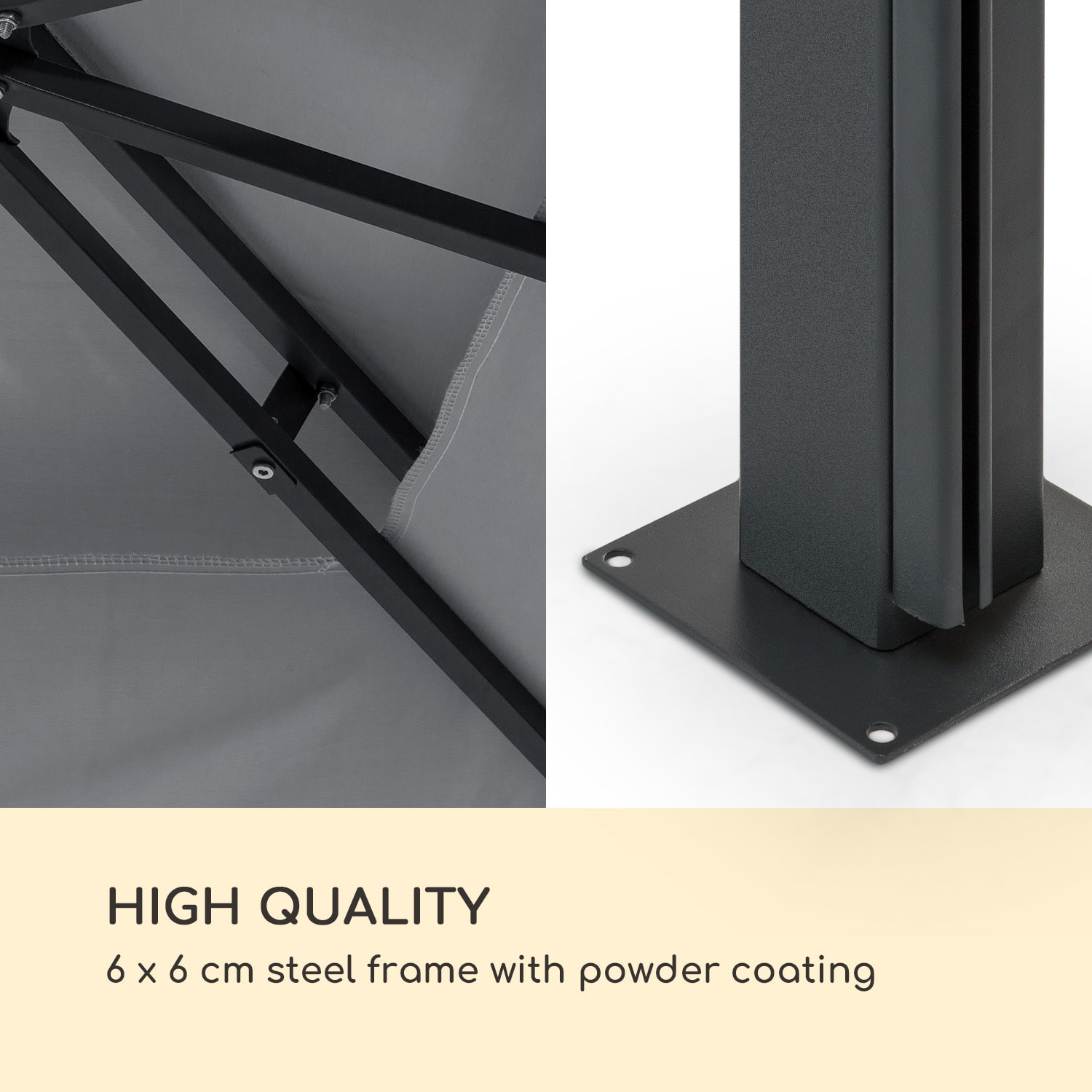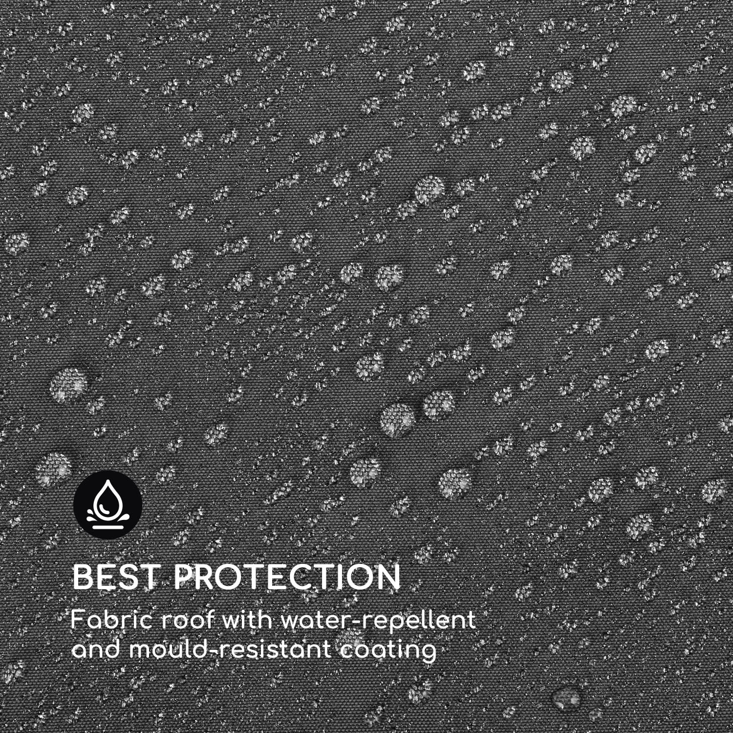 Užívajte si leto pod holým nebom – v každom počasí! Záhradný pavilón Blumfeldt Grandezza Cortina je vzdušné útočisko tieňa, odolné voči poveternostným vplyvom.Strávte príjemné hodiny v záhrade s priateľmi a rodinou: Grandezza Cortina s krytou plochou 3 x 4 metre ponúka dostatok priestoru na oddych pod strechou vyrobenou zo 180 g polyesteru s povrchom, odolným voči vode a plesniam. 6 x 6 cm rám z ocele tiež zaručuje maximálnu stabilitu a vďaka práškovo lakovanej povrchovej úprave je chránený pred koróziou.Štyri flexibilné bočné panely sú užitočné predovšetkým pri šikmom slnečnom svetle, vetre alebo daždi, pričom každý z bočných dielov je možné jednotlivo otvárať a zatvárať pomocou rolovacieho mechanizmu. Sú vyrobené z umývateľného 160 g polyesteru. Pri montáži konštrukcie sa odporúča zaistiť, aby boli stojany ukotvené v zemi vo zvislej polohe, aby sa zabezpečil hladký proces navíjania a odvíjania bez záhybov.Poskytuje tieň v horúcich letných dňoch a spoľahlivú ochranu pred vetrom a dažďom: záhradný pavilón Grandezza Cortina od spoločnosti Blumfeldt.