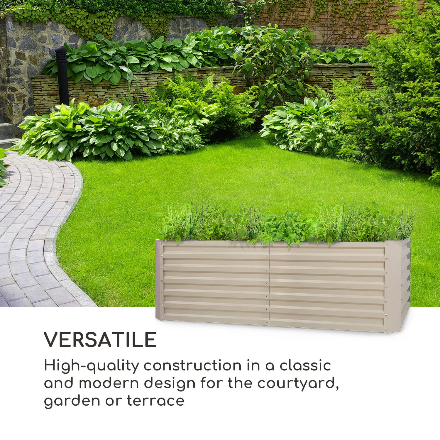 Chutne, čerstvo a z vlastného záhonu: s vyvýšeným záhonom blumfeldt High Grow Straight si svoje denné porcie zeleniny dopestujete sami a terasy, dvory alebo záhradky sa premenia na zelené oázy. Tento okrasný vyvýšený záhon nielenže skrášli váš priestor, ale aj poskytne ideálne podmienky pre pestovanie.Pretože šťavnaté paradajky, sladké jahody, chrumkavé cukety a aromatické bylinky sa dajú jednoducho vypestovať vďaka optimálnym podmienkam rastu. Pevná rámová konštrukcia vyvýšeného záhona je vyrobená z pozinkovanej ocele s ochranou proti hrdzi a tým je chránený pred poveternostnými vplyvmi. Vďaka tomu odoláva High Grow Straight vetru a počasiu po celý rok. 4 hliníkové ochranné lišty okrem toho zabezpečujú maximálnu stabilitu celej konštrukcie.Pestré potešenie a zdravé pochúťky: s blumfeldt High Grow Straight budú dosiahnuté optimálne podmienky rastu. Umožňuje to pomerne vyššie výnosy ako ploché záhony. Záhradníci sa potešia z pohodlia pri státí a z ochrany svojho chrbta. Pracovná výška 60 cm sa okrem toho ukazuje ako prekážka pre škodcov, akými sú slimáky. Pri objeme 1200 litrov je možné umiestniť do vyvýšeného záhonu viaceré humusové vrstvy, takže ho hneď možno využiť aj ako kompostér: stačí len vložiť medzi vrstvy zeme zelený odpad – to priláka nielen pôdu prekyprujúce dážďovky, ale tiež sa tým trvalo poskytujú záhonu čerstvé živiny.Čas všetko urýchliť: S vyvýšeným záhonom blumfeldt High Grow Straight môže každý objaviť svoj záhradnícky talent.
