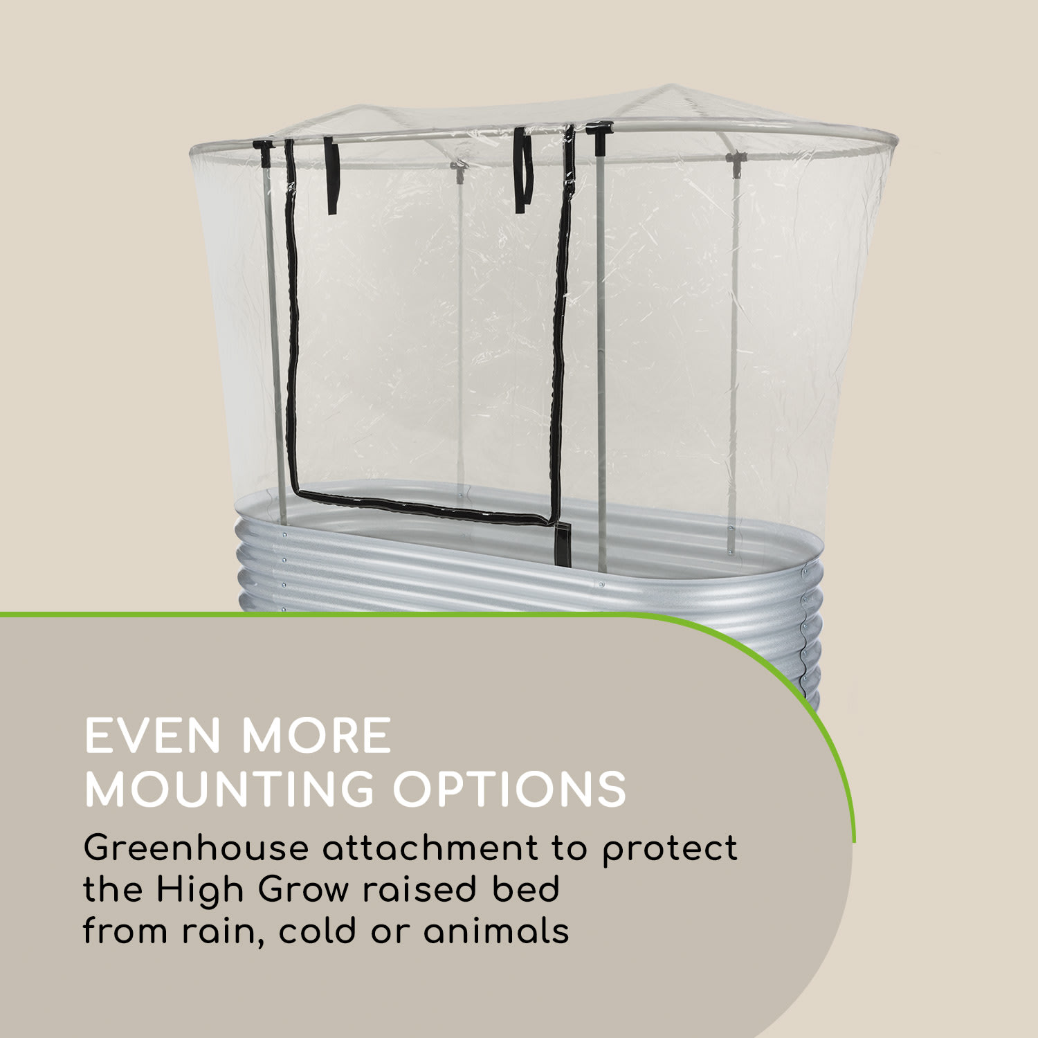 Zo záhonu sa stane skleník: So strieškou na vyvýšený záhon Blumfeldt High Grow Top 160 celkom jednoducho premeníte svoj vyvýšený záhon High Grow na plne funkčný skleník – priestor pre vlastnoručne vypestované ovocie, zeleninu, bylinky a kvety, ktoré sú citlivé na počasie. Konštrukcia vyvýšeného záhonu Blumfeldt High Grow Top 160 je vyrobená z 19 mm hrubej oceľovej rúrky a poskytuje skleníkovému nadstavcu vnútornú stabilitu. O ochranu pred poveternostnými vplyvmi sa stará poťah, vyrobený z priehľadného PVC s hrúbkou 0,3 mm. Nielen že chráni pred dažďom, ale tiež ochraňuje pred náhlou zimou a udržuje mačky od susedov v dostatočnej vzdialenosti od Vašich rastlín. Jednoduchú prácu vo fóliovom stane poskytuje veľká bočná klapka so suchým zipsom. Aby bolo možné rýchlo a jednoducho rozšírenie zostaviť, sú súčasťou dodávky všetky potrebné skrutky. Ako jednoducho sa strieška inštaluje, tak ľahko môže byť znovu odstránená – buď odskrutkovaním, alebo jednoducho odobratím krycej fólie. Perfektné podmienky na skoré pestovanie rastlín, ako sú uhorky a paradajky, alebo ich neskoršiu ochranu pred premenlivým počasím. Vďaka skleníkovému nadstavcu Blumfeldt High Grow Top 160 budú Vaše rastliny, ktoré sú citlivé na mokro a chlad, v bezpečí a za Vašu starostlivosť sa Vám odmenia bohatým rastom. Čas všetko urýchliť: So strieškou na vyvýšený záhon Blumfeldt High Grow Top 160 sa Vám toho v domácej záhrade urodí omnoho viac. Toto príslušenstvo je ideálne pre každého záhradkára. Dostupné veľkosti: 160 cm dlhá, 200 cm dlhá (produkt: 10032321) Upozorňujeme, že tento skleníkový nadstavec sedí len na vyvýšené záhony High Grow s číslami produktov 10031113 a 10031114 BEZ dodatočných predĺžení.