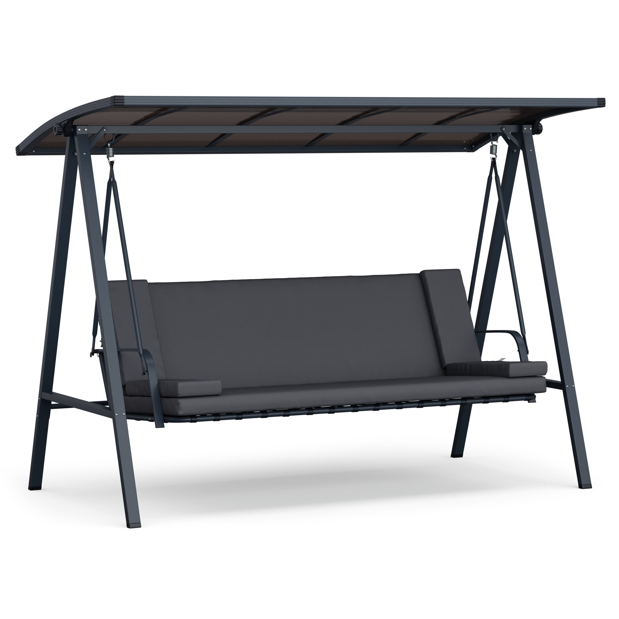 Hollywoodska hojdačka blumfeldt LuxeLounge je dokonalým doplnkom vášho vonkajšieho priestoru a pozýva vás stráviť hodiny oddychu vonku. Táto hollywoodska hojdačka v sebe spája pohodlie, štýl a funkčnosť a ponúka vám a vašim hosťom príjemné a útulné posedenie. Vďaka veľkorysým rozmerom ponúka 3-miestna hollywoodska hojdačka blumfeldt LuxeLounge dostatok priestoru na spoločné chvíle oddychu.Nastaviteľná poloha sedadla a striešky umožňujú individuálne prispôsobiť si komfort sedenia a poskytujú optimálnu ochranu pred slnkom alebo ľahkým dažďom. Užívajte si teplé slnečné lúče alebo relaxujte v tieni – Hollywoodska hojdačka blumfeldt LuxeLounge vám ponúka flexibilitu, vďaka ktorej si môžete prispôsobiť posedenie podľa svojich predstáv.Robustný oceľový rám s práškovým nástrekom zaisťuje extrémnu stabilitu a odolnosť, zatiaľ čo 8 cm hrubé vankúše ponúkajú príjemné a pohodlné sedenie. Vďaka kvalitným materiálom a premyslenému dizajnu je hollywoodska hojdačka blumfeldt LuxeLounge skutočným pútačom pozornosti vo vašej záhrade, na terase alebo balkóne. Táto záhradná hojdačka kovová je ideálnym riešením pre každého, kto hľadá štýlový a funkčný doplnok do svojho vonkajšieho priestoru.