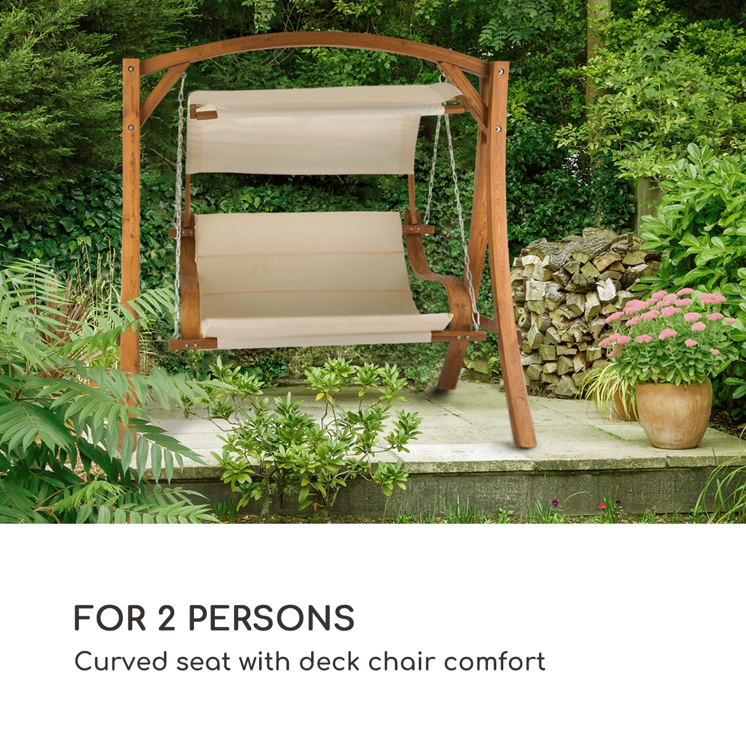 Na drevenej záhradnej hojdačke Blumfeldt Maui možno oddychovať pri hojdání v záhrade a na terase. Jemné hojdanie na plyšovo mäkkom vankúši: Štýlový relax. „Pre hodiny odpočinku v záhrade a na terase.“ Hojdačka Blumfeldt Maui Vám umožní zabudnúť na každodenný život. Na 110 cm širokej, mierne zakrivenej sedačke s 4 cm hrubým polstrovaním sa možno pohodlne hojdať samostatne alebo vo dvojici ako na ležadle. Pevne umiestnená markíza prináša dodatočné zabezpečenie a vytvára príjemný tieň – bez ohľadu na to, kde je hojdačka umiestnená. V otázke stability tiež spĺňa všetky želania. Masívne drevené trámy, reťaze z ušľachtilej ocele a pozinkované skrutky zabezpečia vysokú stabilitu konštrukcie, ktorá môže byť zaťažená až hmotnosťou do 250 kg. Krémová biela markíza a voči proti poveternostným vplyvom odolný lazúrovaný smrekovec prinesú letnú náladu do každého prostredia. „Štýlový komfort a vysoká nosnosť: 110 cm široké sedadlo so 4 cm hrubým polstrovaným sedadlom a markízou proti slnku. Maximálne zaťaženie 250 kg vďaka použitiu smrekovcových nosníkov a reťazí z ušľachtilej ocele.“ S hojdačkou Blumfeldt Maui sa stane záhrada a terasa letným útočiskom pokoja. Táto drevená záhradná hojdačka je ideálna pre každého, kto hľadá kombináciu štýlu a funkčnosti. Dostupné varianty: hojdačka s markízou, hojdačka so strechou proti slnku (produkt 10029200) Vezmite, prosím, na vedomie, že pravé drevo pracuje a je premenlivé počasím: Praskliny alebo zafarbenie dreva sú normálne a podčiarkujú jedinečný charakter produktu. Nemajú vplyv na bezpečnosť hojdačky. Ak chcete zachovať ochranu dreva, mal by byť opakovane nanesený ochranný náter drevených častí podľa potreby a poveternostných vplyvov približne raz za 1 až 2 roky.