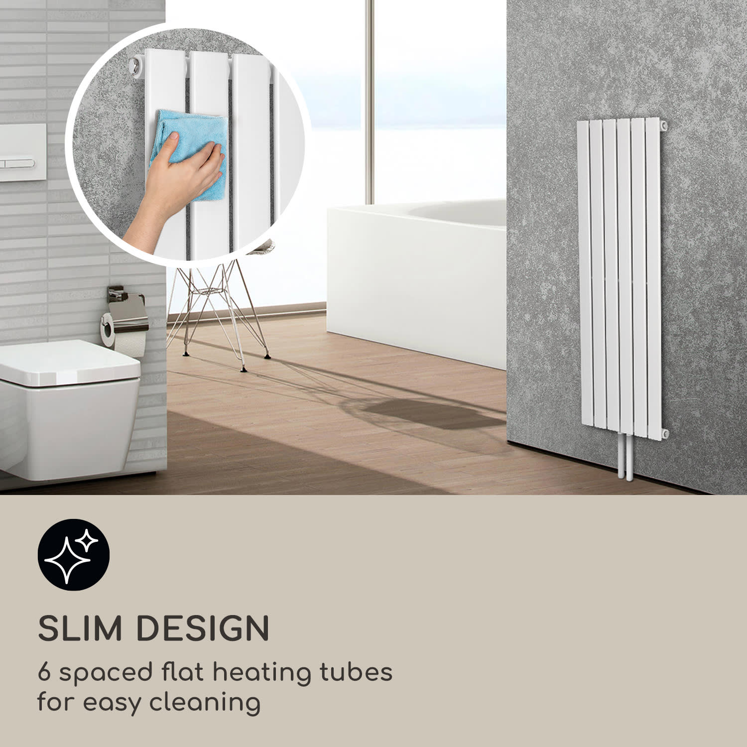 Príjemné teplo pre váš domov v modernom dizajne: radiátor Ontario 120 x 45 od blumfeldt nielenže vyhreje kúpeľňu na príjemnú teplotu, ale ešte aj pekne vyzerá.Rúrkový radiátor Ontario120 x 45 od blumfeldt jednoducho integrujete do existujúceho teplovodného alebo diaľkového vykurovacieho systému a funguje aj s elektrickými vykurovacími telesami alebo elektronickými termostatmi. Poskytuje spoľahlivý a rovnomerný zdroj tepla v malých až stredne veľkých miestnostiach. Pripojenie k bočným rúrkam je veľmi jednoduché. Potrebné nástenné konzoly sú tiež priamo súčasťou balenia. Stabilný systém kovových rúrok vedie a optimálne rozvádza teplo v miestnosti. Zvislé vykurovacie rúrky sa vďaka medzierkam medzi nimi veľmi ľahko čistia. Vďaka špeciálnemu úzkemu dizajnu sa perfektne hodí do všetkých miestností s obmedzeným priestorom. Príjemné teplo hneď po sprchovaní alebo kúpaní s radiátorom Ontario 120 x 45 od blumfeldt – štýlový zážitok.