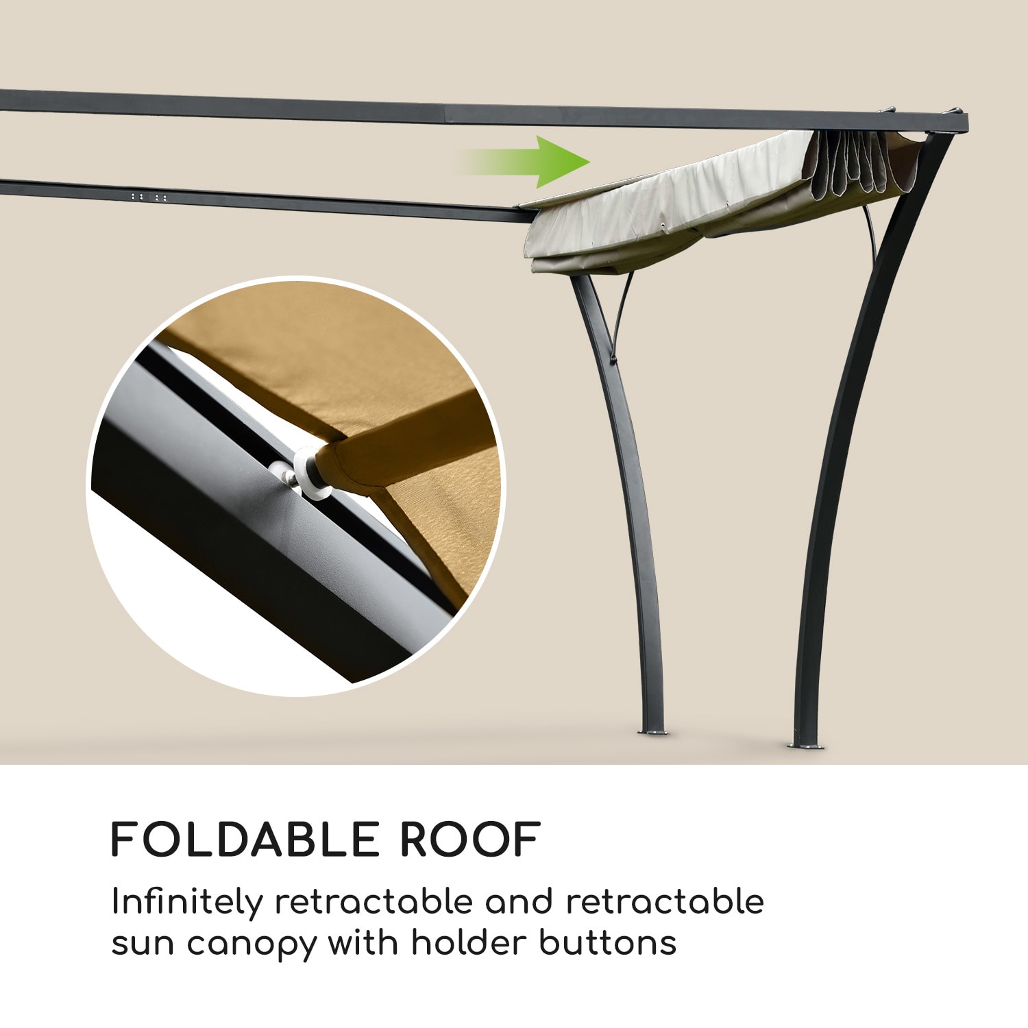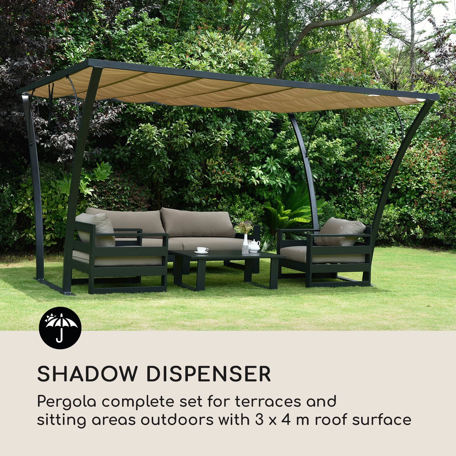 Možno žiadna posteľ v kukuričnom poli, ale rovno palác v záhrade! Blumfeldt Palazzo altánok urobí z terasy alebo záhradného posedenia oddychovú letnú rezidenciu. S pergolou Blumfeldt Palazzo zmeníte Vašu terasu alebo záhradné posedenie na svetlú zónu oddychu. Kompletná sada obsahuje všetko na to, aby bez námahy na ploche s rozmermi 4 x 3 m vytvorila letný chládok. Konštrukcia z hrubých stĺpov s rozmermi 8 x 4 cm s hrúbkou materiálu 1,5 mm nie je len mimoriadne stabilná, ale vďaka hliníku s práškovým lakovaním aj ľahká a odolná voči poveternostným vplyvom. Perfektné pre dlhotrvajúcu radosť z oddychu vonku – úplne bez hrdzavých fľakov na podlahe terasy. So skladacím baldachýnom z polyesteru budete mať plnú kontrolu nad tieňom a slnkom. Slnečná strieška sa kĺže vo svojich koľajničkách dopredu a dozadu a je možné ju prichytiť v zarážkach. Vodeodolná polyuretánová vrstva (PU) chráni pred dažďom a UV žiarením a jednoducho sa utiera. Užívajte si slnko alebo sa uvoľnite v chládku: s terasovou strieškou Blumfeldt Palazzo si v záhrade užívate ničím nerušený oddych.