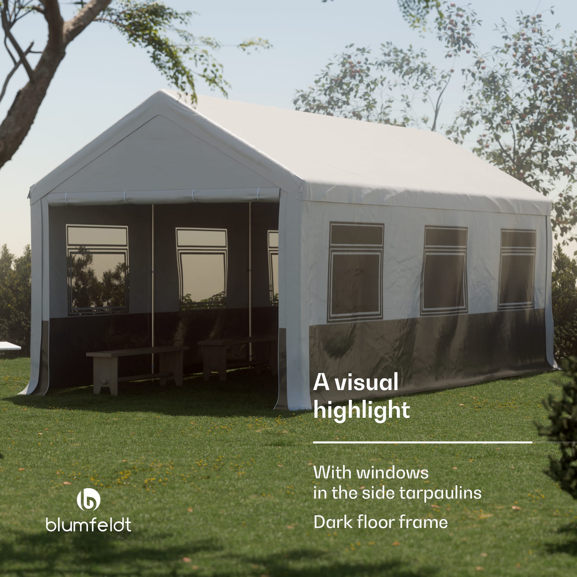 Záhradný stan na všetky príležitosti: Stan Blumfeldt Party Haven je nevyhnutnou súčasťou vonkajších narodenín, rodinných grilovačiek alebo večerných koktailov s priateľmi. Robustný párty stan od Blumfeldt je vyrobený z kvalitného materiálu a vďaka pevnej oceľovej konštrukcii odolá nárazom vetra a nepriaznivému počasiu. Strecha z PE s gramážou 170 g/m² a bočné steny z PE s gramážou 130 g/m² sú vyrobené z tkaniny odolnej voči poveternostným vplyvom. Záhradný stan poskytuje tieň počas horúcich slnečných dní, ochranu pred ľahkým dažďom a dokonca aj bariéru proti otravnému hmyzu. Ideálne na vonkajšie aktivity a párty bez ohľadu na počasie.Záhradný stan od spoločnosti Blumfeldt sa mimoriadne ľahko stavia. Základný rám možno zostaviť v niekoľkých jednoduchých krokoch pomocou jednoduchých zásuvných spojov. Strecha a bočné plachty sa potom pripevnia k oceľovému rámu. Všetky potrebné diely sú už súčasťou balenia, takže miesto na oslavu možno zriadiť aj spontánne v záhrade. Stan Party Haven od Blumfeldt je nielen mimoriadne praktický, ale aj skutočne pútavý. Či už na oslavu, alebo ako trvalá súčasť vonkajšieho priestoru. Atraktívny dizajn vnesie do vašej záhrady nádych elegancie. Základný rám tmavej farby je mimoriadne praktický. Mierne znečistenie preto nie je hneď viditeľné a párty stan vyzerá vždy čisto.