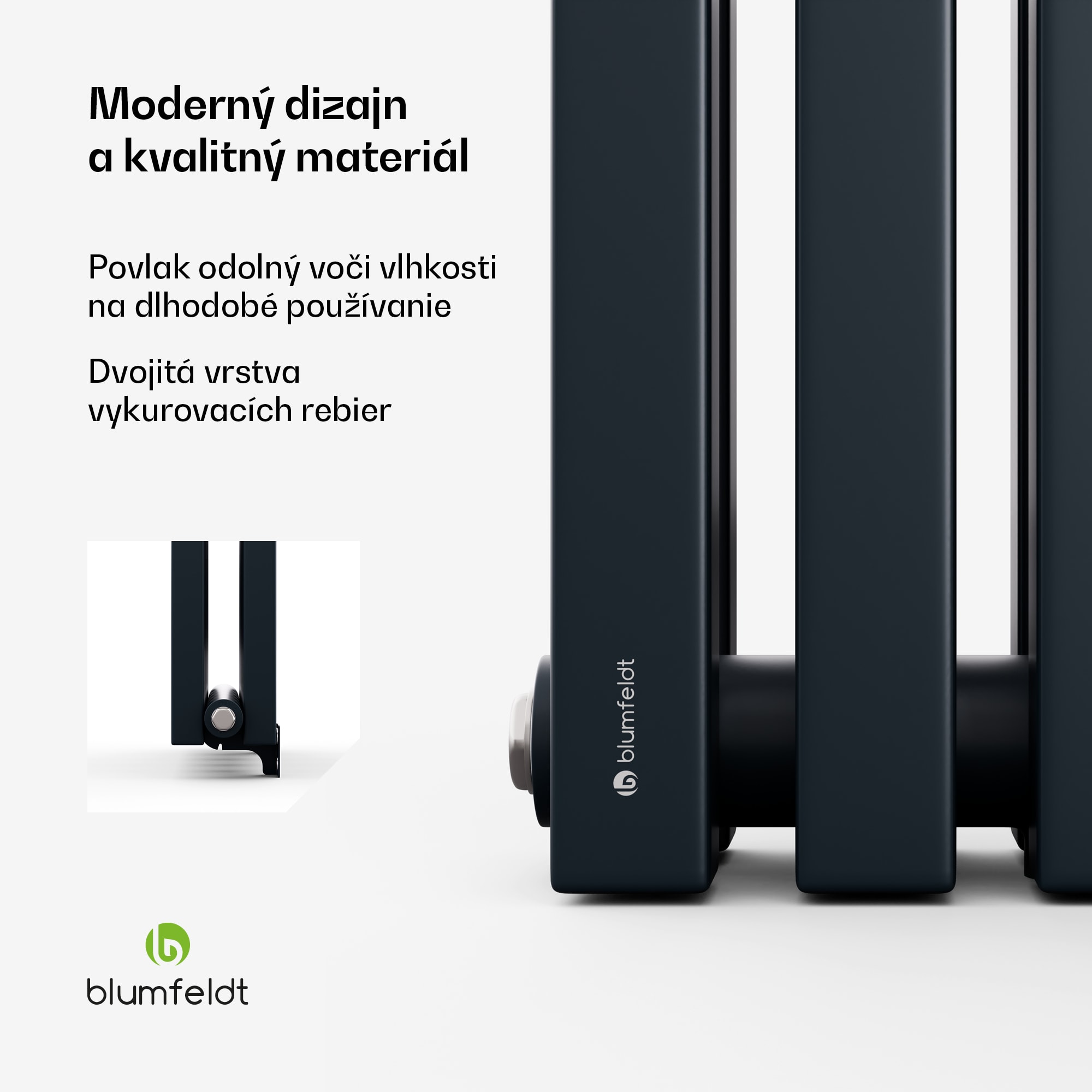 Radiátor Blumfeldt Delgado kombinuje moderný dizajn s efektívnou vykurovacou technológiou. S výkonom 942 wattov a dvojvrstvovou štruktúrou poskytuje útulné teplo a dokonale sa hodí do kúpeľní, obývacích izieb alebo kancelárií. Vďaka svojim vertikálnym vykurovacím trubkám ponúka Blumfeldt Delgado trubkový radiátor optimálne rozloženie tepla, ktoré rýchlo a rovnomerne vykuruje každú miestnosť. Stredové pripojenie umožňuje jednoduchú integráciu do systému teplej vody. Vyrobený z kvalitnej ocele s povrchovou úpravou odolnou voči teplu, ohromuje svojou trvanlivosťou a ľahko udržiavateľnými povrchmi. Vďaka svojmu štíhlemu, priestorovo úspornému dizajnu je radiátor ideálny pre rôznorodé koncepcie miestností. Či už v obývacej izbe, kancelárii alebo kúpeľni – Delgado kombinuje funkčnosť s nadčasovým štýlom. Objednajte si Blumfeldt Delgado radiátor teraz a rýchlo zažite efektívne teplo v modernom dizajne!