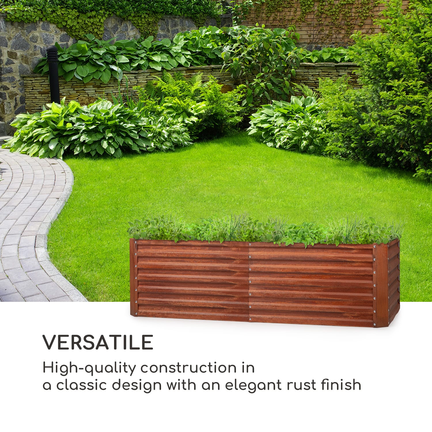 Chutne, čerstvo a z vlastného záhona: s vyvýšeným záhonom blumfeldt Rust Grow si svoje denné porcie zeleniny dopestuješ sám a terasy, dvory alebo predzáhradky sa premenia na zelené oázy. Tento okrasný vyvýšený záhon je ideálny pre každého záhradníka.Pretože šťavnaté paradajky, sladké jahody, chrumkavé cukety a aromatické bylinky sa dajú jednoducho vypestovať vďaka ideálnym podmienkam rastu. Pevná rámová konštrukcia vyvýšeného záhona z pozinkovaného oceľového vlnitého plechu je chránená pred poveternostnými vplyvmi. Vďaka tomu odoláva Rust Grow vetru a počasiu po celý rok. Dekoratívna hrdzavá povrchová úprava šikovne zakončuje pôsobivý celkový dojem.Pestré potešenie pre oči a zdravé pochúťky: s blumfeldt Rust Grow budú dosiahnuté optimálne podmienky rastu. Umožňuje to pomerne vyššie výnosy ako nízke záhony. Záhradníci sa potešia z pohodlia pri státí a z ochrany svojho chrbta. Vyvýšené záhony zároveň chránia tvoje rastliny pred škodcami, ako sú napríklad slimáky.Čas všetko urýchliť: s vyvýšeným záhonom blumfeldt Rust Grow môže každý objaviť svoj záhradnícky talent.