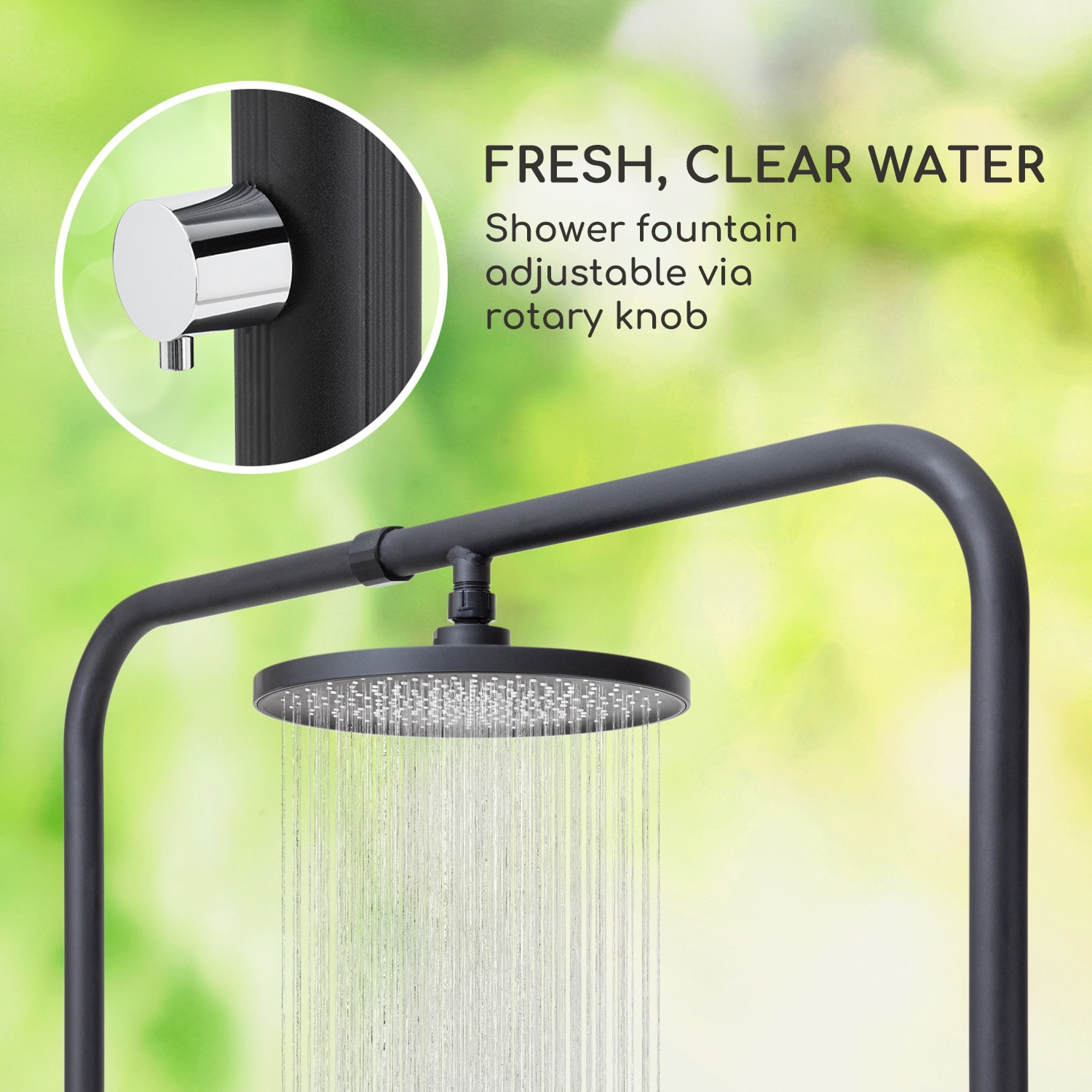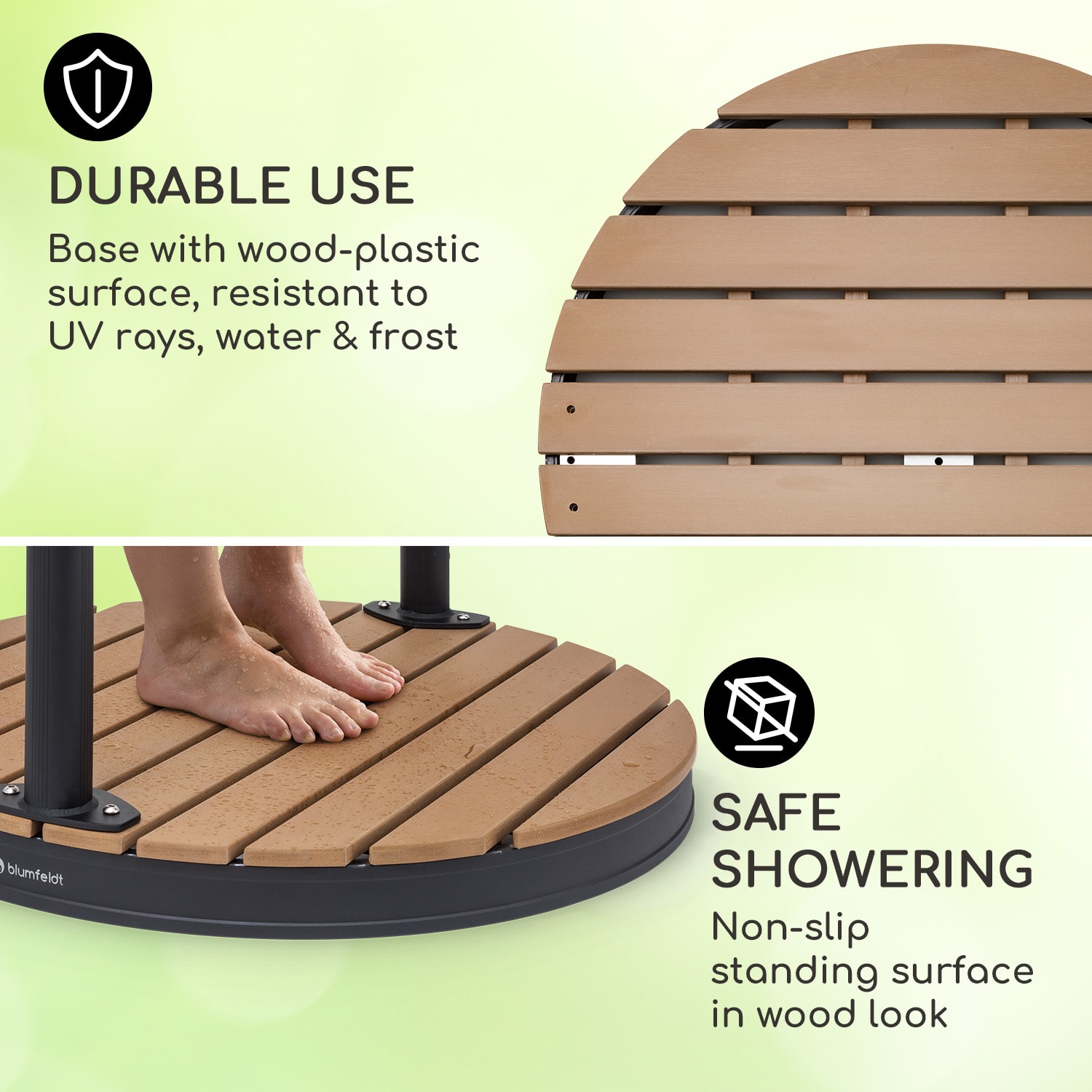 Do studenej vody: záhradná prízemná sprcha Cool Breeze od blumfeldt prináša chladné osvieženie počas horúcich letných dní.Tento rok bude ľahké zachovať si v záhrade chladnú hlavu. O to sa jednoduchým a efektívnym spôsobom postará vonkajšia sprcha Cool Breeze do blumfeldt. Chladivý osviežujúci zázrak stačí pripojiť k záhradnej hadici a zábava sa môže začať. Zapnite vodu a z okrúhlej sprchovej hlavice na vás bude pršať chladná voda ako vodopád. Vďaka tomu je blumfeldt Cool Breeze ideálna aj ako saunová sprcha – najmä preto, že si ľahko nájde miesto aj v obmedzenom priestore. Dômyselná kombinácia robustných materiálov zaručuje dlhotrvajúce osvieženie. Základňa sprchy je vyrobená z eloxovaného hliníka s matnou čiernou povrchovou úpravou a je zakončená protišmykovou doskou z WPC (Wood-Plastic-Composite). Nielenže je zo 60 % vyrobená z dreva, čím šetrí prírodné zdroje, ale je aj odolná voči plesniam, mrazu, vode a UV žiareniu a zároveň sa mimoriadne ľahko čistí. Vďaka nekomplikovanej montáži a demontáži možno prízemnú sprchu v zime skladovať priestorovo úsporne a bez obáv z jej zamrznutia.Leto, slnko, osvieženie. So záhradnou sprchou Cool Breeze od blumfeldt nájdete osviežujúcu zábavu počas kúpania aj v tej najmenšej záhrade.