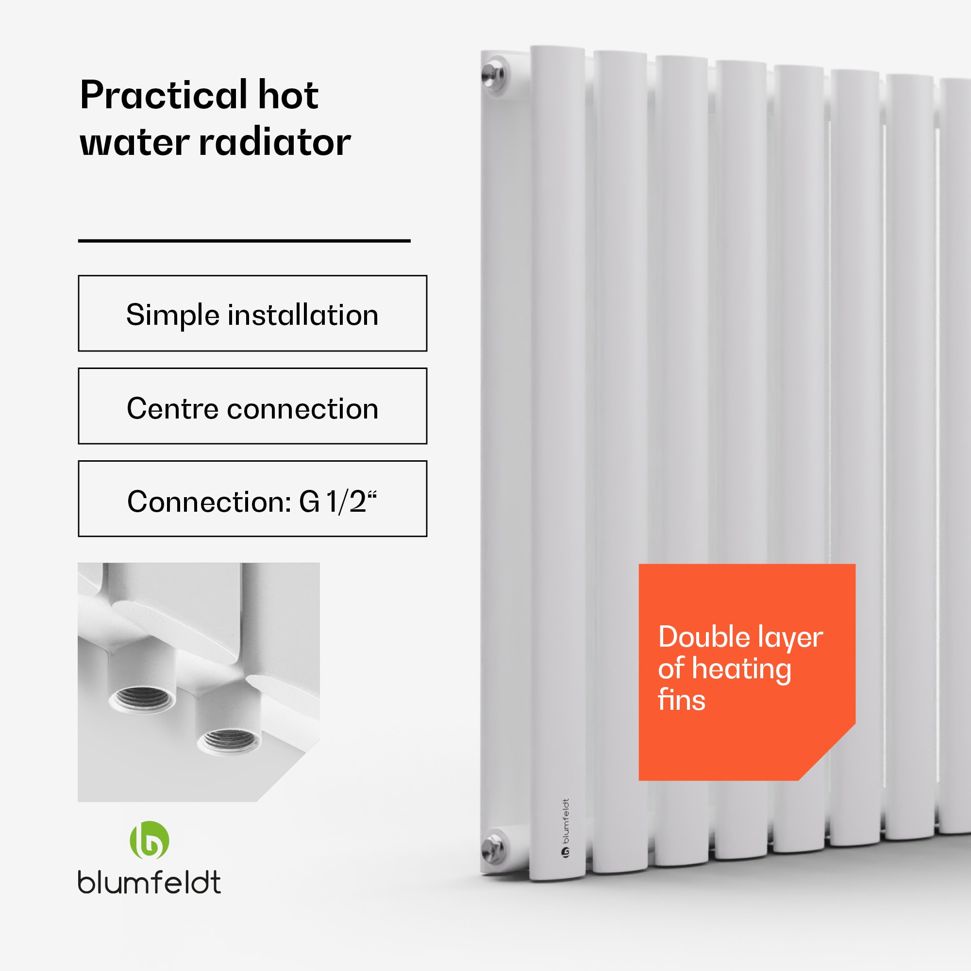 Blumfeldt Tallheo, 100 x 60, radiátor, rúrkový radiátor, 1445 W, teplá voda, 1/2 –Kúpiť