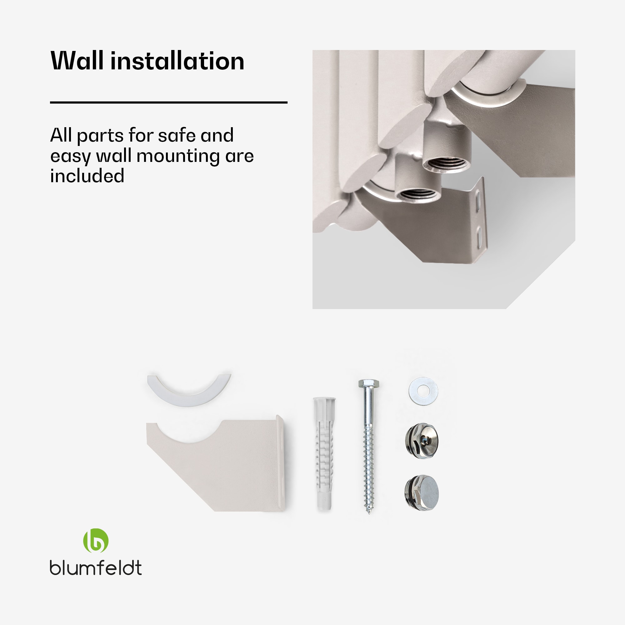 Príjemné teplo pre váš domov v modernom dizajne: radiátor Tallheo 100 x 60 cm od Blumfeldt nielenže vyhreje kúpeľňu na príjemnú teplotu, ale ešte aj atraktívne vyzerá.Rúrkový radiátor Blumfeldt Tallheo 100 x 60 možno jednoducho integrovať do existujúceho systému teplej vody alebo diaľkového vykurovania. Poskytuje spoľahlivý a rovnomerný zdroj tepla v kúpeľni. Pripojenie je veľmi jednoduché: konštrukcia umožňuje pripojenie v strede aj na bočných rúrkach. Vďaka tomu dokáže Tallheo optimálne reagovať na mnohé konštrukčné podmienky. Potrebné nástenné konzoly sú tiež priamo súčasťou balenia. Robustný systém kovových rúrok optimálne vedie a rozvádza teplo až do 70 °C. Vďaka svojim 2 x 17 vertikálnym vykurovacím rúram má navyše optimálne zväčšený povrch a dosahuje tak tepelný výkon až 1445 W.Vďaka špeciálnemu tenkému dizajnu so šírkou len 60 cm a hĺbkou 8 cm sa perfektne hodí do všetkých miestností s obmedzeným priestorom. Vďaka medzerám medzi 17 rúrkami sa radiátor veľmi jednoducho čistí. Príjemné teplo hneď po sprchovaní alebo kúpaní s radiátorom Tallheo 100 x 60 od Blumfeldt – štýlový zážitok.