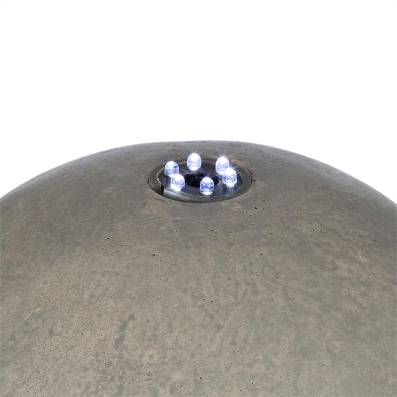 Impozantný stredobod záhrady: záhradná fontána Blumfeldt Trafalgar víťazne dominuje v záhrade a svojou hrou vody jej poskytuje osviežujúce aspekty.Záhradná fontána Blumfeldt Trafalgar z robustného sklolaminátového cementu s dizajnom liateho cementu prevýši iné záhradné dekorácie. So svojou výškou 1,50 m víťazne vytŕča spomedzi všetkých záhonov a stáva sa tak stredom záhrady. Z vyvýšenej guľovitej časti centrálneho stĺpa osviežujúco vyviera voda, ktorá prúdi cez zaoblené povrchy späť do nádrže. Malé, no výkonné čerpadlo sa postará o neustálu cirkuláciu, takže vodu netreba dopĺňať. V nádrži špeciálne priťahuje pozornosť 4,5 kg dodávaných ozdobných kameňov z červeného tufu (každý s priemerom približne 8 cm), ktoré je možné rozdeliť podľa vlastných preferencií. Malý LED veniec zabezpečuje nočné osvetlenie, ktorý rozžiari ako korunka vodu na guli. To však nie je zďaleka všetko. Elektrický systém je inštalovaný vo vnútri okrasnej fontány a nenarúša teda jej vzhľad. Pre vonkajšie použitie odolné voči poveternostným vplyvom je fontána certifikovaná podľa IP44. 5 metrov dlhý kábel umožňuje ľubovoľné umiestnenie v záhrade.Triumf záhradnej dekorácie: okrasná fontána Blumfeldt Trafalgar odvážne vystupuje zo záhradnej scenérie a poskytuje impozantný pohľad.