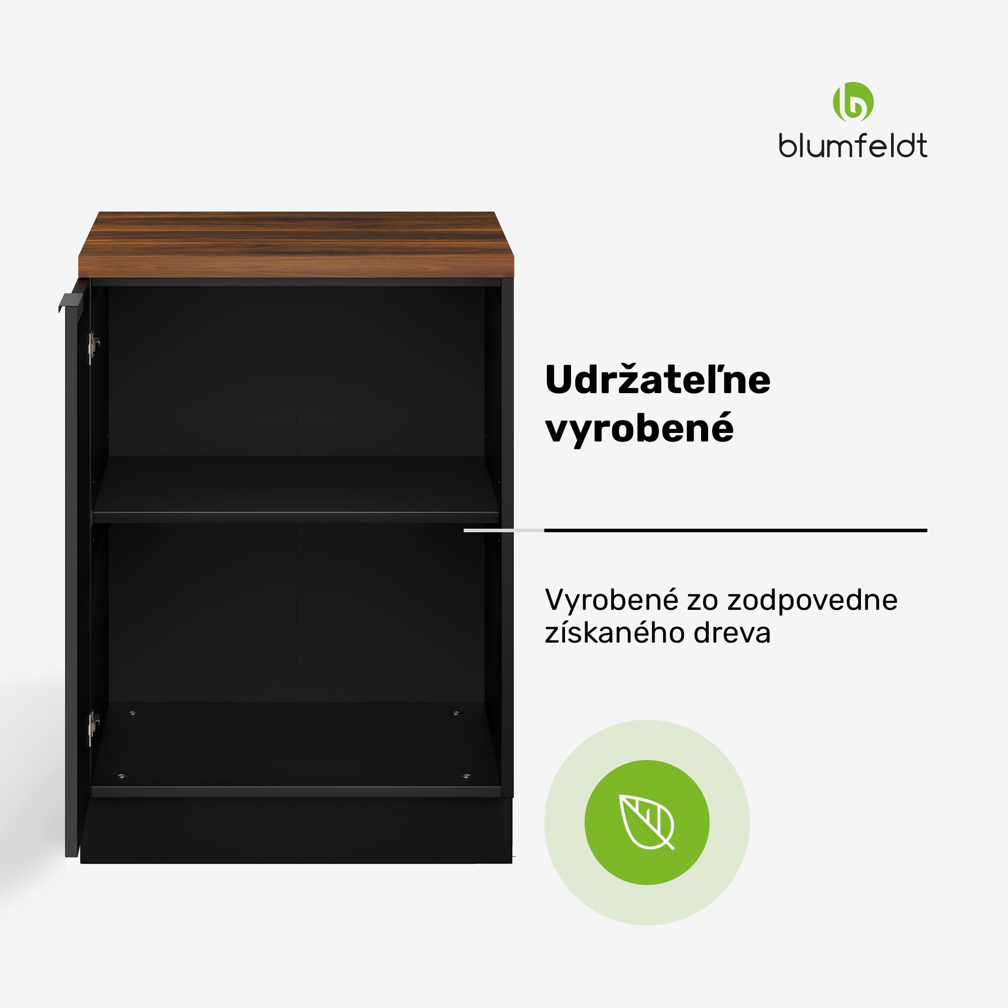 Spodná skrinka drezu Blumfeldt WoodVista ponúka optimálny úložný priestor s elegantným a funkčným dizajnom. Je ideálna ako základná skrinka pod drez alebo ako samostatne stojaci úložný priestor a do kuchyne prináša štýl aj praktickosť.Vďaka robustnej pracovnej doske z MDF s hrúbkou 30 mm má skrinka pevný a vodeodolný povrch, ktorý je ideálny pre oblasť drezu. Jej moderný dizajn podčiarkujú matné hliníkové rukoväte a bez problémov zapadne do každého interiéru kuchyne. Soft-Close závesy umožňujú jemné a tiché zatváranie dverí, čím zaisťujú pohodlie a odolnosť. Nastaviteľné nožičky ABS a panel, ktoré sú súčasťou dodávky, zabezpečujú flexibilné prispôsobenie rôznym inštalačným situáciám. Povrch potiahnutý melamínom sa ľahko čistí a je ideálny do vlhkého prostredia, napríklad pod drez. Kompaktné škatule s hmotnosťou menej ako 30 kg umožňujú jednoduchú a bezproblémovú prepravu a montáž.Premeňte svoj drezový priestor pomocou drezovej skrinky Blumfeldt WoodVista – štýlové a praktické kuchynské riešenie!