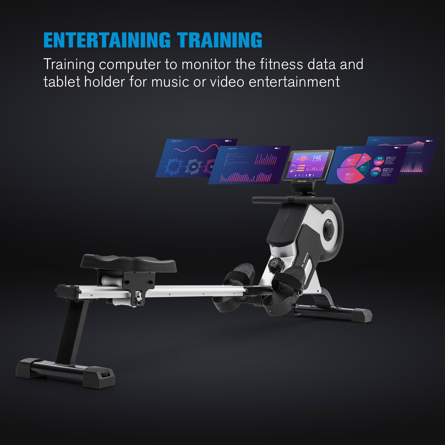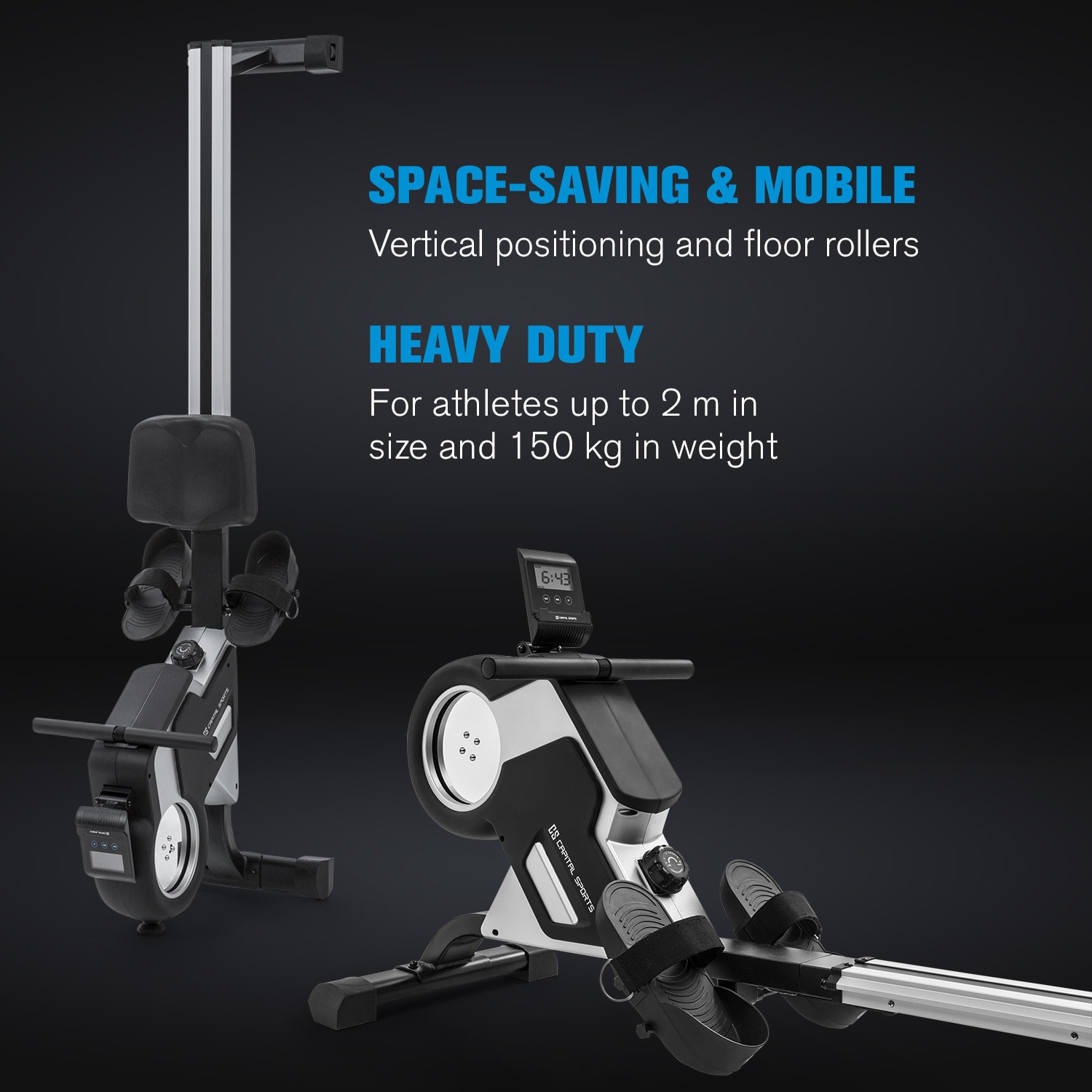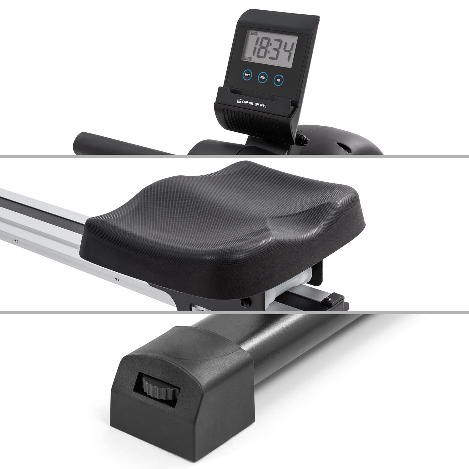 Tréning celého tela Veslovací trenažér Stream M1 od CAPITAL SPORTS umožňuje vysoko efektívny a na kĺby šetrný tréning celého tela pre športovcov do výšky 200 cm a hmotnosťou 150 kg. Takto budete od teraz trénovať vašu kondíciu a svaly!Veslovacia lavica Stream M1 od CAPITAL SPORTS vám sľubuje jedinečný zážitok z domáceho cvičenia. Srdcom vyváženého a kĺby šetriaceho tréningu je kvalitný, precízny hliníkový zotrvačník, ktorý pomocou nášho oceneného systému magnetického odporu MagResist odporuje vášmu veslovaniu vďaka 8 stupňom magnetického odporu. Vďaka hladkému chodu 105 cm dlhej hliníkovej posuvnej lišty je tréning takmer bezhlučný a bezproblémový a možný takmer v ktorúkoľvek dennú alebo nočnú hodinu. Na sledovanie vášho tréningu má veslovací trenažér Stream M1 od CAPITAL SPORTS k dispozícii mini počítač s LCD displejom, na ktorom nielenže môžete sledovať pádlovanie, prejdenú vzdialenosť alebo spálené kalórie. Na príjem údajov z impulzného pásma je k dispozícii integrovaný prijímač. Displej má aj držiak na tablet, takže si počas veslovania môžete vychutnať obľúbené relácie alebo hudbu. Opierky nôh so suchými zipsami zaisťujú bezpečné držanie. Po tréningu sa dá veslovací trenažér jednoducho a priestorovo úsporne uskladniť: Pomocou integrovaných podlahových koliesok ho premiestnite podľa potreby a posuvnú lištu nastavte vertikálne.Nie je to stroj ako každý iný: veslovací trenažér Stream M1 od CAPITAL SPORTS spája tichý, prirodzený a kĺby šetriaci tréning s kvalitným spracovaním a štýlovým dizajnom.