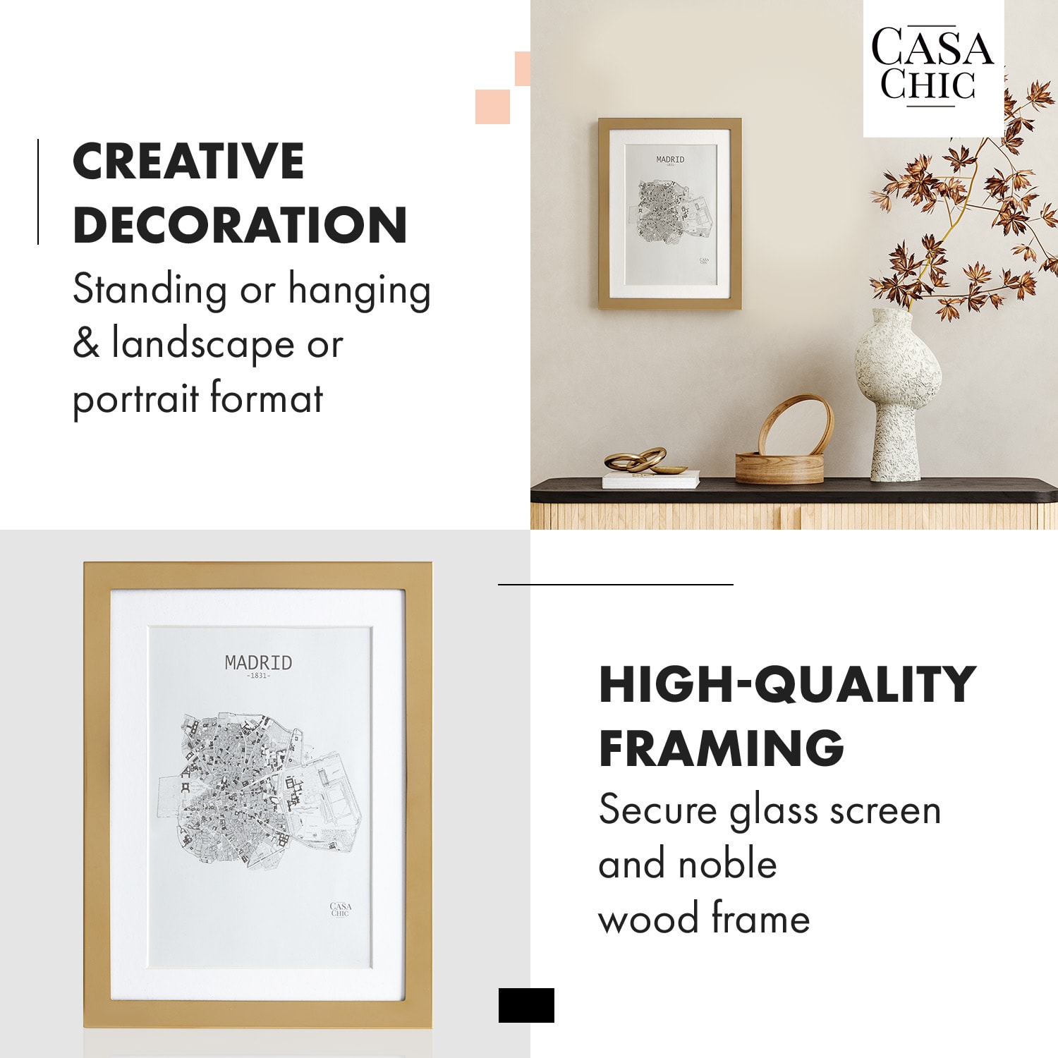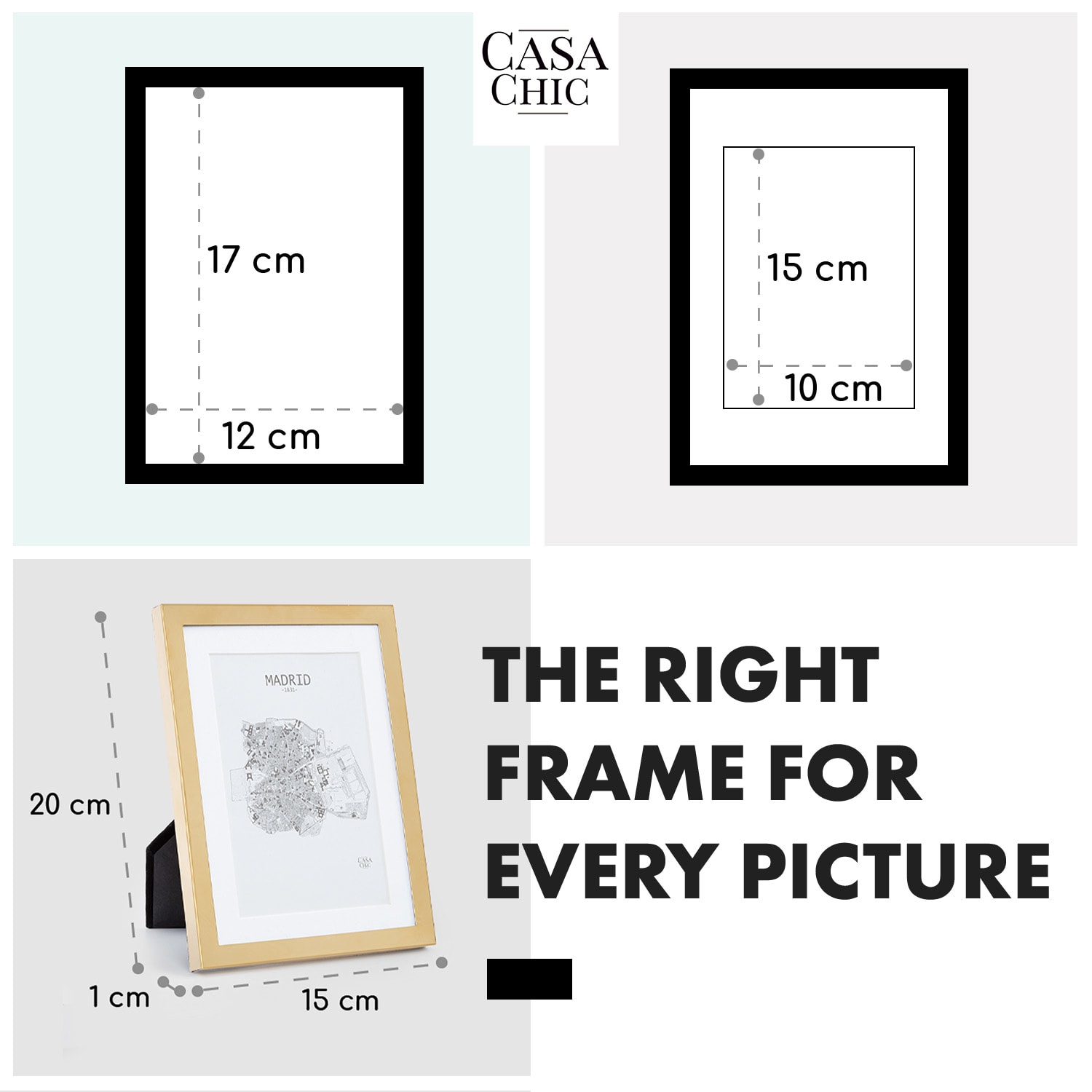 Rámčeky na obrazyBerwick od Casa Chic by blumfeldt vnesú do vášho domova novú eleganciu. Šikovne prezentujte svoje obľúbené fotografie – s paspartou alebo bez nej: ako stojan na výšku alebo na šírku alebo ako klasický nástenný rám. Za sklenenou tabuľou sa každý obrázok stane lákadlom pre oči. Kvalitný držiak na zadnej strane umožňuje mimoriadne jednoduché vkladanie alebo výmenu obrázkov. Každý deň vám vyčarí úsmev na tvári: V štýlových fotorámikoch Berwick nájdu vaše spomienky krásny domov.