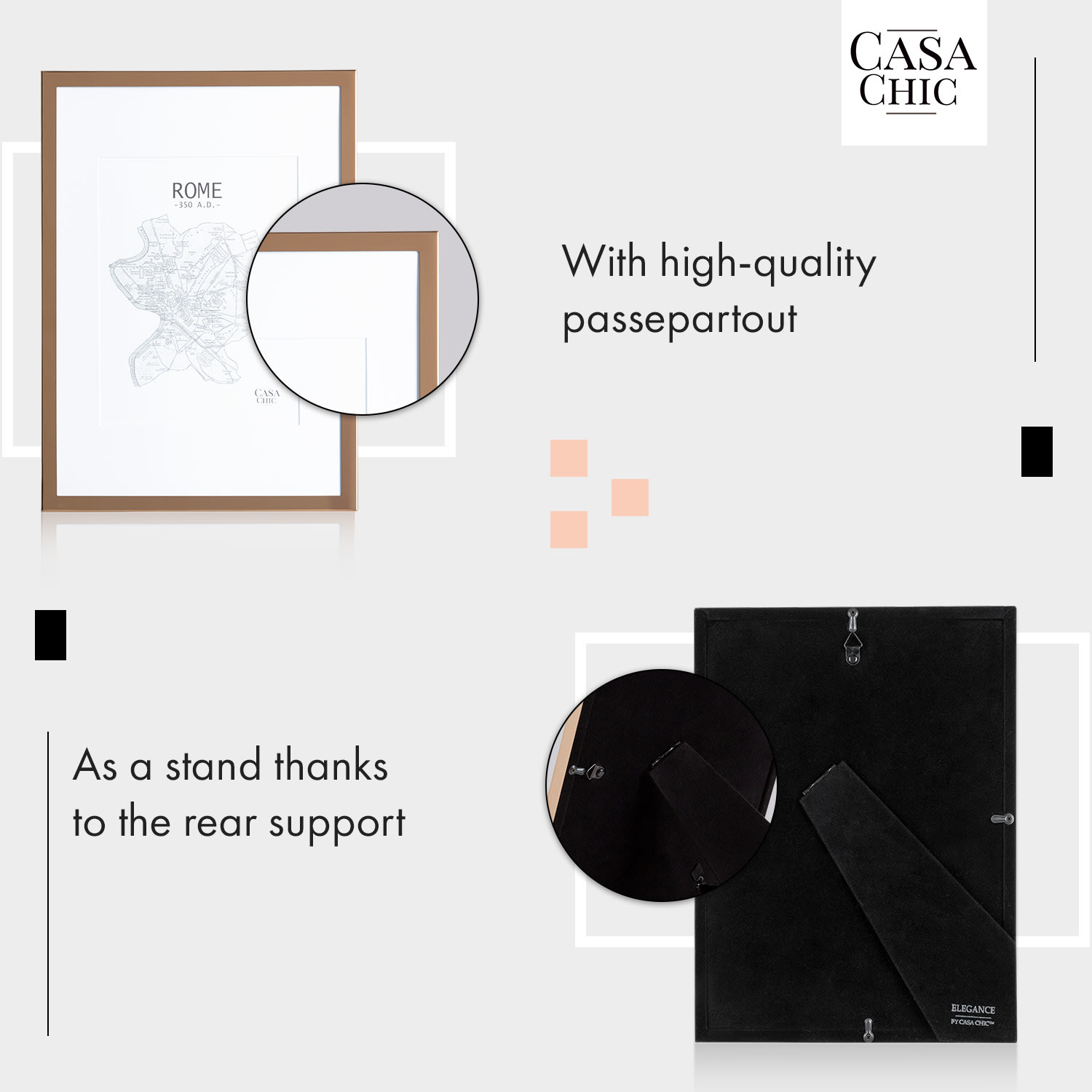 Rámčeky na obrazyBerwick od Casa Chic by blumfeldt vnesú do vášho domova novú eleganciu. Šikovne prezentujte svoje obľúbené fotografie – s paspartou alebo bez nej: ako stojan na výšku alebo na šírku alebo ako klasický nástenný rám . Za sklenenou tabuľou sa každý obrázok stane lákadlom pre oči. Kvalitný držiak na zadnej strane umožňuje mimoriadne jednoduché vkladanie alebo výmenu obrázkov. Každý deň vám vyčarí úsmev na tvári: V štýlových fotorámikoch Berwick nájdu vaše spomienky krásny domov.