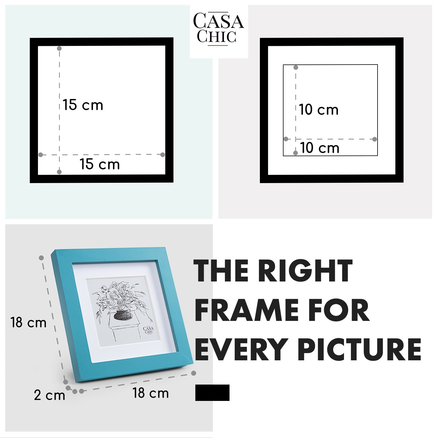 Casa Chic Clapton, rám na obrázky, štvorcový, fotky 15 x 15 cm, pasparta, sklo –Kúpiť