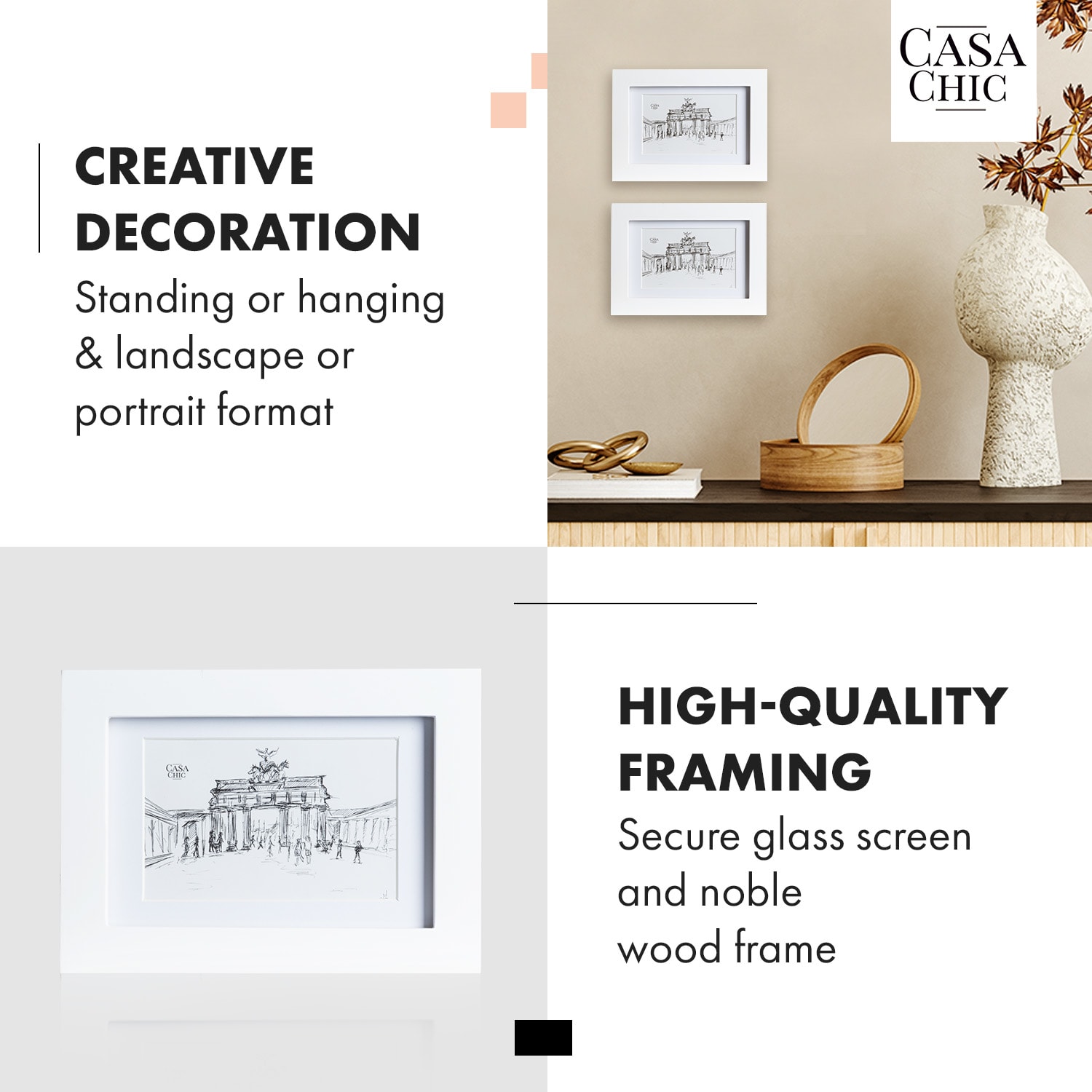 So sympatickým fotorámom z pravého dreva Everton od Casa Chic by blumfeldt zvýrazníte vaše fotky a obrázky vo formáte na výšku, ako aj na šírku. Buďte flexibilní a vytvorte si krásne nástenné koláže alebo naaranžujte svoje obľúbené fotografie na príborník alebo poličku. Priložená pasparta ponecháva výber vhodnej obrazovej časti na vás. Jednoduchý profil rámu a predné sklo z pravého skla poskytujú eleganciu a najlepšiu ochranu.Pre domov plný krásnych spomienok: obrazový rám Everton od Casa Chic by blumfeldt šikovne prezentuje výnimočné okamihy.