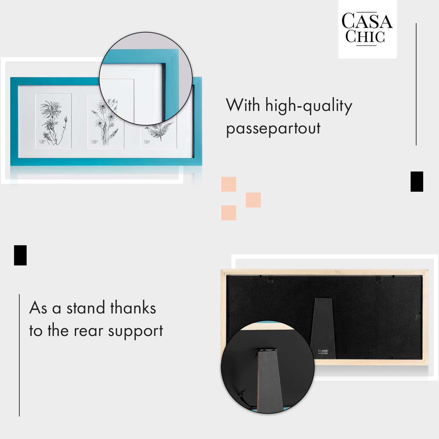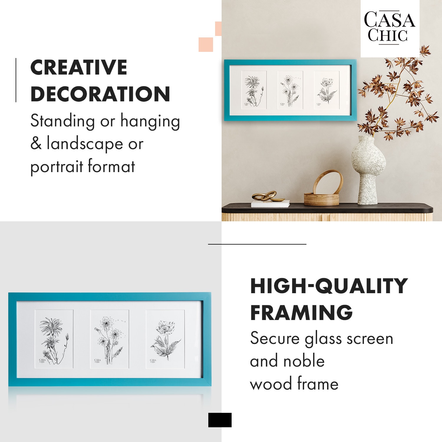 Vytvorte si pestrý a živý domov: obrazový rám Moorgate od Casa Chic by blumfeldt kombinuje na spôsob koláže 3 obrázky zároveň v jednom ráme z pravého dreva. Vysokokvalitná pasparta zabezpečuje rovnomerné rozmiestnenie. Pomocou fotorámu Moorgate môžete tiež zarámovať panoramatické zábery alebo zábery vo formáte na výšku a nádherne ich prezentovať. Flexibilitu máte aj pri výbere umiestnenia, či už so stojanom na príborníku, na poličke alebo ako nástenný obrazový rám, hodí sa všade a vďaka jednoduchému profilu rámu a prednej tabuli z pravého skla uchová vaše najkrajšie spomienky.