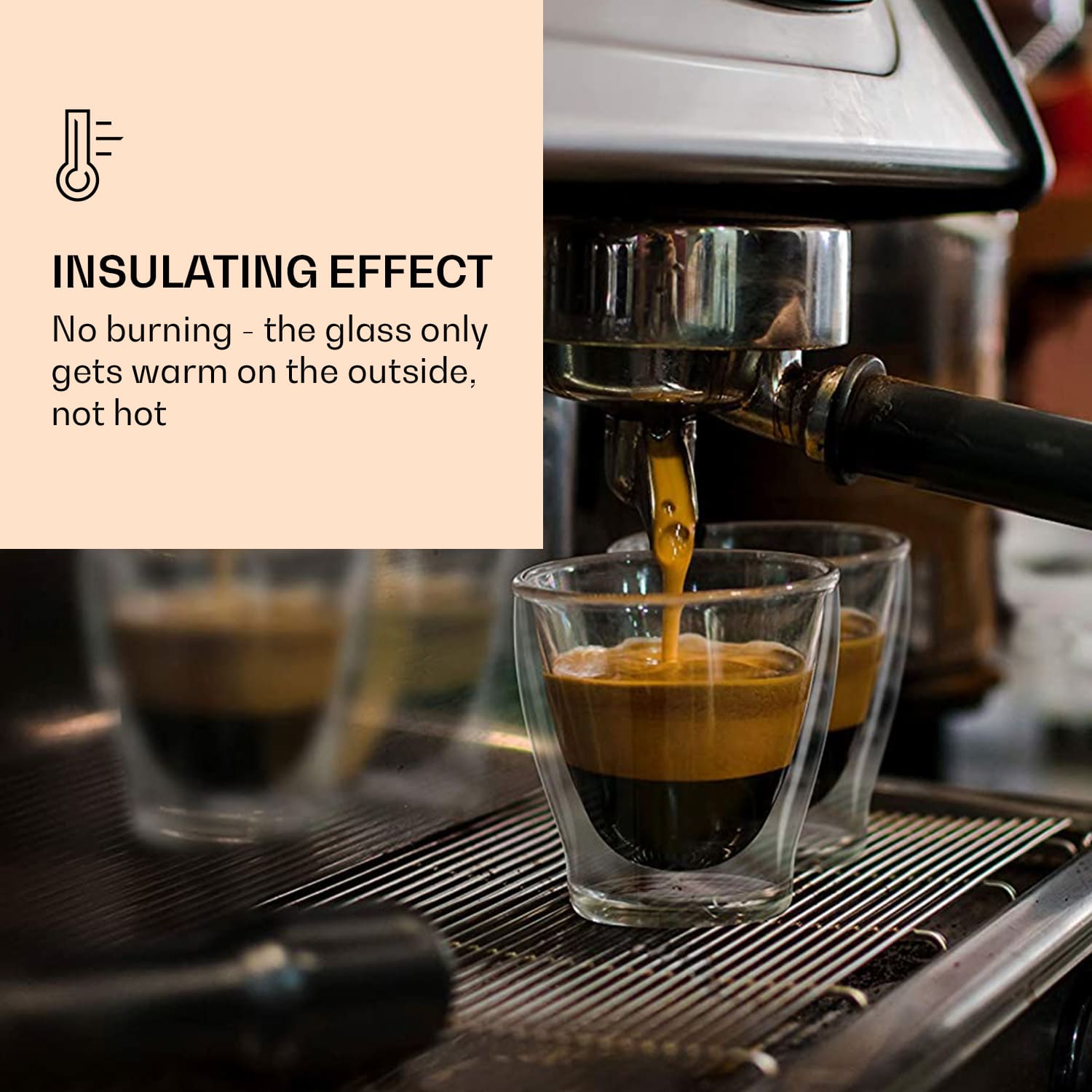 Luxusný pohár DUOS od Feelino by Klarstein je vyrobený ručne a svojím elegantným dizajnom obohatí vaše obytné prostredie. Dvojitá sklenená vrstva udrží studené nápoje dlhšie studené a teplé nápoje dlhšie teplé. Tento atraktívny pohár na espresso, čaj, panáky, aperitívy alebo dezerty je vyrobená z borosilikátového skla a je mimoriadne odolný a žiaruvzdorný: Je odolný proti poškriabaniu, veľmi ľahký a samozrejme vhodný do umývačky riadu. Systém dvojitých stien poskytuje aj úžasný optický efekt, vďaka ktorému sa zdá, že sa kvapaliny vznášajú. Štýlové, robustné a ručne vyrobené – dvojstenné termo poháre DUOS od spoločnosti Feelino by Klarstein.