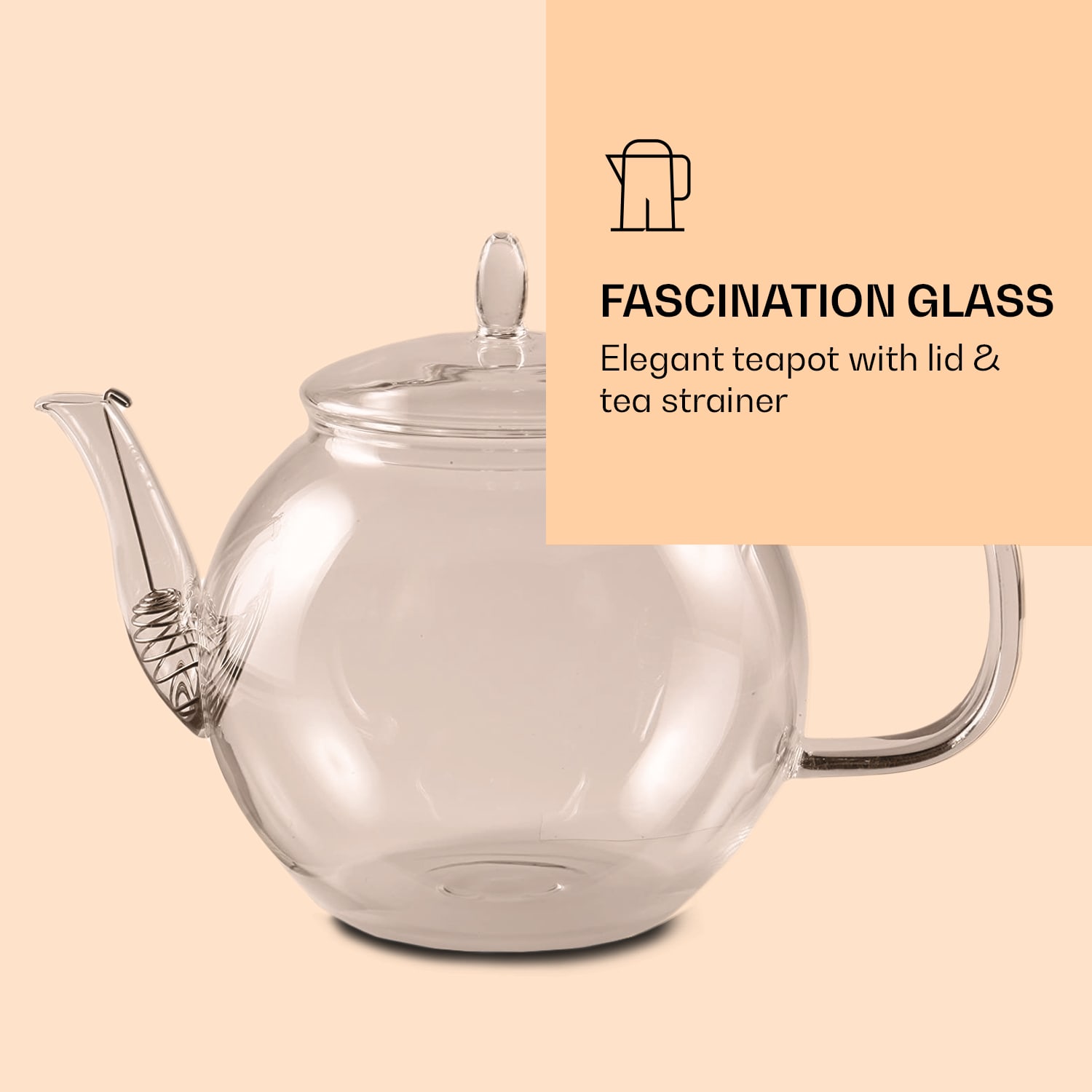 Zvodný pohľad na čajový stôl: luxusná sklenená kanvica Bedida od Feelino by Klarstein vyžaruje čistú nostalgiu vďaka svojmu baňatému tvaru a harmonicky tvarovanému sklenenému uzáveru. Vďaka výrobe fúkaním z ušľachtilého borosilikátového skla je každá čajová kanvica jedinečná. Okrem jedinečnej kvality skla s vysokou odolnosťou a dobrým tepelno-izolačnými vlastnosťami zaujme aj praktický a zároveň dekoratívny doplnok: špirálové sitko na čaj z nehrdzavejúcej ocele je umiestnené v zakrivenom hrdle – sypaný čaj tak pri zalievaní zostane v kanvici. Vďaka vysokokvalitnému borosilikátovému sklu sa vytvára termo efekt, ktorý čaj udrží dlho teplý.Pitie čaju ako prírodné divadlo: čajová kanvica z fúkaného skla Bedida od Feelino by Klarstein nádherne ukazuje cez svoju baňatú sklenenú vrstvu, ako sa pod vodou exotické čajové kvety farebne rozvíjajú.