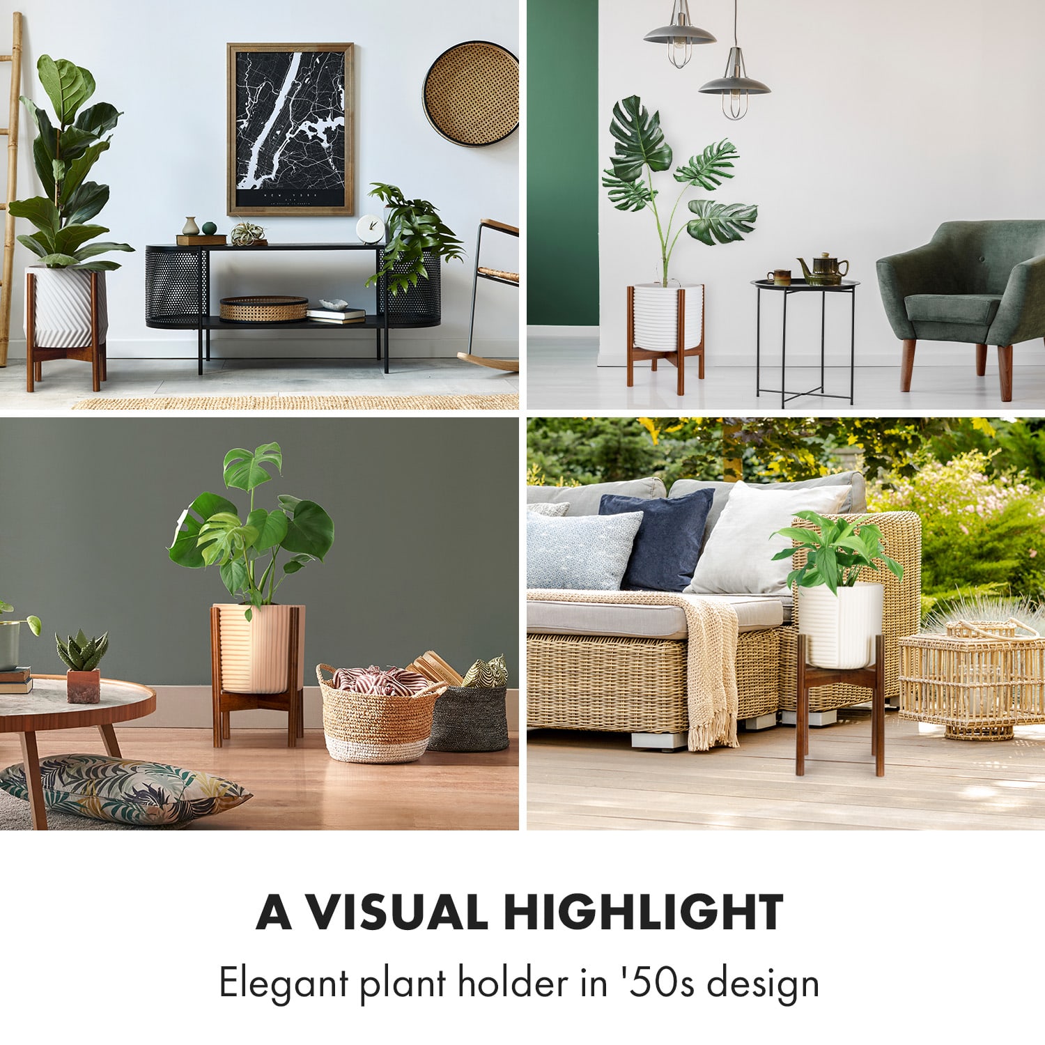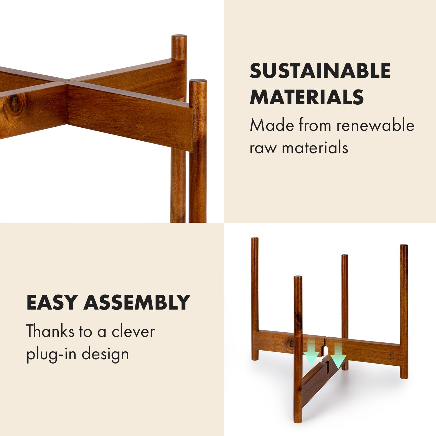 Fox & Fern Zeist, stojan na rastliny, 2 výšky, kombinovateľný, zásuvný dizajn, prírodný