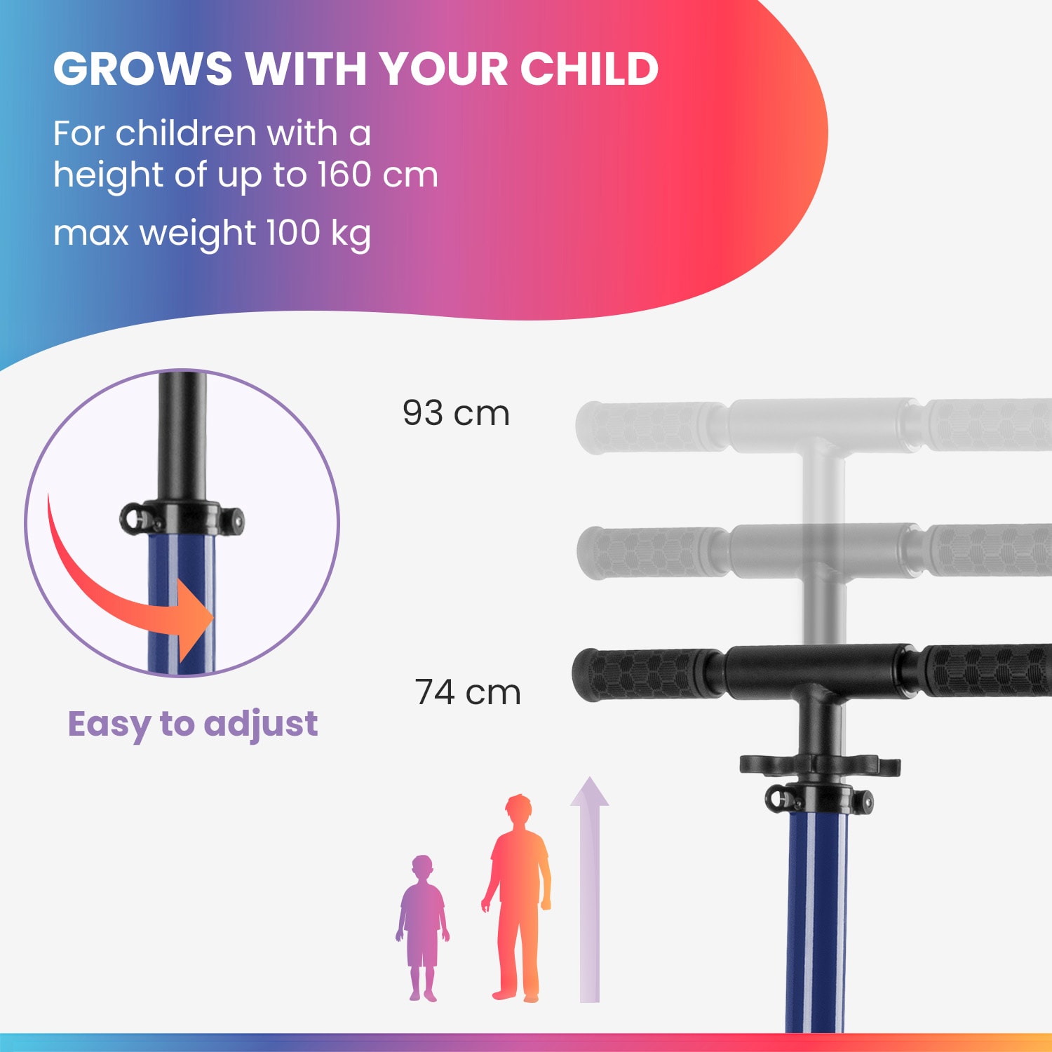 Zábava na kolobežke pre veľké deti! NaÅ¡a fun pro THREE detská kolobežka je vhodná pre vÅ¡etky deti a mládež vo veku 6 – 18 rokov, ktorà uprednostňujú jazdu na dvojkolesovej kolobežke. Kolobežka unesie až 100 kg a má plynulo nastaviteľné riadidlá od 74 do 93 cm: ideálne pre výšku od 110 do 160 cm. Riadidlá sa dajú ľahko zložiÅ¥ a dokonca aj konce riadidiel sa dajú pohodlne zložiÅ¥ dovnútra. Oba mechanizmy sú optimalizované, sedia veľmi Äisto a poÄas jazdy nedrnÄia. Kolobežka je teda naozaj vhodná na použitie vo verejnej doprave a zaberá málo miesta. Prepravu uľahÄuje aj popruh na prenášanie. Kolesá z PU s priemerom 120 mm a guľôÄkovými ložiskami ABEC 9 ponúkajú veľký pohon a zároveň sú obratné a ľahké. Tak ako vÅ¡etky naÅ¡e kolobežky, aj kolobežka fun pro THREE má treciu brzdu na zadnom kolese, ktorá zaisÅ¥uje potrebnú bezpeÄnosÅ¥. Rozkladacà stojan uľahÄuje parkovanie a chráni riadidlá pred odreninami.