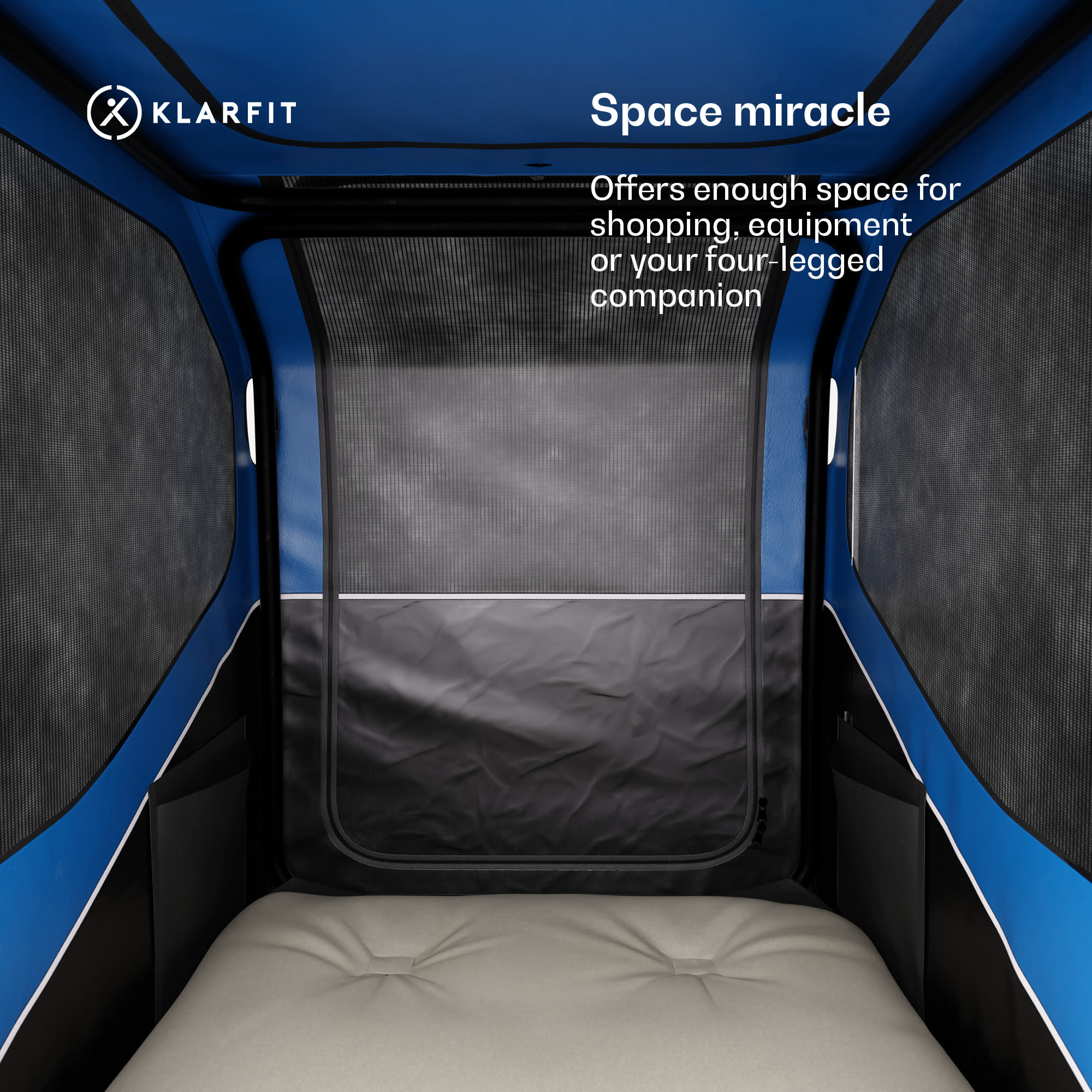 S cyklistickým prívesom KLARFIT Goldie Buggy si môžete užívať maximálne pohodlie a bezpečnosť na svojich cyklistických výletoch. Tento všestranný spoločník v sebe spája funkčnosť a štýl a urobí z vašich výletov skutočnú radosť.S úctyhodným objemom 324 litrov ponúka dostatok priestoru na nákupy, vybavenie alebo vášho štvornohého spoločníka. Vďaka robustnej oceľovej konštrukcii rámu a integrovaným reflektorom sa môžete cítiť bezpečne bez ohľadu na to, kam vás vaše dobrodružstvá zavedú.Vďaka šikovnej funkcii buginy možno príves rýchlo a jednoducho premeniť na buginu, aby ste mohli vyraziť aj pešo. Integrované brzdy zaisťujú bezpečnú prepravu a vodoodpudivá plachta chráni náklad pred nepriaznivým počasím.Praktický, skladací a vybavený rýchloupínacími kolesami sa príves na bicykel Goldie Buggy ľahko skladuje a prepravuje, keď ho práve nepoužívate. Prívesný vozík za bicykel KLARFIT Goldie Buggy , ktorý je kompatibilný so širokou škálou bicyklov, je dokonalým doplnkom vašej cyklistickej výbavy.
