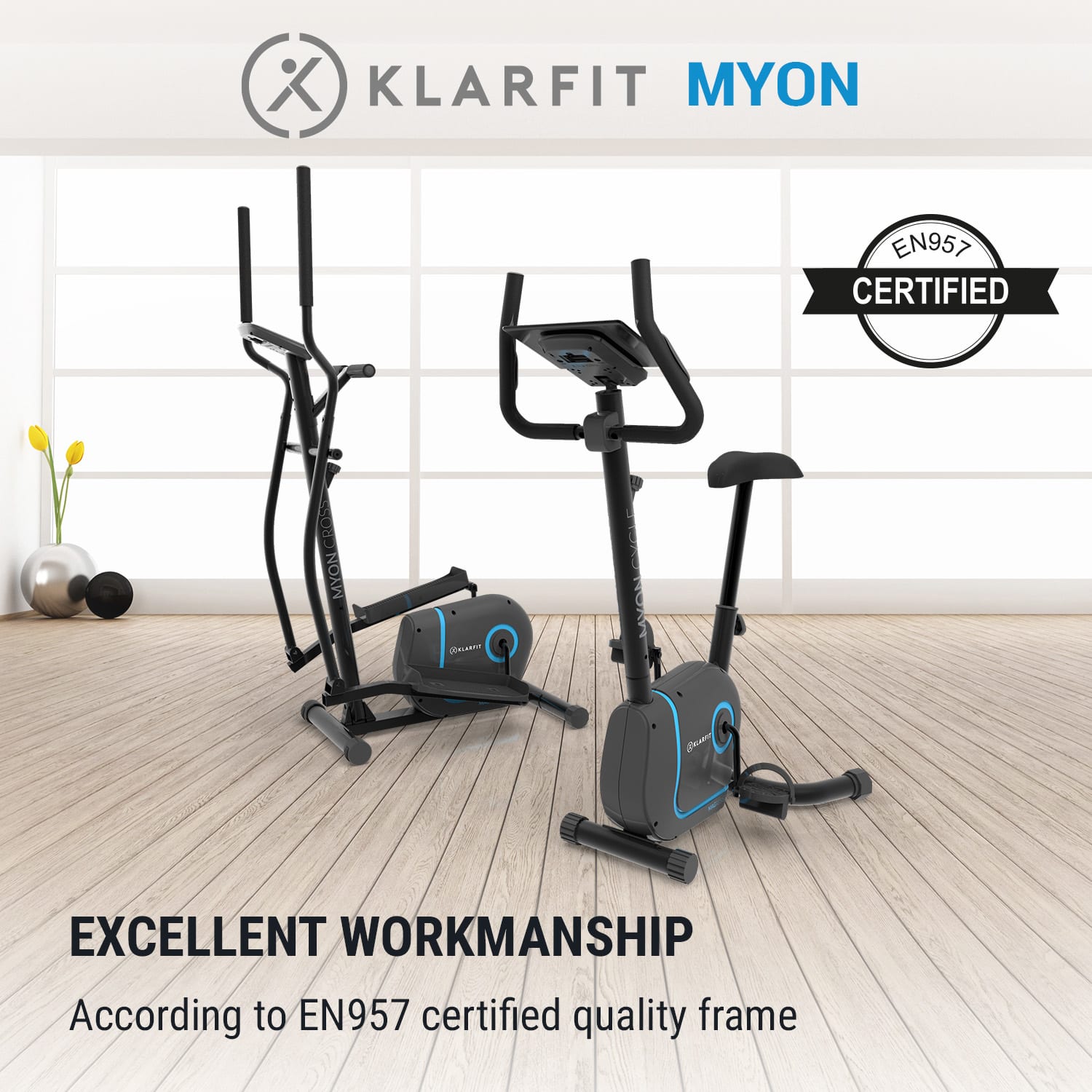Vďaka remeňovému pohonu s hladkým chodom, viacstupňovému odporu a magnetickému brzdovému systému môžete domáci trenažér Klarfit Myon Cycle kedykoľvek bez problémov jednoducho rozhýbať. Vďaka veľmi kvalitnému remeňovému pohonu so systémom SilentBelt pracuje domáci trenažér veľmi plynulo a potichu. Ideálnu silu nášľapu zabezpečuje odpor s celkovo 8 úrovňami, ktorý zaručuje efektívny tréning vďaka rozličným úrovniam. Magnetický brzdový systém s funkciou MagResist zaujme presným a spoľahlivým procesom brzdenia, ktorý je okrem toho mimoriadne šetrný k materiálu. Výškovo nastaviteľné sedadlo vás vždy uvedie do správnej polohy pre sústredený a náročný tréning. V pohodlných držadlách je zabudovaný monitor pulzu, ktorý poskytuje tréningovému počítaču aktuálne dáta o frekvencii pulzu, čo umožňuje efektívnu kontrolu výkonu. Tréningový bicykel so zotrvačníkom s hmotnosťou 12 kg má tiež držiak na tablet SmartCardio Studio, ktorý umožňuje umiestnenie vhodného zariadenia a teda popri tréningu ponúka aj všestrannú zábavu. Používaním aplikácie Kinomap môže okrem toho fotoaparát vášho tabletu alebo smartfónu rozpoznávať vaše pohyby a umožní vám tak preskúmať mnoho virtuálnych tratí. Protišmykové pedále s nastaviteľnými popruhmi chodidiel tiež pomáhajú pri zabezpečení optimálneho prenosu energie z nohy na pedál, zatiaľ čo praktické transportné kolieska zaručujú flexibilné premiestňovanie pevnej oceľovej konštrukcie. Fitnes je skutočne zábava: domáci cyklotrenažér Klarfit Myon Cycle kombinuje všetky dôležité komponenty pre produktívny a zároveň šetrný tréning v jednom športovom zariadení.