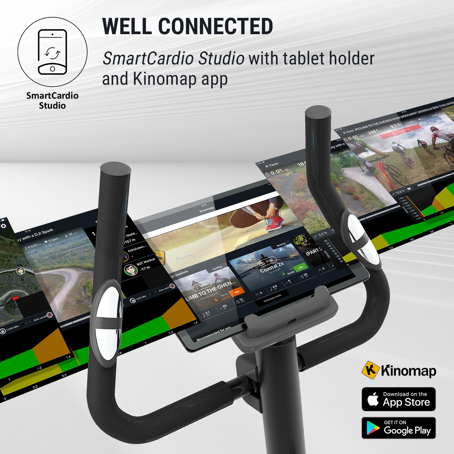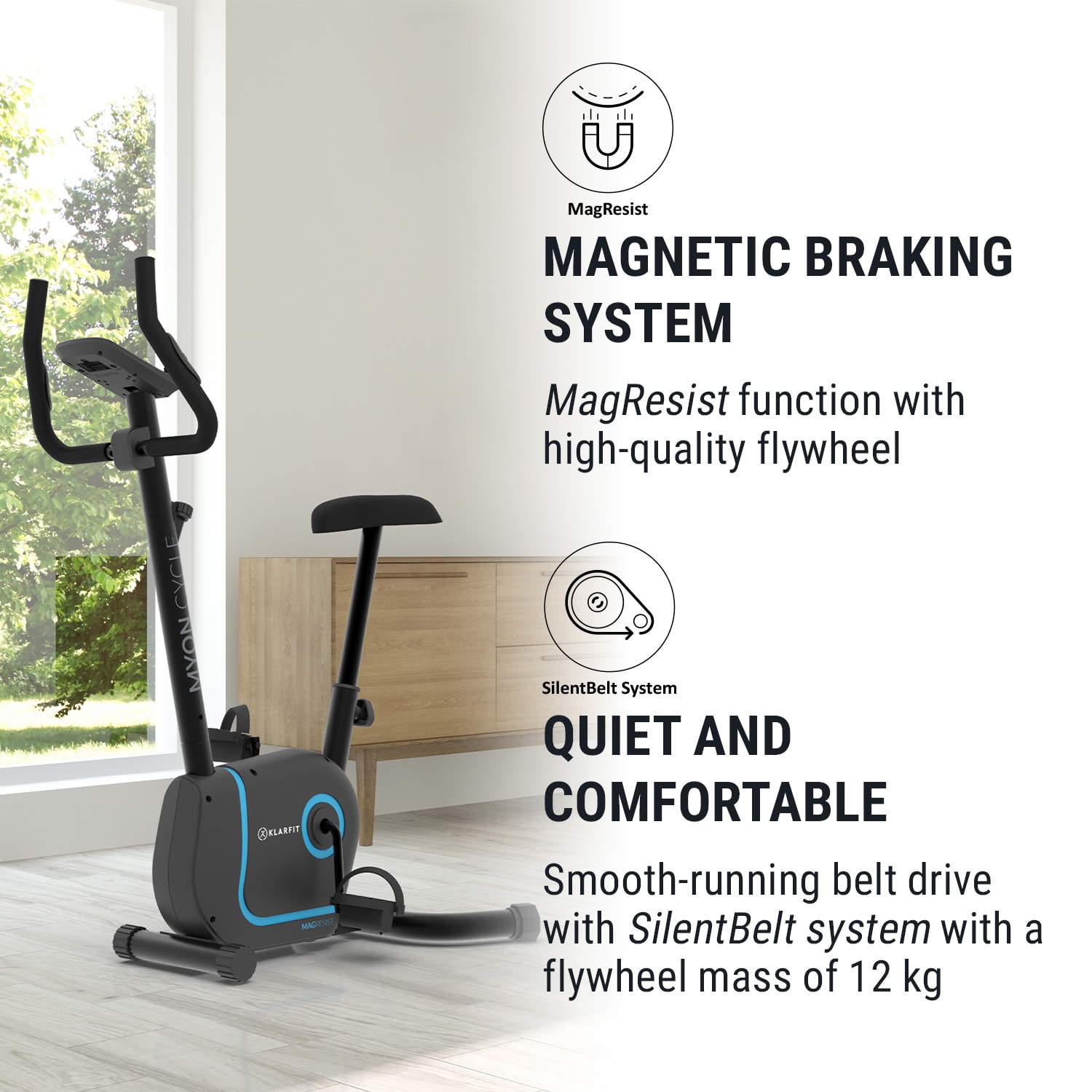 KLARFIT Myon Cycle, domáci rotoped, stacionárny bicykel, cyklotrenažér, záťažové koleso 12 kg, SmartCardio Studio –Kúpiť