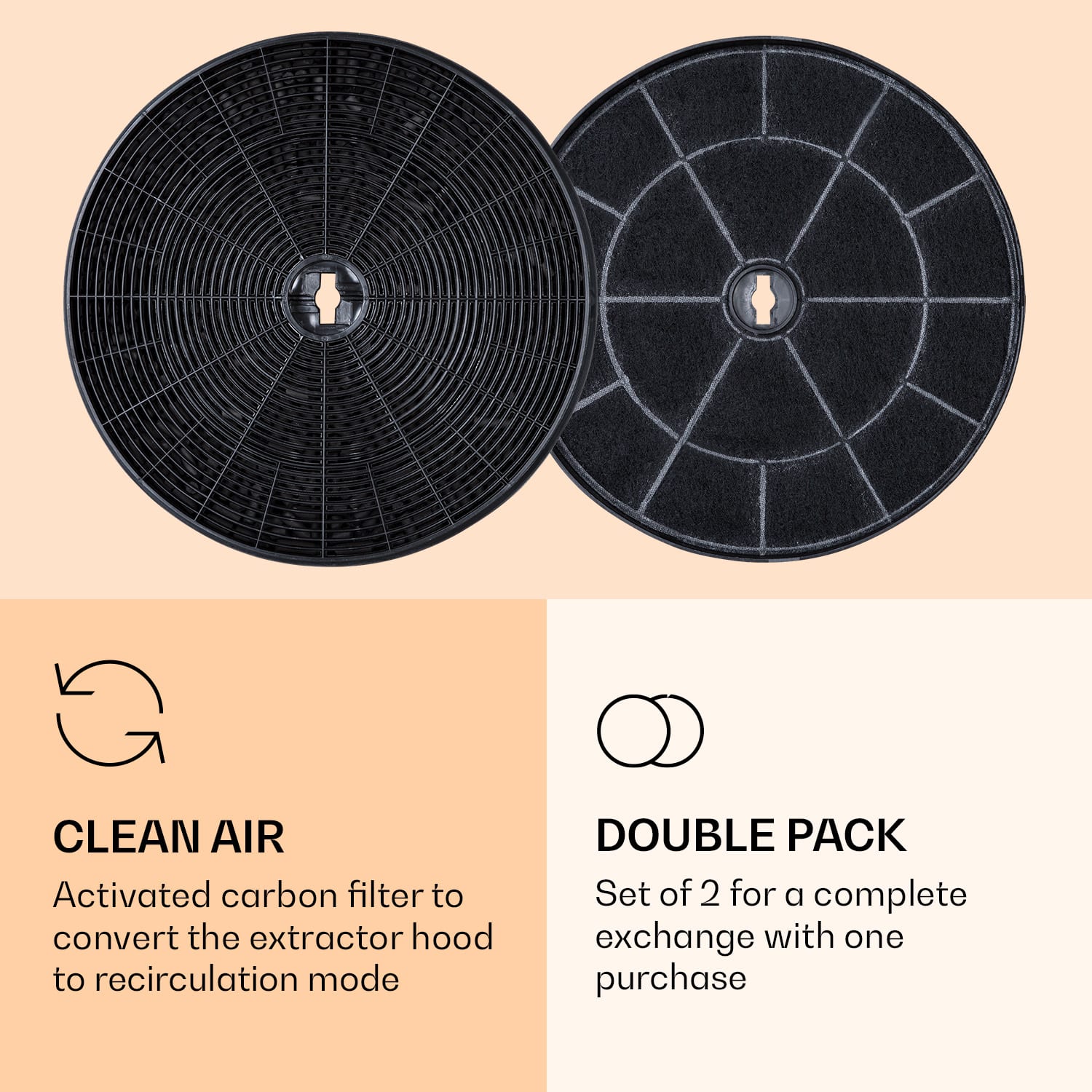 Nová sila pre čerstvý vzduch v kuchyni. Filter s aktívnym uhlím Klarstein Americana Purista dodá vášmu digestoru novú silu, Filtre sa jednoducho naskrutkujú na motor. Aktívne uhlie vo filtri viaže pachy a umožňuje prevádzku recirkulácie. Filtre s aktívnym uhlím by sa mali meniť každé 3 – 4 mesiace v závislosti od toho, ako často sa digestor používa, aby sa zachovala ich vysoká výkonnosť.
