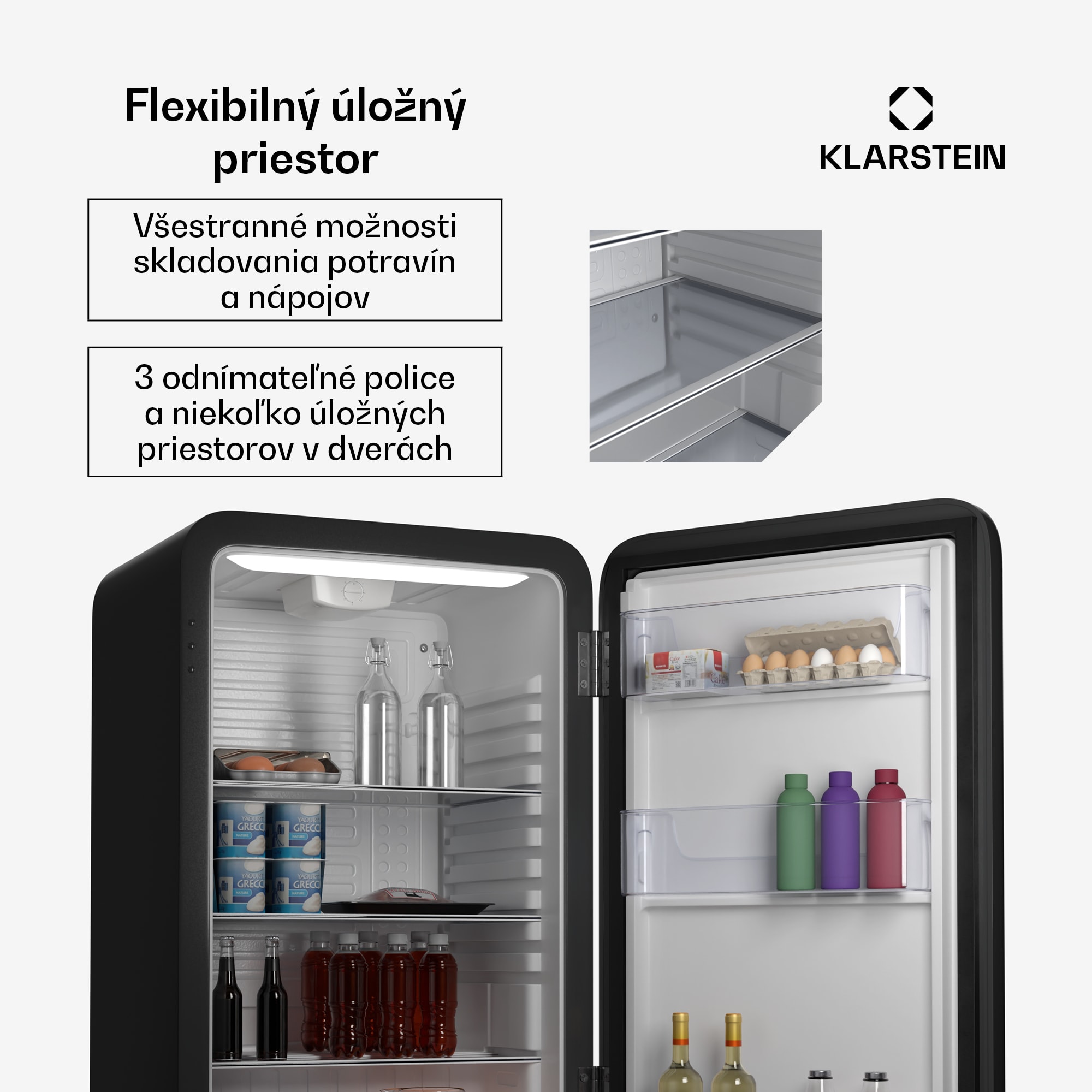 Chladnička Klarstein Audrey Evo kombinuje očarujúci retro dizajn s modernou technológiou. S objemom 112 litrov, nízkou hlučnosťou a flexibilnými možnosťami inštalácie je dokonalým doplnkom štýlových obytných a pracovných priestorov. Táto Mini chladnička ponúka napriek svojej kompaktnej veľkosti dostatok úložného priestoru. Odnímateľné police a praktická priehradka vo dverách umožňujú prehľadné usporiadanie nápojov a občerstvenia. Vďaka nastaviteľným nohám a reverzibilným dvierkam je chladnička obzvlášť prispôsobivá – ideálna pre miestnosti s obmedzeným priestorom, ako sú hotelové izby, kancelárie alebo večierky.Vintage dizajn vnesie do každého prostredia nádych nostalgie. Chladnička pracuje s výkonným kompresorovým chladiacim systémom a vďaka mechanickému termostatu umožňuje presnú reguláciu teploty od 0 °C do 10 °C. S prevádzkovou hlučnosťou iba 40 dB je dostatočne tichá na to, aby nerušila ani pri odpočinku, ani pri práci.Kúpte si chladničku Klarstein Audrey Evo – kompaktná, tichá a štýlová do každého prostredia.