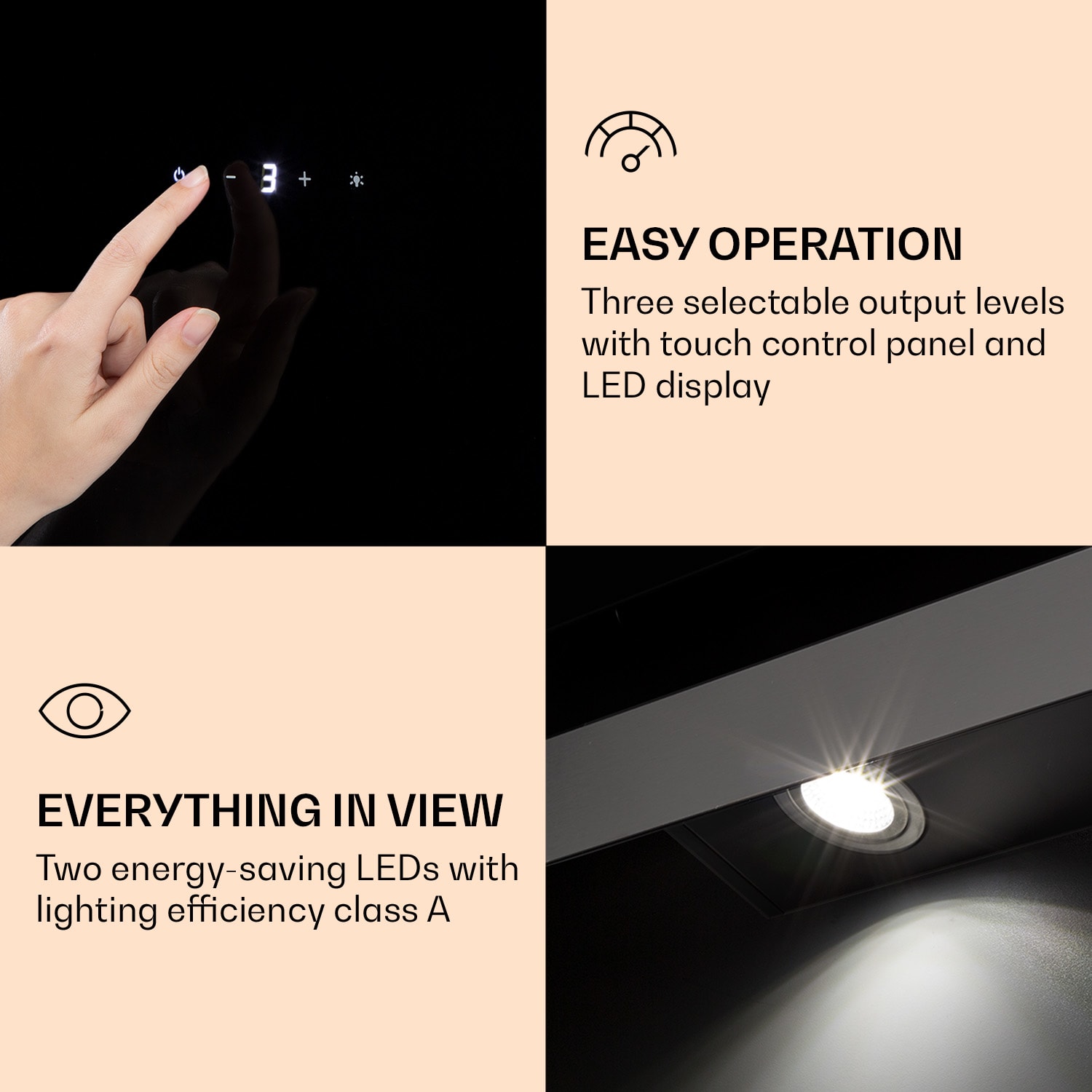 Teraz do kuchyne prichádza lesk a atmosféra – a digestory Klarstein Aurora Eco navyše eliminujú paru a pachy jedla. S prietokom odsávania až 550 m³/h v troch stupňoch Aurora Eco neúnavne odstraňuje paru a zápach z kuchyne. Zvláštny šarm vyžaruje nielen jeho štýlový exteriér z tvrdeného skla, ale aj prepínateľné okolité svetlo v 9 voliteľných farbách. V kuchyni tak vždy vládne tá správna atmosféra. Pre nazeračov do hrncov je k dispozícii aj veľmi jasné LED osvetlenie varnej dosky.