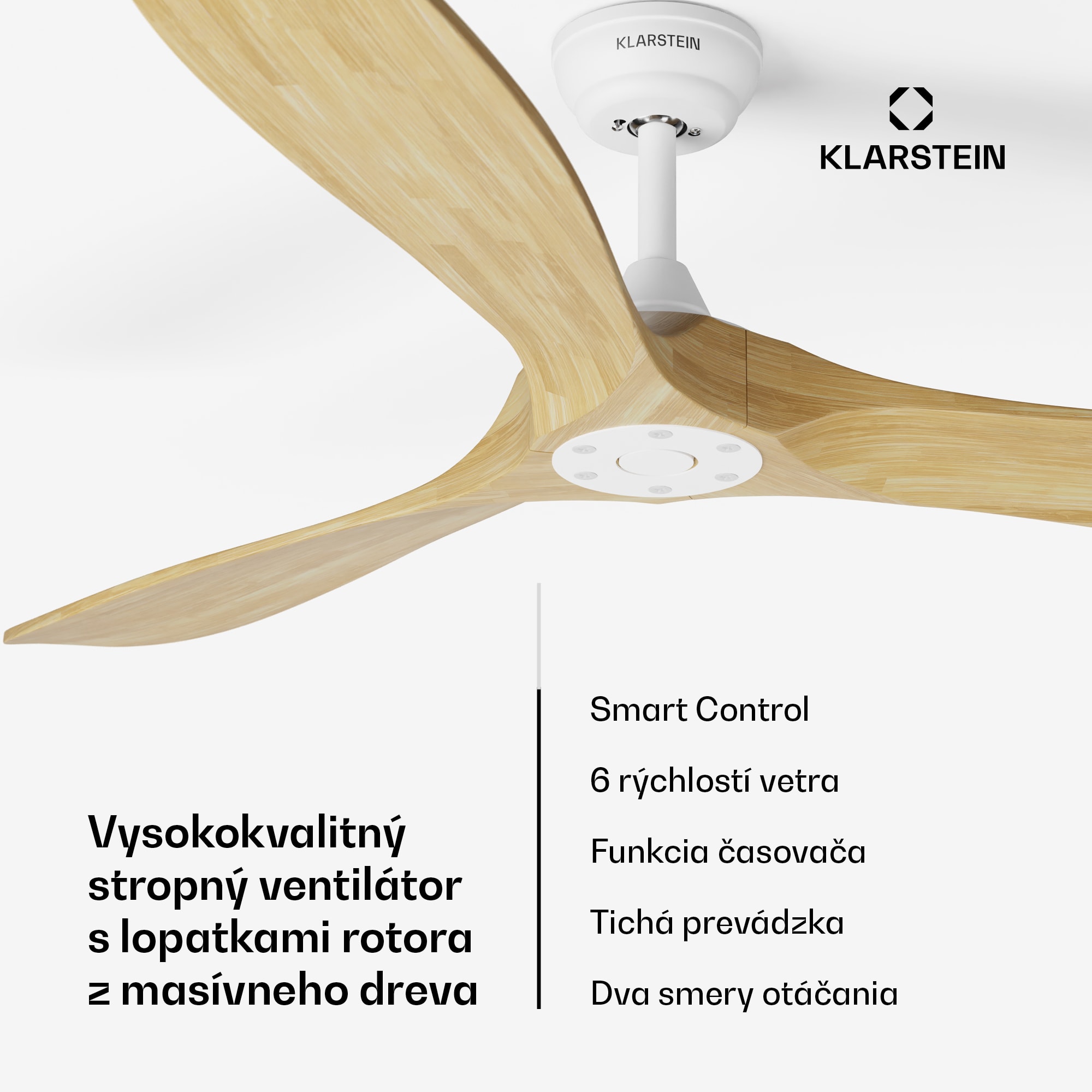 Klarstein Bahama Breeze Smart Stropný ventilátor , lopatky rotora z masívneho dreva, diaľkové ovládanie + ovládanie pomocou aplikácie –Kúpiť