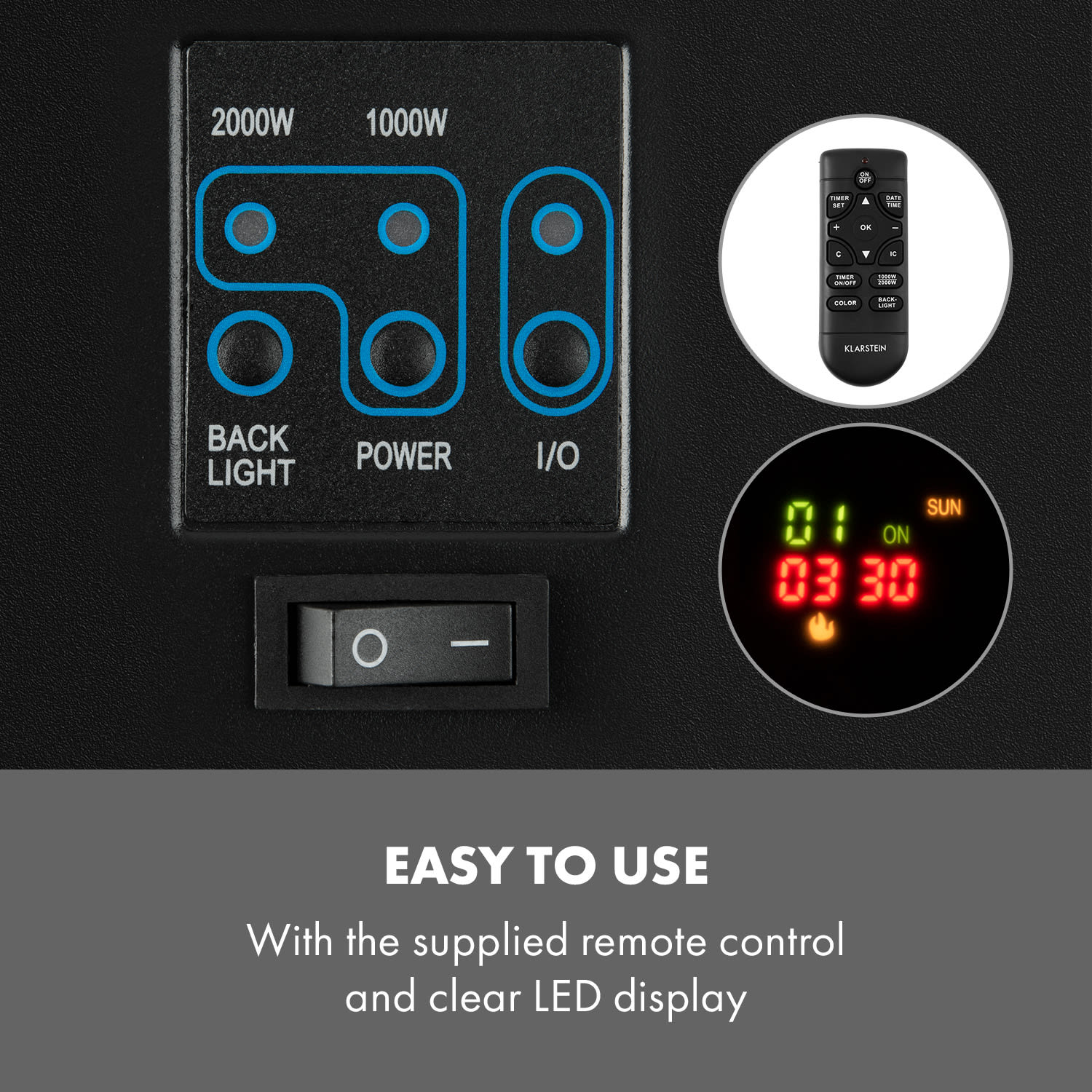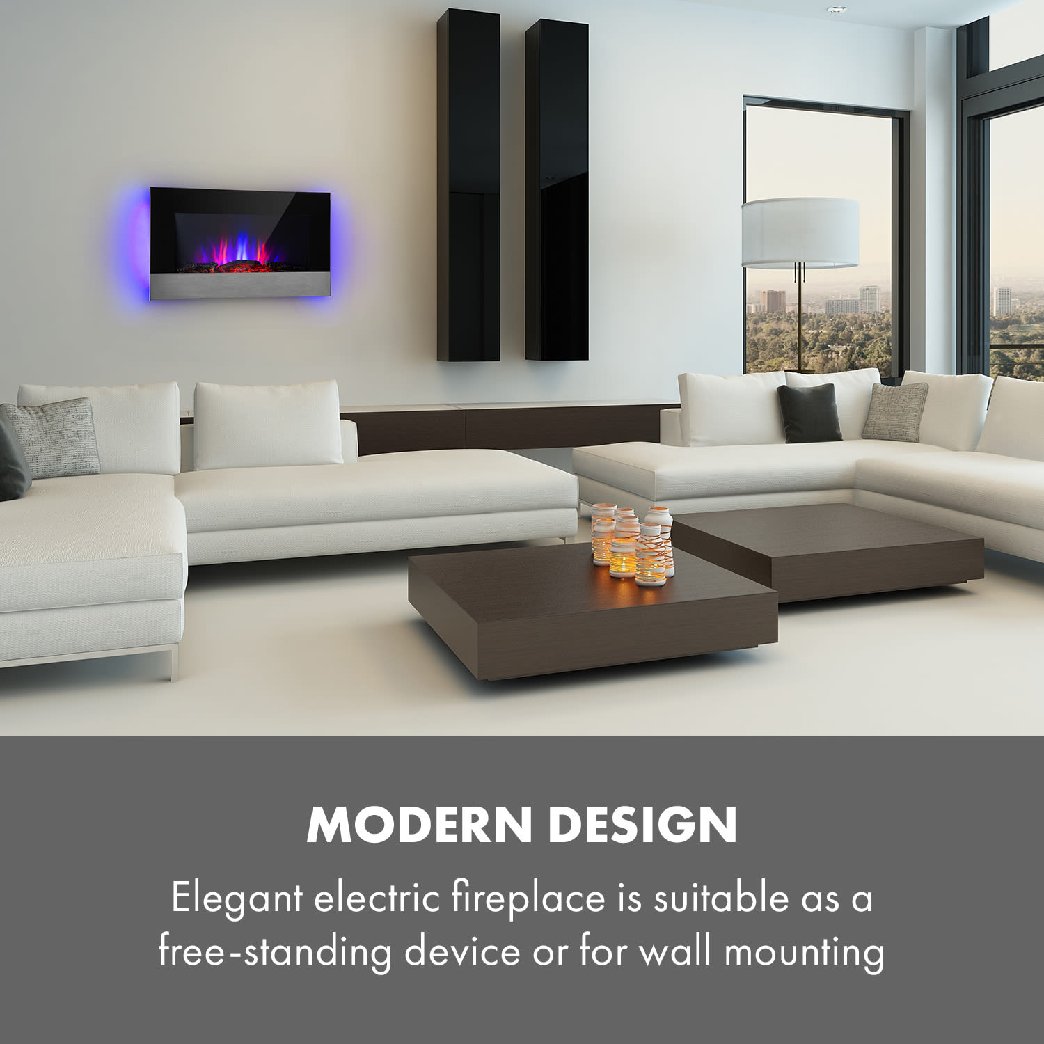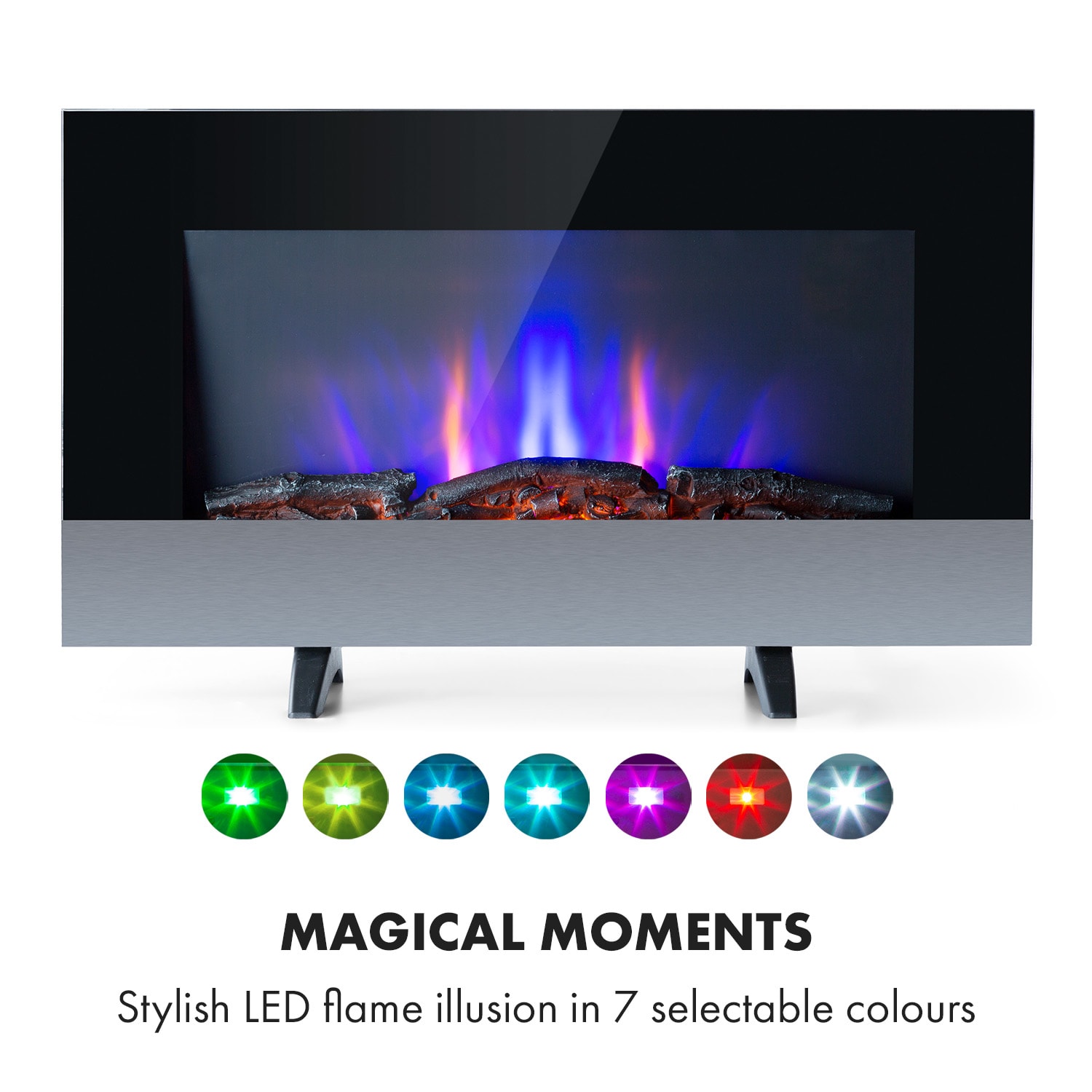 Atmosférický elektrický krb Basel Baseline od Klarsteinvám poskytne čistú atmosféru a teplo krbu – bez ohňa, sadzí a dymu. Sofistikovaný LED efekt plameňa bliká v 7 rôznych farbách nezávisle od funkcie ohrevu. Elektrický krb vytvorí vo vašej domácnosti čarovné chvíle so všetkou romantikou skutočného ohňa vďaka žiariacim animovaným polenám. Môžete tiež zapnúť LED podsvietenie pre ešte lepšiu atmosféru a všetko ovládať z pohodlia gauča pomocou diaľkového ovládania alebo si vopred naprogramovať všetky funkcie vďaka nastaviteľnému časovaču. Exkluzívny elektrický krb Klarstein Basel Baseline môžete štýlovo integrovať do svojho domova – na moderných nožičkách alebo pripevnený na stene. Štýlový, multifunkčný a príjemne hrejivý: Elektrický krb Klarstein Basel Baseline vytvorí atmosférickú náladu a stane sa moderným stredobodom pozornosti vo vašej domácnosti.