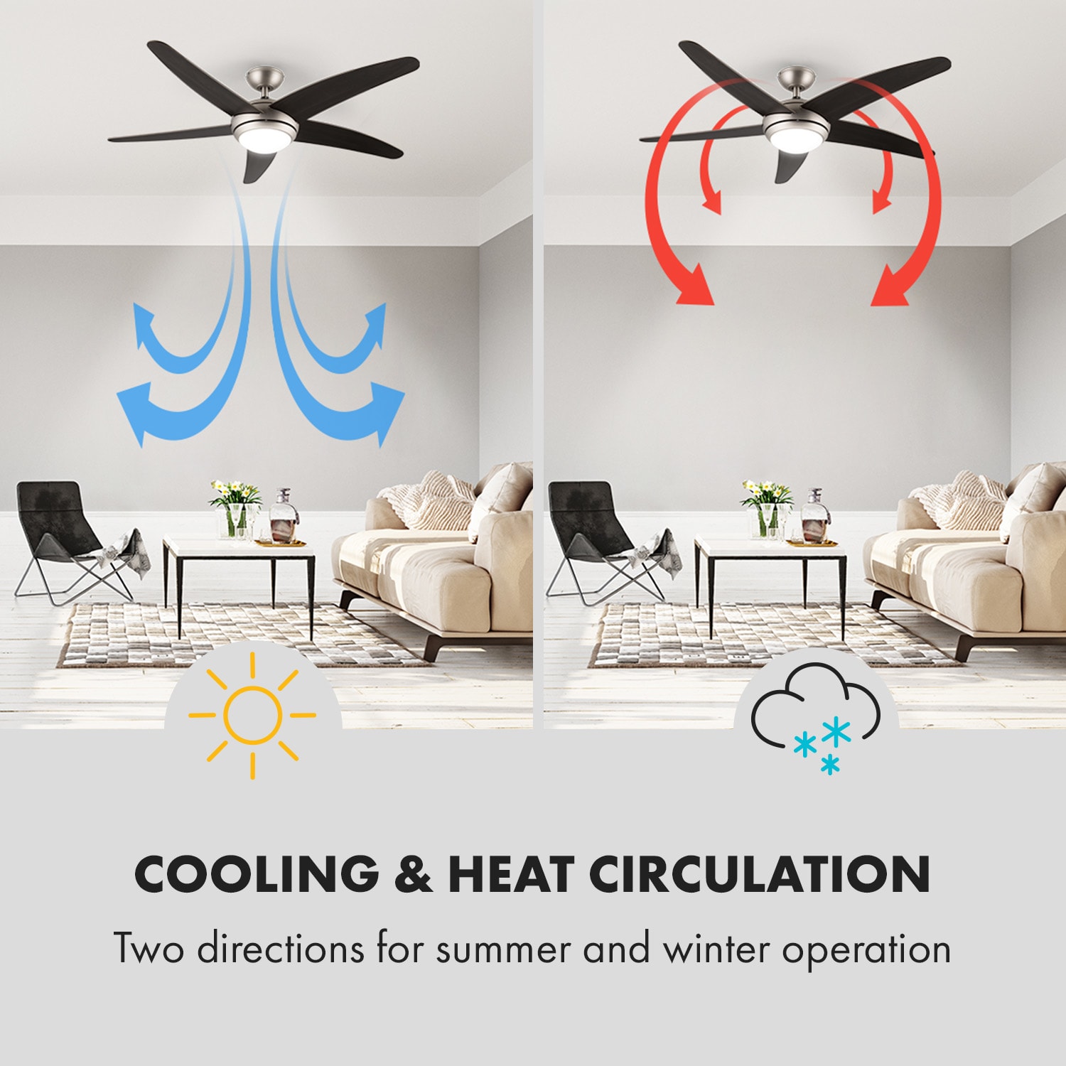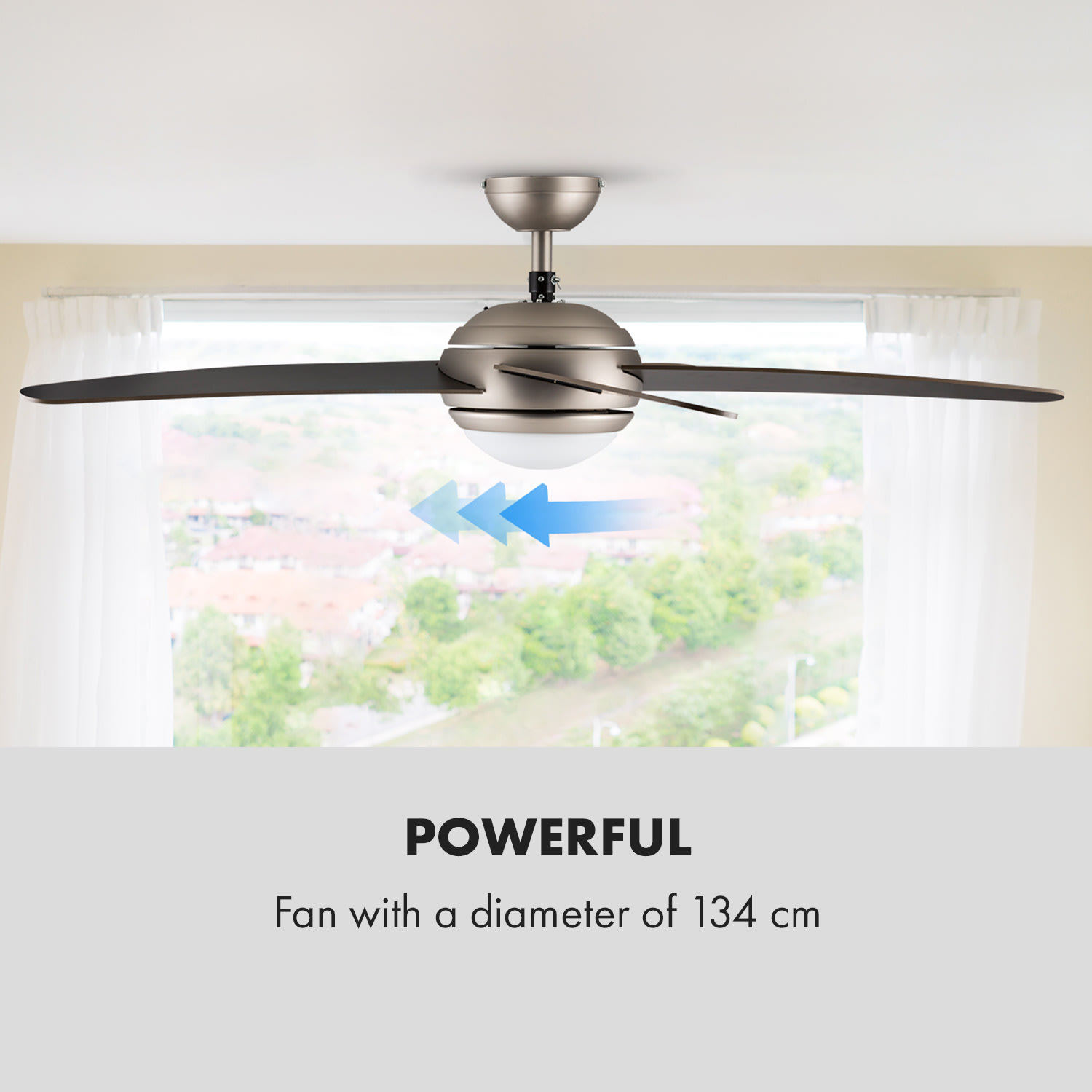 Stropný ventilátor Klarstein Bolero prinesie do každej miestnosti osviežujúci vzduch. Vďaka príkonu 55W sa tento ventilátor vyznačuje príjemne nízkou spotrebou aj pri dlhej prevádzke. Keďže väčšina izieb obsahuje prípojku len na jedno stropné zariadenie, tento ventilátor pre praktickosť obsahuje v sebe i svietidlo.V strede štýlového tela sa okrem motora nachádza i stropné svietidlo s tienidlom z mliečneho skla. Obe zariadenia (ventilátor a svetlo) sa ovládajú samostatne. Na ovládanie je k dispozícii diaľkový ovládač. Ako svietidlo môžete použiť žiarovku so závitom E14 s max. výkonom 60W, ktorá vystačí na osvetlenie celej miestnosti.Dva smery otáčania zabezpečujú prúdenie vzduchu buď k stropu alebo k zemi. Tým ventilátor vylepší klímu nielen počas teplých, ale aj studených dní: počas vykurovacích dní stúpa teplý vzduch nahor a pomocou ventilátoru môže cirkulovať po celej miestnosti. Nasmerovanie vzduchu nadol zase pomôže pri horúcich dňoch i nociach. Intenzitu cirkulácie vzduchu možno regulovať prostredníctvom troch rýchlostných stupňov.Ventilátor je príťažlivý aj opticky a vynikne v každej miestnosti: telo z brúseného hliníka a drevené ramená taktiež v hliníkovej optike podčiarkujú luxusný nádych a hodia sa do moderných i klasických štýlov zariadenia. Dostupné farby: orech, javor (číslo produktu: 10028291)Prosím, majte na vedomí, že elektroinštalácie má vykonávať len kvalifikovaný personál. Preto na inštaláciu zavolajte profesionálneho elektrikára.