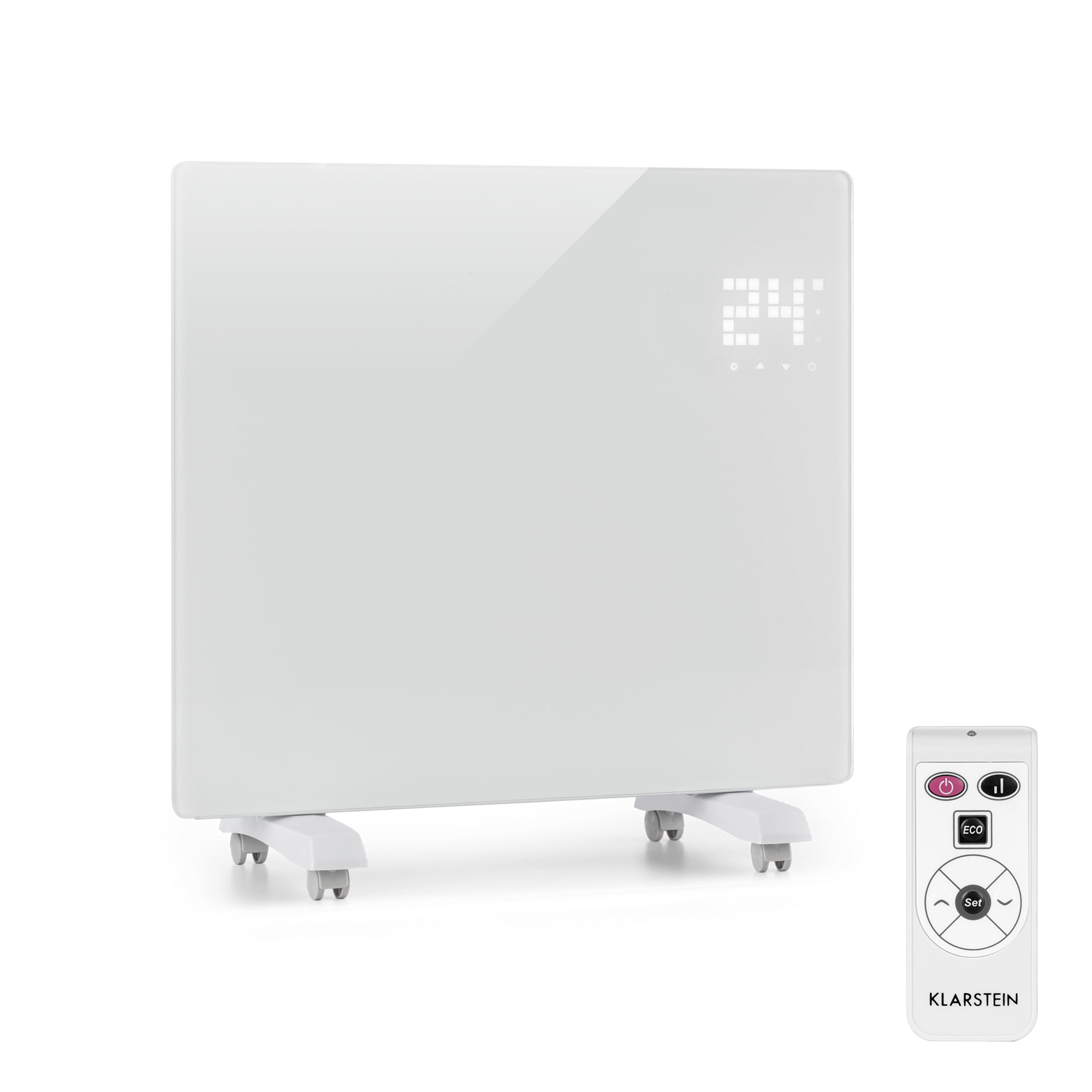 Čierna elegancia ktorá vytvára príjemné pocity a útulné teplo pre nositeľov papúč a pyžám. Konvekčný ohrievač Klarstein Bornholm zabezpečuje rovnomernú distribúciu a ohrev vzduchu v miestnostiach s výmerou do 10 m².1000W silný ohrievač Klarstein vyhreje miestnosti až do 35 °C prostredníctvom dvoch stupňov vyhrievania. Režim Eco znižuje spotrebu energie na minimum. Tým sa šetrí životné prostredie i peňaženka. V režime Časovača sa konvekčný ohrievač zapne a vypne podľa príslušného nastavenia.Či už skoro ráno pri čistení zubov alebo po kúpeli je telo obklopené teplom, pretože sklenený panel Klarstein Bornholms je odolný voči striekajúcej vode, a preto ho možno umiestniť aj do vlhkých priestorov.Jemným dotykom displeja ohrievač spoľahlivo splní želania záujemcov o teplo. Nemusíte opúšťať pohodlie vankúšov, pretože diaľkové ovládanie umožňuje jeho obsluhu bez narušenia vášho komfortu.Ohrievač Bornholm je tak atraktívny, že ho budete chcieť zavesiť na stenu. Vďaka dodanému montážnemu materiálu môžete. Pri použití ako stojaceho zariadenia je možné namontovať odnímateľné podlahové valčeky pre potrebnú flexibilitu.Ohrievač Klarstein Bornholm je určený pre každú miestnosť a zabezpečuje príjemnú teplotu v interiéri bez ohľadu na to, aká je vonku zima. Tento konvektor je ideálny pre všetky vaše potreby.Dostupné farby: biela (10031982), čierna (10031981)