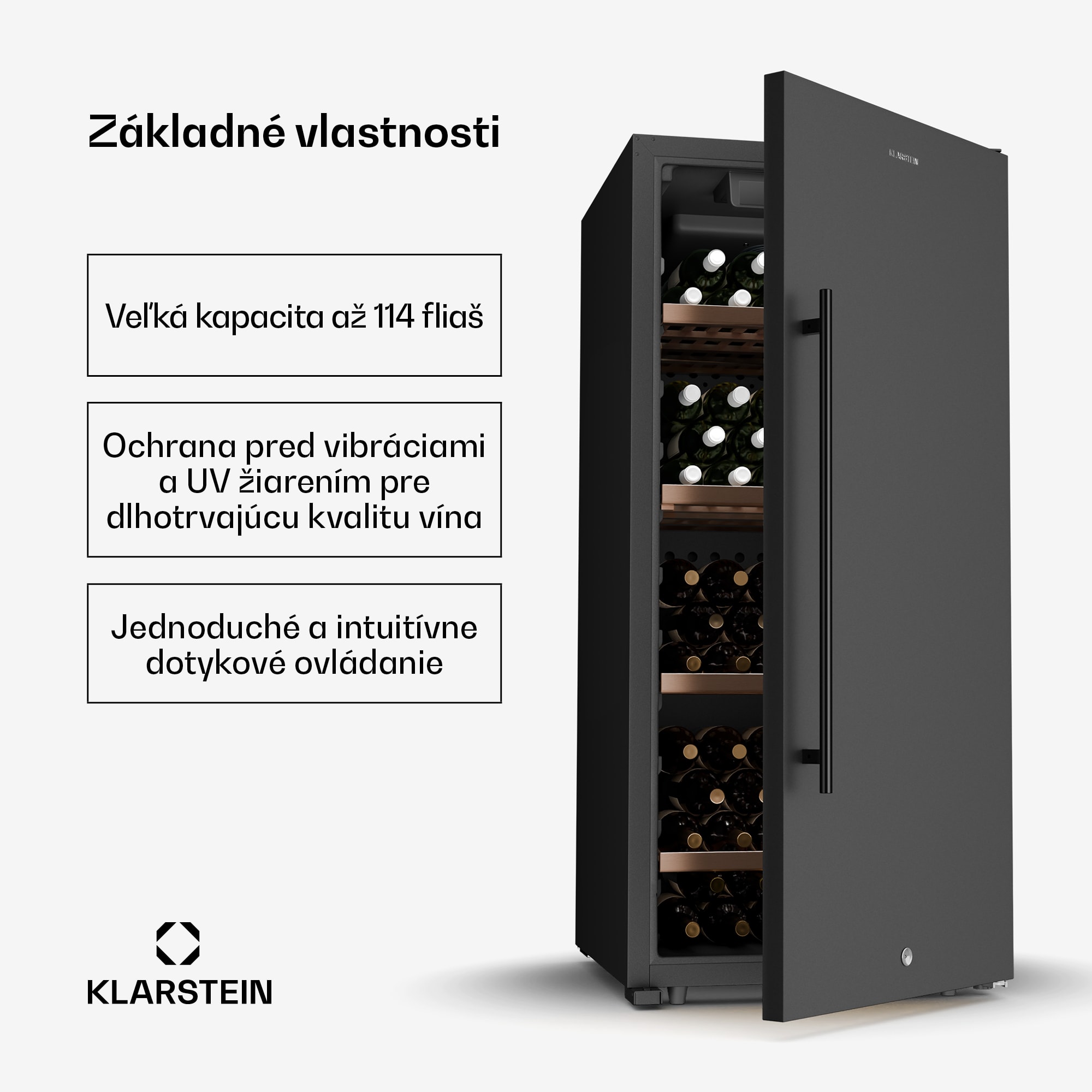 Vinotéka CellarMax od spoločnosti Klarstein ponúka priestor až pre 114 fliaš a vďaka inovatívnej technológii a pevnej konštrukcii zaručuje dokonalé skladovanie a zrenie vašich vín.
