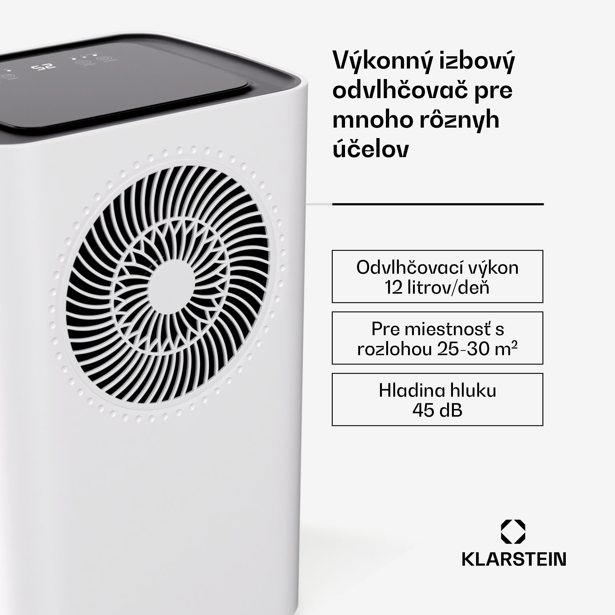 Odvlhčovač vzduchu Klarstein CircleDry Smart 12 L odstráni až 12 litrov vlhkosti za deň a je ideálny pre obytné a kancelárske priestory s rozlohou do 30m².Odvlhčovač vzduchu CircleDry Smart 12 L od spoločnosti Klarstein kombinuje vysokú účinnosť s modernou technológiou na optimálnu reguláciu klímy vo vašom interiéri. Vďaka výkonnému kompresoru spotrebič odstráni až 12 litrov vlhkosti za deň, čo je obzvlášť výhodné vo vykurovaných miestnostiach počas zimných mesiacov. Vďaka inteligentnému nastaveniu vlhkosti môžete zvoliť relatívnu vlhkosť v rozmedzí 30 % až 90 % alebo použiť komfortný režim. Odvlhčovač vzduchu možno pohodlne ovládať odkiaľkoľvek prostredníctvom aplikácie Klarstein. Okrem toho 24-hodinový časovač umožňuje flexibilné používanie a spotrebič sa ľahko prenáša vďaka ľahkej konštrukcii a zabudovanej rukoväti.Používajte odvlhčovač v miestnostiach do 30m² a pravidelne čistite filter pre optimálny výkon. Tieto odvlhčovače vzduchu do bytu sú ideálne pre každodenné použitie.Zažite ideálnu klímu v miestnosti s odvlhčovačom vzduchu Klarstein CircleDry Smart 12 L – kupujte teraz!