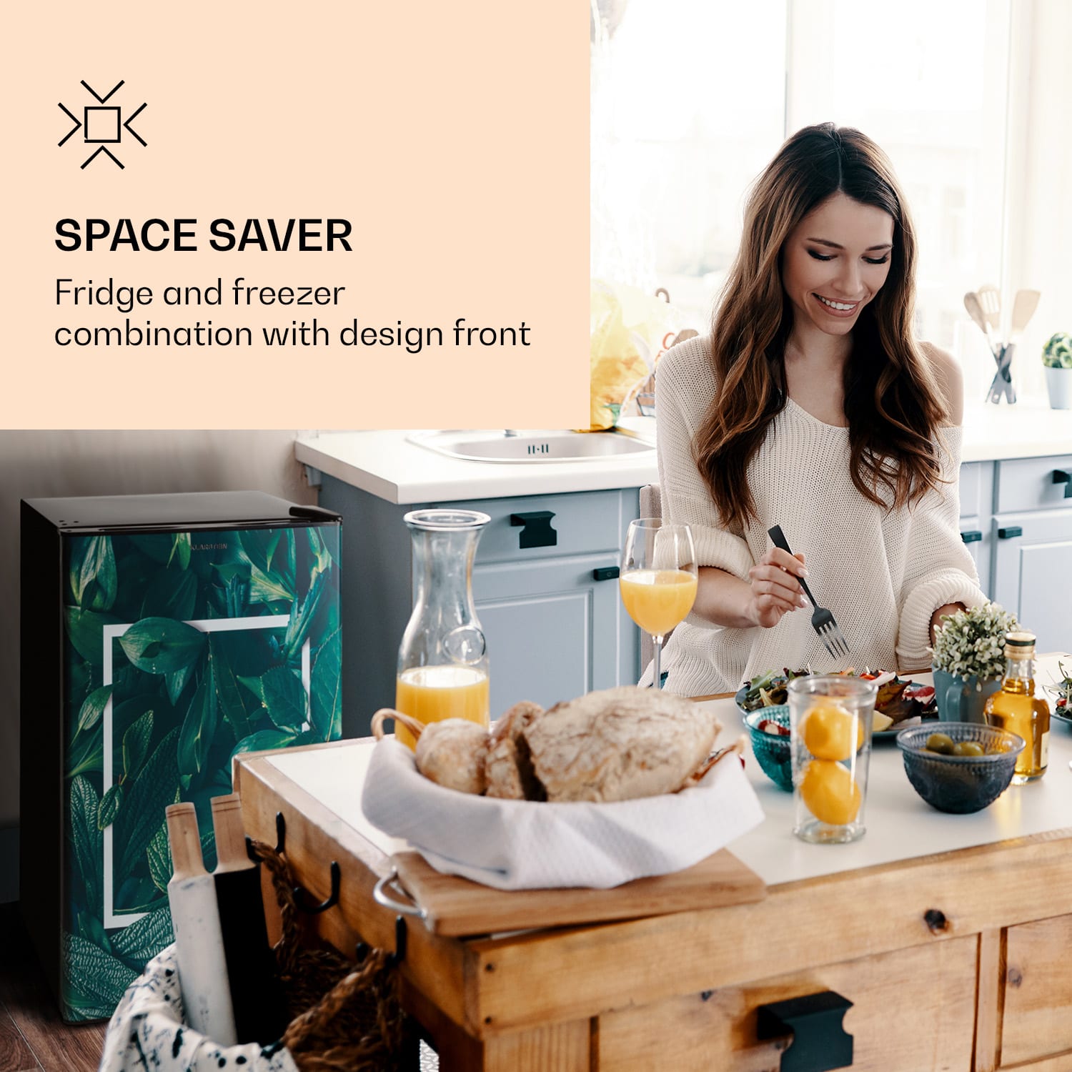 Klarstein CoolArt 79L, kombinovaná chladnička s mrazničkou, EEK E, mraziaci priestor 9 l, dizajnové dvere –Kúpiť