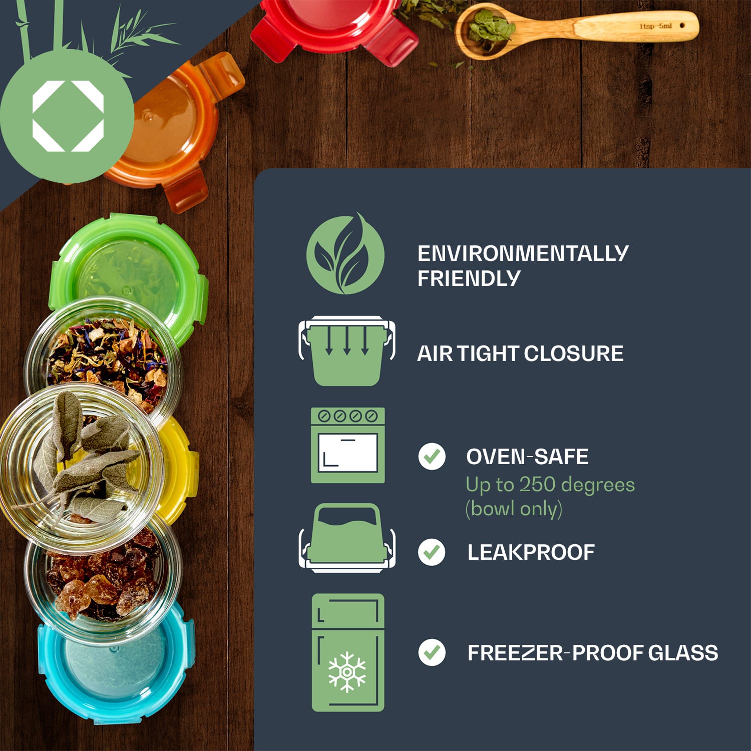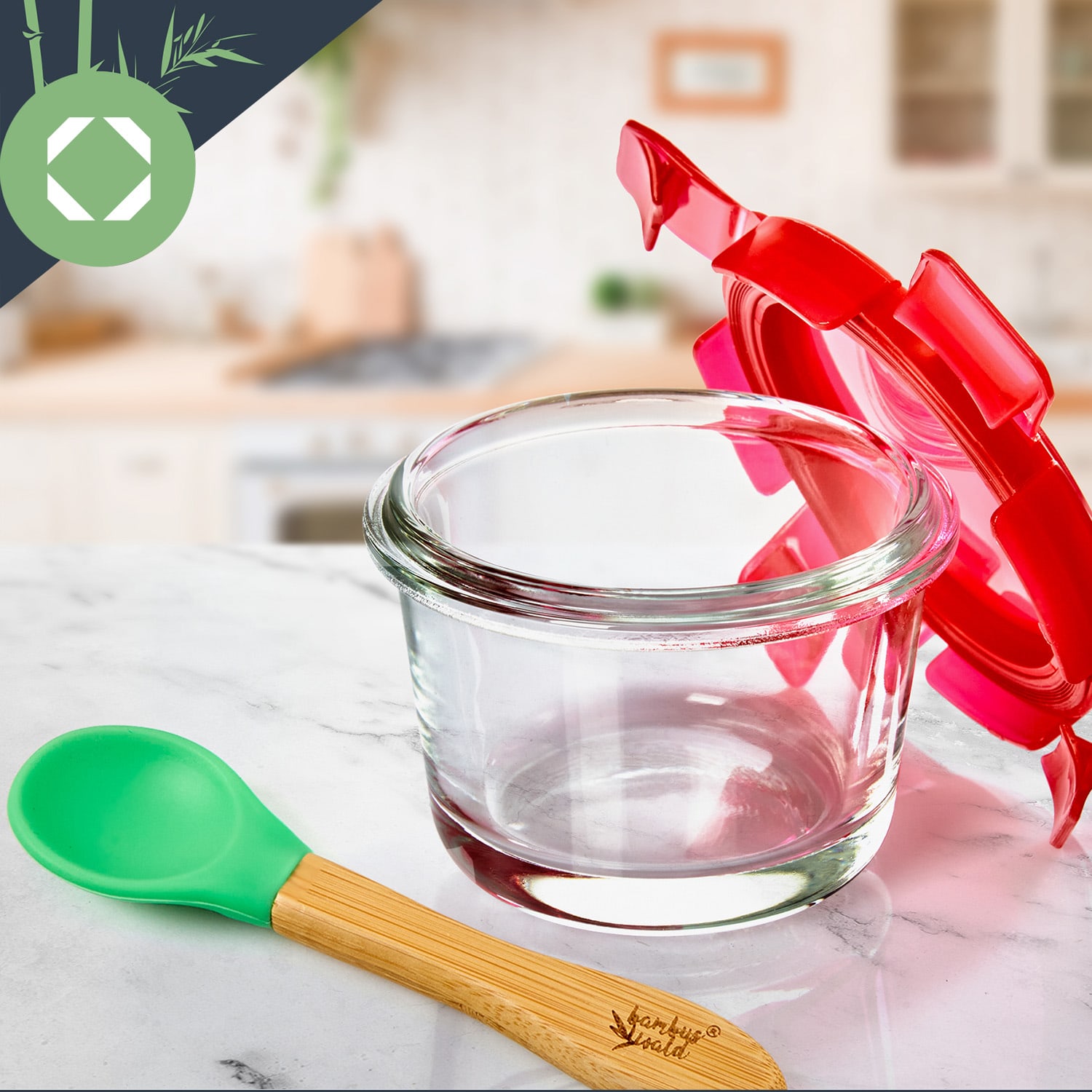 Či už na detskú stravu, čaje, koreniny alebo príslušenstvo na pečenie: so svojim malým objemom, každá 110 ml, sú nepriepustné detské poháre od Klarstein bambuswald optimálne na prípravu a skladovanie malých porcií. S ich pestrými krytmi vyzerajú v kuchyni ako malí trpaslíci, ktorí sa starajú o poriadok. Všetky maličkosti rýchlo zmiznú v ich vnútri a sú tam dobre uskladnené – sladkosti, polievky, čaj, koreniny alebo potreby na pečenie. Veselé maličkosti pre všedný deň v kuchyni: milé detské potraviny pestrými krytmi od Klarstein bambuswald.