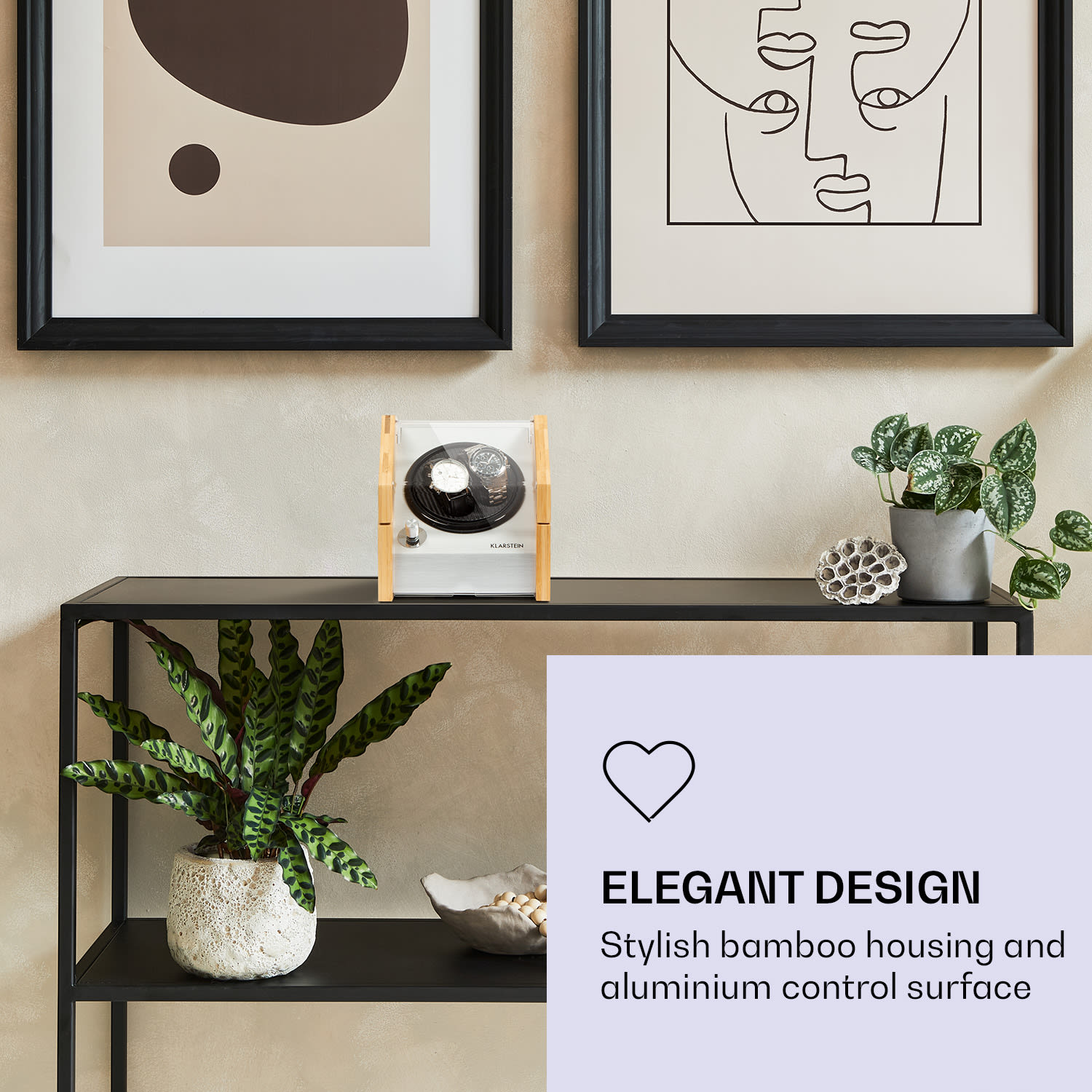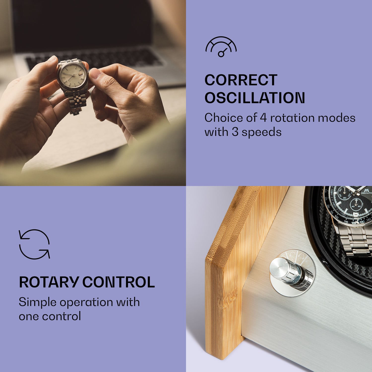 Tu sa všetko točí okolo dokonalej precíznej ručnej práce! Naťahovač hodiniek Klarstein Garonne rozhýbe vaše automatické hodinky, keď ich práve nemáte na ruke. Garonne presviedča predovšetkým svojim elegantným bambusovým telom, ktoré sa štýlovo hodí do každého priestoru a zároveň vaše hodinky štýlovo prezentuje. Tri rýchlosti otáčania a štyri možnosti rotácie sa postarajú presne o ten správny pohyb pre tvoje hodinky. Vďaka tichému motoru môžeš naťahovač Klarstein Garonne pokojne vystaviť aj v noci.