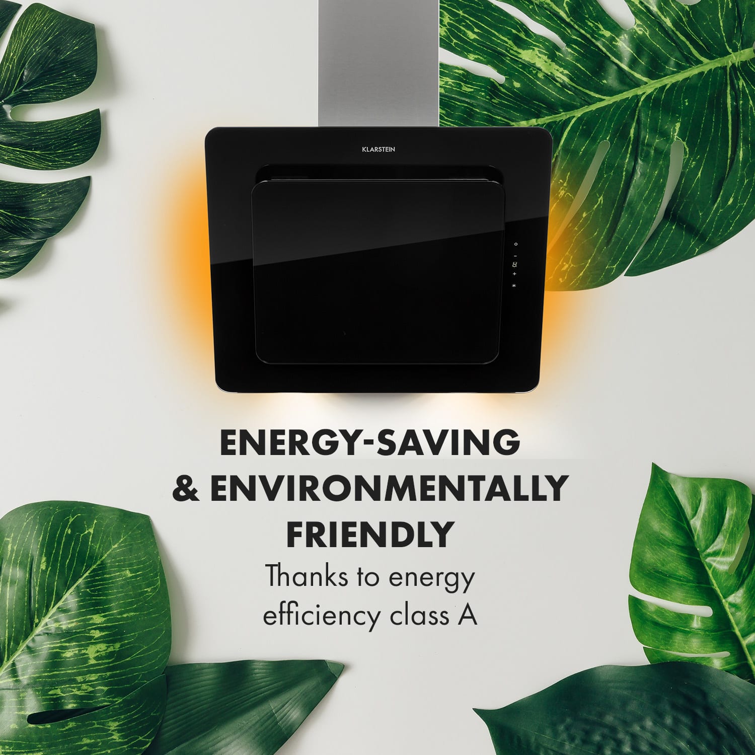 Digestor Klarstein Helena 60 presviedča triedou energetickej účinnosti A, zaručuje vysoké hodnoty prietoku vzduchu a vďaka farebnému ambientnému osvetleniu ozvláštni atmosféru v kuchyni. Vďaka trom stupňom výkonu možno výkon digestora Helena 60 ľahko prispôsobiť procesu varenia. Na najvyššej úrovni odsáva z kuchyne až 595 m³/h vzduchu a zvládne aj prípravu niekoľkých chodov. Vďaka najmodernejšej technológii zostáva hladina hluku a spotreba energie príjemne nízka, len 63 dB a trieda energetickej účinnosti A. Digestor Klarstein Helena 60 je mimoriadne atraktívny nielen vďaka svojmu elegantnému vzhľadu, ale aj vďaka voliteľnému ambientnému osvetleniu s deviatimi rôznymi farbami. Tento digestor s voľným priestorom na hlavu dodá každej kuchyni vlastnú špeciálnu atmosféru. Dve prepínateľné LED lampy nad varnou plochou umožňujú mať panvice a hrnce v dokonalom prehľade. Všetky ovládacie prvky sú integrované priamo do povrchu ako dotykový panel a displej. Všetok potrebný materiál pre montáž na stenu, výfuková hadica a vhodný kryt komína sú súčasťou dodávky. Pomocou dvoch filtrov s aktívnym uhlím možno digestor jednoducho prestavať na recirkulačný režim. Energeticky úsporný, ekologický, výkonný s jasným svetlom: Najdôležitejšie vlastnosti digestora Klarstein Helena 60 už na prvý pohľad.