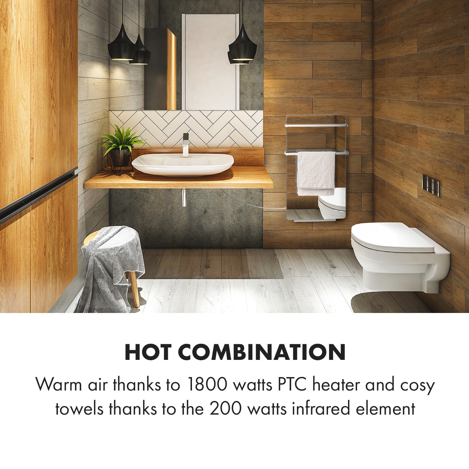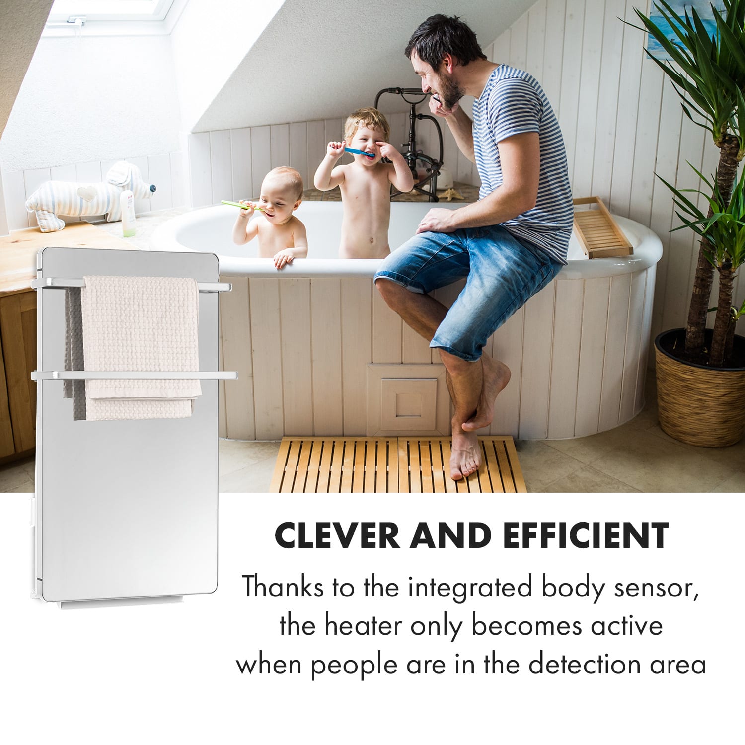 S príjemným hrejivým pocitom na relaxáciu v kúpeľni. Vykurovací panel Klarstein Hot Spot Crystal Flow prináša príjemné teplo do každej miestnosti vysoko efektívnym a priestorovo úsporným spôsobom. Klarstein Hot Spot Crystal Flow nástenný radiátor predstavuje revolúciu vo vykurovaní vďaka modernej kombinácii PTC a infračervenej technológie. Kým PTC ohrievač s dvoma úrovňami výkonu 1100 alebo 1800 W ohrieva vzduch v kúpeľni, 200-wattové infračervené vykurovacie teleso zabezpečuje príjemné predhriatie uterákov a príjemný pocit tepla na pokožke. Veľkou výhodou PTC ohrievačov je ich samoregulácia: vykurovanie je energeticky úsporné a ekologické. Po dosiahnutí požadovanej teploty sa automaticky vypne, a tak spotrebuje len to, čo je skutočne potrebné. Sálavé vykurovacie teleso Klarstein Hot Spot Crystal Flow žiari nielen z hľadiska technológie, ale vie zapôsobiť aj svojím štýlovým dizajnom.